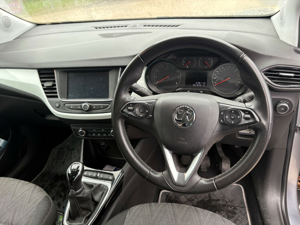 This 2020 Vauxhall Crossland X 1.2 Griffin SUV with 52000 miles on the clock is a fantastic choice for anyone in search of a reliable and stylish SUV. This petrol-powered vehicle, equipped with a manual transmission and Euro 6 compliant engine, is perfect for urban and long-distance driving alike. With 5 seats and 5 doors, it's spacious and practical for everyday use. The MOT is valid until 03/09/2026, and the car is ULEZ compliant, making it ideal for city driving. The exterior boasts 17-inch alloy wheels and alloy effect protective skid plates, while the interior features a 12V electrical accessory socket and R4.0 IntelliLink touch-screen infotainment system with 6 speakers. Don't miss out on this excellent all-rounder that's ready for whatever life throws at it. v electrical accessory socket, r4.0 intellilink touch-screen infotainment system, six speakers - four front-two rear, 17in alloy wheels - diamond-cut titan multi-spoke, alloy effect protective front and rear skid plates, body coloured door handles, chrome effect front grille bar, chrome effect side window trim, dark tinted rear windows, diamond black roof and door mirrors, electrically operated front and rear windows with safety autoreverse and one-touch facility, heated rear screen with timed cut-off, heated rear window, locking wheel nuts, manually foldable door mirrors, rear spoiler, reversing lights, side protection mouldings, solar heat absorbing windscreen, tinted windows, twin electrically adjustable - heated door mirrors - wide-angle on drivers side with automatic timed cut-off, abs - anti-lock braking system, airbags - front seat side-impact, csc - corner stability control, child proof locks on rear doors, collapsible windscreen wiper system, deactivation switch for front passengers front and side impact airbags, deformation zones front and rear, drivers and front passengers airbags with active-vent technology, dual seatbelt pretensioners on front seats, ebd - electronic brakeforce distribution, electronically protected audio equipment, energy absorbing steering column, engine deadlock immobiliser, engine drag torque control, full size curtain airbags for driver - front passenger and outer rear seat passengers, hazard warning lights, hill start assist, hydraulic brake assist, hydraulic brake boost, isofix child seat mountings incorporating top tether anchor points located on outer rear seats, inertia-reel lap and diagonal seatbelts, intermittent rear window wipers with washer, load limiters on front and outer rear seatbelt retractors, pretensioners on outer rear seatbelt retractors, rear fog lights, reinforced passenger safety cell, remote control central door locking, side impact protection beams, smart seatbelt reminder for front and rear seats, switchable electronic stability programme - esp, traction control, upper and lower bumper design, vin - visible vehicle identification number, air conditioning, anti-submarining ramps in front seats, black door panels with black atlantis cloth inserts, chrome effect interior door handles, comfort front seats, four adjustable facia vents, front door pockets with 1.5-litre bottle holder, front and rear floor mats - front griffin branded, front and rear passengers assist handles, fully carpeted luggage area, glovebox with lid, height-adjustable front seat head restraints, height-adjustable head restraints on outer rear seats, illuminated luggage area, infotainment surround - black, interior courtesy light operated by door switches, luggage area cover, luggage compartment foldable cover, open storage compartment in centre console, rake and reach adjustable steering, rear courtesy light with reading lights, rear door pockets with 0.5-litre bottle holder, seats - rear split folding 60-40, side window demist vents, steering wheel - three-spoke design - leather covered - satin chrome-effect bezel, steering wheel mounted audio controls, three person layout, two drinks holders in front centre console, two speed windscreen wipers with variable intermittent wipe, white facia and door panel inserts, windscreen demist vents, automatic lighting control, door-to-door illumination, high-level led centre rear brake light, led daytime running lights, led headlamps, lights on audible warning, manual headlight beam levelling, welcome lighting, central facia display, cruise control with speed limiter and intelligent speed adaptation, deflation detection system, driver information display, front camera system, fuel gauge with low fuel warning light, multi-function trip computer, rev counter, shift up indication light, speed sensitive power assisted steering, speedometer, water temperature gauge with warning light