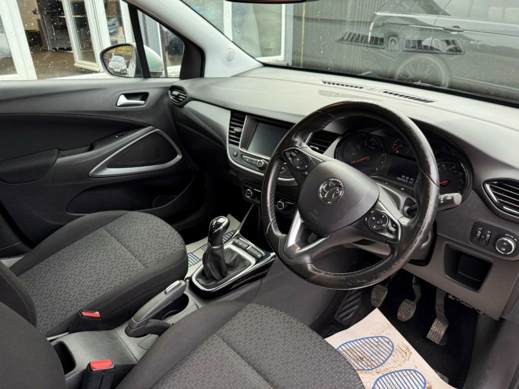 This 2018 Vauxhall Crossland X SE is a well equipped and economical choice for any driver. It features a 1.2 litre petrol engine and meets Euro 6 emissions standards. Inside, you'll find the R4.0 IntelliLink touch screen infotainment system with Bluetooth connectivity, and electronic climate control with air conditioning. The SE trim also benefits from the Sight and Light Pack, which includes automatic headlights, and a front camera system that aids with parking.This Vauxhall Crossland X SE offers several advantages over similar vehicles. Its impressive fuel economy of 55 mpg means fewer trips to the petrol station. Furthermore, its low insurance group rating and low CO2 emissions contribute to lower running costs, making it a sensible and cost effective option.. 12-Volt Accessory Socket, 16in Alloy Wheels - Silver-Effect Four Twin-Spoke, ABS - Anti-Lock Braking System, Airbags - Front Seat Side-Impact, Anti-Submarining Ramps in Front Seats, Automatic Lighting Control, Automatically Dimming Anti-Dazzle Rear-View Mirror, Black Door Panels with Black Atlantis Cloth Inserts, Body Colour Roof and Door Mirrors, Body Coloured Door Handles, CSC - Corner Stability Control, Central Facia Display, Child Proof Locks on Rear Doors, Chrome Effect Front Grille Bar, Chrome Effect Interior Door Handles, Collapsible Windscreen Wiper System, Comfort Front Seats, Cruise Control with Speed Limiter and Intelligent Speed Adaptation, Deactivation Switch For Front Passengers Front and Side Impact Airbags, Deflation Detection System, Deformation Zones Front and Rear, Door-to-Door Illumination, Drag Torque Control, Driver Information Display, Drivers and Front Passengers Airbags with Active-Vent Technology, Drivers and Front Passengers Illuminated Vanity Mirrors with Flip-Up Cover, Dual Seatbelt Pretensioners on Front Seats, EBD - Electronic Brakeforce Distribution, Electrically Operated Front and Rear Windows with Safety Autoreverse and One-Touch Facility, Electronic Climate Control including Air Conditioning, Electronically Protected Audio Equipment, Energy Absorbing Steering Column, Engine Deadlock Immobiliser, Four Adjustable Facia Vents, Front Camera System, Front Door Pockets with 1.5-Litre Bottle Holder, Front Fog Lights, Front and Rear Passengers Assist Handles, Fuel Gauge with Low Fuel Warning Light, Full Size Curtain Airbags for Driver - Front Passenger and Outer Rear Seat Passengers, Fully Carpeted Luggage Area, Gearshift Indication Light, Glovebox with Lid, Halogen Headlights, Hazard Warning Lights, Heated Rear Screen with Timed Cut-Off, Height-Adjustable Front Seat Head Restraints, Height-Adjustable Head Restraints on Outer Rear Seats, High-Level LED Centre Rear Brake Light, Hill Start Assist, Hydraulic Brake Assist, Hydraulic Brake Boost, ISOFIX Child Seat Mountings Incorporating Top Tether Anchor Points Located on Outer Rear Seats, Illuminated Luggage Area, Inertia-Reel Lap and Diagonal Seatbelts, Infotainment Surround - Piano Black, Interior Courtesy Light Operated By Door Switches, Intermittent Rear Window Wipers with Washer, LED Daytime Running Lights, Light Gravel Facia and Door Panel Inserts, Lights On Audible Warning, Load Limiters on Front and Outer Rear Seatbelt Retractors, Locking Wheel Nuts, Luggage Compartment Foldable Cover, Manual Headlight Beam Levelling, Manually Foldable Door Mirrors, Monochrome Display, Multi-Function Trip Computer, One Folding Key-One Static Key Each with Integral Remote Control Function, Open Storage Compartment in Centre Console, Pretensioners on Outer Rear Seatbelt Retractors, R4.0 IntelliLink Touch-Screen Infotainment System, Rain Sensitive Windscreen Wipers, Rake and Reach Adjustable Steering, Rear Door Pockets with 0.5-Litre Bottle Holder, Rear Fog Lights, Rear Spoiler, Reinforced Passenger Safety Cell, Remote Control Central Door Locking, Rev Counter, Reversing Lights, Seats - Rear Split Folding 60-40, Side Impact Protection Beams, Side Protection Mouldings, Side Window Demist Vents, Sight and Light Pack, Six Speakers - Four Front-Two Rear, Smart Seatbelt Reminder for Front and Rear Seats, Solar Heat Absorbing Windscreen, Speed Sensitive Power Assisted Steering, Speedometer, Steering Column Mounted Audio Controls, Steering Wheel - Three-Spoke Design - Leather Covered - Satin Chrome-Effect Bezel, Switchable Electronic Stability Programme - ESP, Three Person Layout, Tinted Windows, Traction Control, Twin Electrically Adjustable - Heated Door Mirrors - Wide-Angle on Drivers Side with Automatic Timed Cut-Off, Two Drinks Holders in Front Centre Console, Two Speed Windscreen Wipers with Variable Intermittent Wipe, Upper and Lower Bumper Design, VIN - Visible Vehicle Identification Number, Vauxhall OnStar, Water Temperature Gauge with Warning Light, Welcome Ligh.