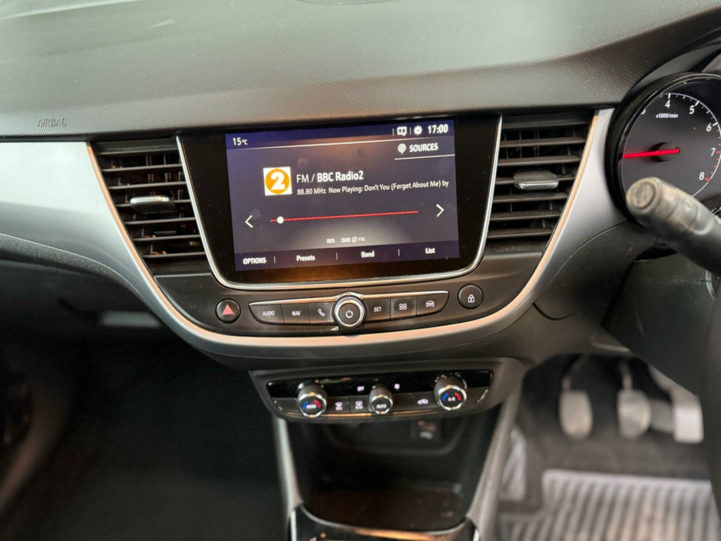 HPI CLEAR FULL SERVICE HISTORY ENGINE AND GEARBOX WARRANTY AVB 1 YEAR AA BREAKDOWN COVER FINANCE AVAILABLE NATIONWIDE DELIVERY AVAILABLE SMOKE FREE PET FREE - LONG MOT - INSPECTION REPORT IMMACULATE CONDITION This 2017 Vauxhall Crossland X SE Nav is a clear vehicle history example, offering peace of mind for its next owner. This stylish SUV is equipped with a 1.2 litre petrol engine and meets Euro 6 emissions standards. Inside, you'll find Electronic Climate Control with air conditioning for your comfort, and Automatic Lighting Control that includes automatic headlights. Parking is made easier , all managed through the Navi 5.0 Intellilink touchscreen navigation and infotainment system, which also features Bluetooth connectivity.The Vauxhall Crossland X SE Nav stands out with its impressive fuel economy, achieving up to 55 miles per gallon, which indicates it is more economical than many similar vehicles. Furthermore, its low insurance group rating suggests that running costs will be more affordable compared to other cars in its class. The vehicle also boasts low CO2 emissions, highlighting its environmental efficiency and potentially lower tax obligations. I ated windscreen, 12-volt accessory socket, 12-volt power outlet behind front seats, 16in alloy wheels - silver-effect four twin-spoke, 3.5in colour information display, 60-40 split-folding rear seat back, abs - anti-lock braking system, airbags - front seat side-impact, anti-submarining ramps in front seats, automatic lighting control, automatically dimming anti-dazzle rear-view mirror, black door panels with black atlantis cloth inserts, body colour roof and door mirrors, body coloured door handles, cbc - cornering brake control, central facia display, child proof locks on rear doors, chrome effect front grille bar, chrome effect interior door handles, collapsible windscreen wiper system, covered storage compartment in centre console, cruise control with speed limiter and intelligent speed adaptation, deactivation switch for front passengers front and side impact airbags, deadlocking, deflation detection system, deformation zones front and rear, door-to-door illumination, drag torque control, driver information display, drivers centre armrest, drivers internal central locking switch, drivers seat - eight-way adjustable, drivers and front passengers airbags with active-vent technology, drivers and front passengers illuminated vanity mirrors with flip-up cover, dual seatbelt pretensioners on front seats, ebd - electronic brakeforce distribution, electrically operated front and rear windows with safety autoreverse and one-touch facility, electronic climate control including air conditioning, electronically protected audio equipment, energy absorbing steering column, engine deadlock immobiliser, four adjustable facia vents, front camera system, front door pockets with 1.5-litre bottle holder, front fog lights, front passengers seat - six-way adjustable, front and rear passengers assist handles, fuel gauge with low fuel warning light, full size curtain airbags for driver - front passenger and outer rear seat passengers, fully carpeted luggage area, gearshift indication light, glovebox with lid, halogen headlights, hazard warning lights, heated rear screen with timed cut-off, heated rear window, height-adjustable front seat head restraints, height-adjustable head restraints on outer rear seats, height-adjustable and removable outer rear seat head restraints, high-level led centre rear brake light, hill start assist, hydraulic brake assist, hydraulic brake boost, isofix child seat mountings incorporating top tether anchor points located on outer rear seats, illuminated luggage area, inertia-reel lap and diagonal seatbelts, infotainment surround - piano black, interior courtesy light operated by door switches, intermittent rear window wipers with washer, led daytime running lights, light gravel facia and door panel inserts, lights on audible warning, load limiters on front and outer rear seatbelt retractors, locking wheel nuts, luggage area cover, luggage compartment foldable cover, manual headlight beam levelling, manually foldable door mirrors, mineral black door mirror housings, multi-function trip computer, navi 5.0 intellilink touchscreen navigation and infotainment system, one folding key-one static key each with integral remote control function, pretensioners on outer rear seatbelt retractors, rain sensitive windscreen wipers, rake and reach adjustable steering, rear door pockets with 0.5-litre bottle holder, reinforced passenger safety cell, rear fog lights, rear spoiler, side protection mouldings, reversing lights, remote central locking - operates on doors - tailgate and fuel filler flap, side impact protection beams, rev counter, side window demist vents, sight and light pack, six speakers, smart seatbelt reminder for front and rear seats, solar heat absorbing windscreen, speed sensitive power assisted steering, speedometer, steering column mounted audio controls, steering wheel - three-spoke design - leather covered - satin chrome-effect bezel, switchable electronic stability programme - esp, three person layout, tinted windows, traction control, twin electrically adjustable - heated door mirrors - wide-angle on drivers side with automatic timed cut-off, two drinks holders in front centre console, two speed windscreen wipers with variable intermittent wipe, upper and lower bumper design, vin - visible vehicle identification number, vauxhall onstar, water temperature gauge with warning light, welcome lighting, windscreen demist vents