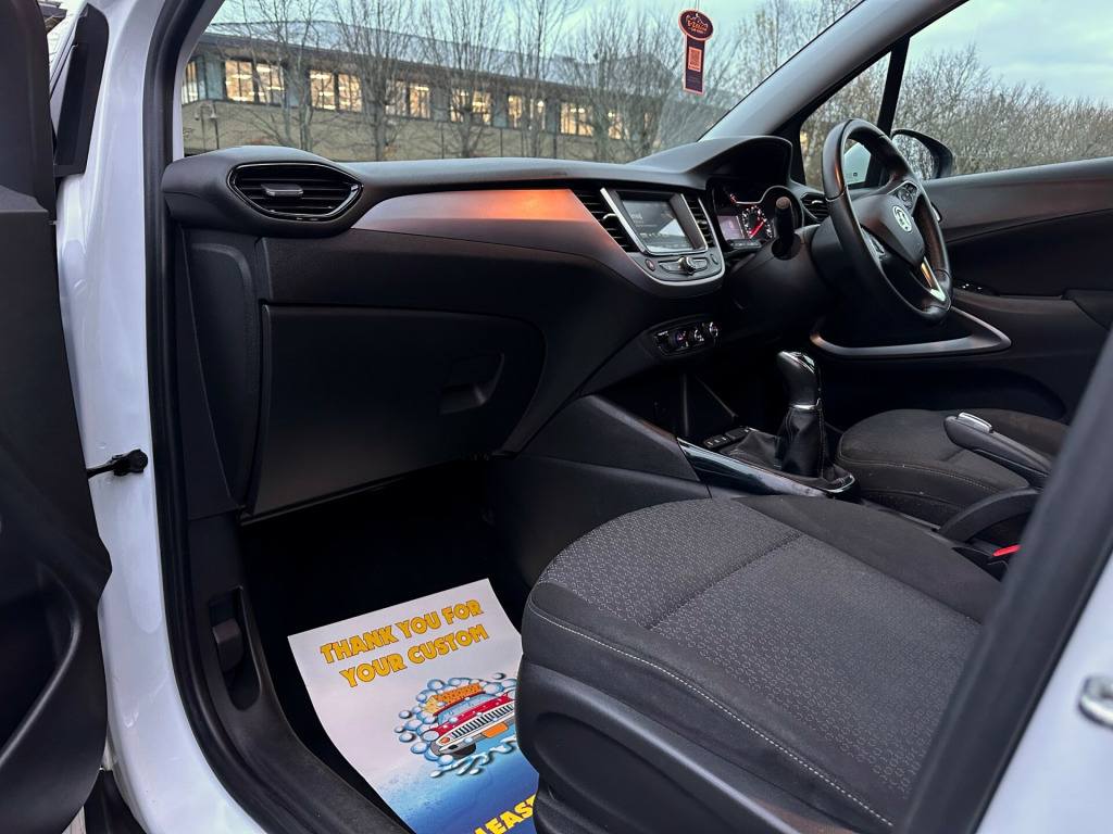 This 2018 Vauxhall Crossland X 1.2 SE SUV with 65600 miles on the clock is powered by a Petrol engine, with a Manual transmission that is Euro 6 compliant, producing 81 ps. It has 5 doors, 5 seats, and is ULEZ compliant, making it an excellent choice for driving in the city. The MOT is valid until 19/01/2026, giving you peace of mind. This SUV comes equipped with features such as Air Conditioning, Climate Control, Bluetooth connection, Adaptive cruise control, and Adaptive steering, offering a comfortable and enjoyable driving experience. With its spacious interior and practical design, this Vauxhall Crossland X is the perfect vehicle for both city commutes and weekend adventures., r conditioning, bluetooth connection, climate control, adaptive cruise control, adaptive steering, cruise control, head up display, multi-function steering wheel, power steering, traction control, abs, air bag, brake assist, child locks, multiple airbags, passenger airbag, side air bags, tyre pressure monitor, alarm, immobiliser, locking wheel nuts, electric front windows, electric windows, radio, steering wheel audio controls, front armrest, height adjustable drivers seat, retractable headrests, folding rear seats, rear headrests, 3 zone climate control, alloy wheels, body coloured bumpers, colour coded body, front fog lights, tyre repair kit