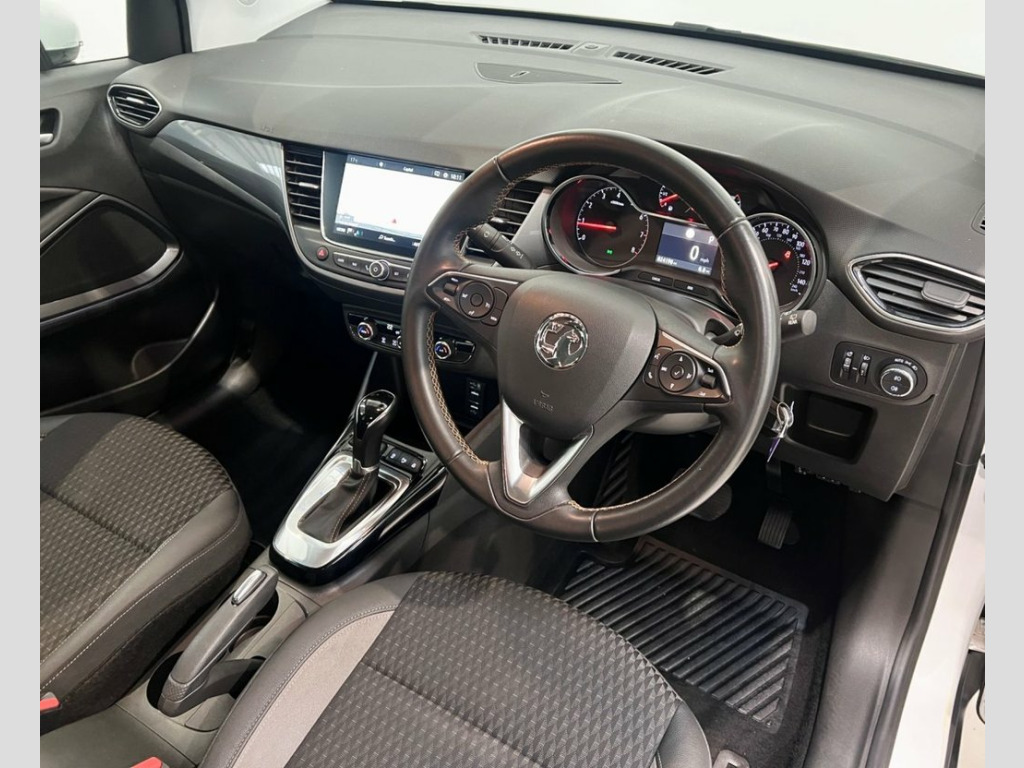 The 2020 (70) Vauxhall Crossland X 1.2 Turbo Elite Nav Auto is a stylish and well-equipped compact SUV that combines practicality with premium comfort and advanced technology. Finished in sleek White Jade paintwork, this example presents a fresh, modern appearance that highlights the Crossland X's clean lines, elevated stance, and distinctive Vauxhall design. Under the bonnet sits Vauxhall's efficient 1.2-litre Turbo petrol engine paired with a smooth automatic transmission, producing 128bhp and 230Nm of torque. This refined powertrain offers a strong balance of performance and economy, delivering a 0–62mph time of around 9.9 seconds and a top speed of 122mph. Despite its lively character, it remains economical to run, returning up to 45.6mpg (WLTP combined) and emitting from just 142g/km of CO? — making it ideal for both urban and motorway driving alike. The Elite Nav trim level brings an impressive level of specification, blending style and substance throughout. Inside, the cabin feels both premium and functional, with part-leather effect and cloth upholstery, a leather multifunction steering wheel, and ambient interior lighting. The centrepiece of the dashboard is the 7-inch colour touchscreen infotainment system featuring satellite navigation, DAB digital radio, Apple CarPlay, Android Auto, Bluetooth connectivity, and USB inputs, ensuring seamless access to media, maps, and communication on the go. Comfort and convenience are key strengths of the 12V Electrical Accessory Socket, 17in Alloy Wheels - Diamond-Cut Technica, ABS - Anti-Lock Braking System, Airbags - Front Seat Side-Impact, Alloy Effect Protective Front and Rear S, Ambient Facia - Centre Console Downlight, Ambient LED Lighting in Front Doors - Fa, Anti-Submarining Ramps in Front Seats, Automatic Lighting Control, Black Door Panels with Medium Grey Premi, Body Colour Roof and Door Mirrors, Body Coloured Door Handles, CSC - Corner Stability Control, Central Facia Display, Child Proof Locks on Rear Doors, Chrome Effect Front Grille Bar, Chrome Effect Interior Door Handles, Chrome Effect Side Window Trim, Collapsible Windscreen Wiper System, Comfort Front Seats, Cruise Control