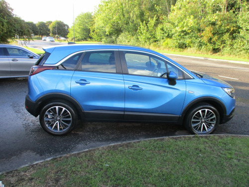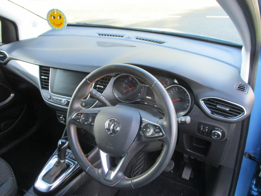 THIS VEHICLE COMES WITH 1 YEARS MOT, WARRANTIED, SERVICED AND FULLY VALETED. A BEAUTIFUL, EXTREMELY LOW MILEAGE 1.2T 130 BHP ELITE NAV PETROL AUTOMATIC 6 SPEED EXAMPLE OF THIS POPULAR VAUXHALL CROSSLAND X SUV 5 DOOR - STUNNING IN A BRIGHT METALLIC BLUE FINISH WITH SILVER AND BLACK 20 SPOKE ALLOYS + JUST 8,058 MILES !!!!, SPACIOUS, COMFORTABLE AND VERSATILE WITH A LARGE EASY LOADING BOOT AREA, HIGHER SEATING FOR EASIER ACCESS + AUTOMATIC GEARBOX FOR EASE OF DRIVING. GREAT SPECIFICATION INCLUDING TOUCH SCREEN SAT-NAV, REVERSE ASSIST, DAB RADIO, APPLE CAR PLAY, ANDROID AUTO, AUX. PLAY AND BLUETOOTH. HALF LEATHER UPHOLSTERY, CRUISE AND DIGITAL CLIMATE CONTROLS, ELECTRIC WINDOWS AND MIRRORS, REVERSE SENSORS, LANE ASSIST, AUTO LIGHTS AND WIPERS, LEATHER COVERED STEERING WHEEL AND GEAR LEVER, FRONT CENTRE ARM REST. HIGH PERFORMANCE COMFORTABLE EASY MOTORING !!