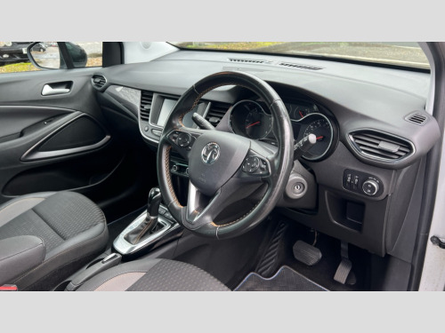 Vauxhall Crossland X 1.2T [110] Elite 5dr [Start Stop] Auto Audible lights on warning, Cruise control + speed limiter, Digital clock, Lane departure warning system, Low fuel level warning light, Multi function trip computer, Outside temperature display, Rear parking distance sensors, Rev counter, Service interval indicator, Speed sensitive power steering, Traffic sign recognition, 6 speakers, Steering wheel mounted audio controls, 2 speed wipers/wash wipe/intermittent wipe, Alloy effect front and rear skid plates, Auto dimming interior mirror with anti-dazzle function, Body colour door handles, Chrome effect bar on front grille, Chrome side window trim, Dark tinted rear windows, Door to door illumination, Electric front/rear windows with one touch, Electrically adjustable and heated door mirrors, Front fog lights, Hazard warning lamps, Heated rear window, Intermittent rear wash/wipe, LED daytime running lights, Rain sensitive windscreen wipers, Rear spoiler, Solar glass windscreen, Tunnel detection for auto light control, Welcome lighting, 12V power point front, 3 spoke leather covered steering wheel with satin chrome effect bezel, Active carbon filter, Air filter, Anti submarining front seats, Black leather-effect outer side bolsters, Carpeted loadspace, Chrome interior door handles, Driver's centre armrest, Driver/passenger sunvisors with illuminated vanity mirrors, Dual zone electronic climate control, Flex floor multi-level adjustable load compartment, Front door pockets with bottle holders, Front map reading lights, Front seat back storage pockets, Glovebox with lid, Height adjustable front/rear head restraints, Illuminated load area, Interior courtesy light operated by all doors, Isofix system on outer rear seats, LED ambient lighting, Luggage compartment cover, Odour filter, Passenger assist handles, Pollen filter, Reach + rake adjustable steering column, Rear door pockets with bottle holders, Rear reading lights, 3x3 point rear seatbelts, ABS, Child locks on rear doors, CSC - Cornering stability control, Driver/Front Passenger airbags, EBD + Brake Assist, ESP + traction control, Front and rear outer seat belt pre-tensioners, Front and rear seatbelt reminder, Front seat side impact airbags, Full size curtain airbags, Hill start assist, Passenger airbag deactivate switch, Seatbelt load limiter, Tyre pressure monitoring system, 2 remote folding keys, Engine immobiliser, Locking wheel nuts, Remote central deadlocking, Remote security alarm system, Tioga grey inserts on facia and door panel