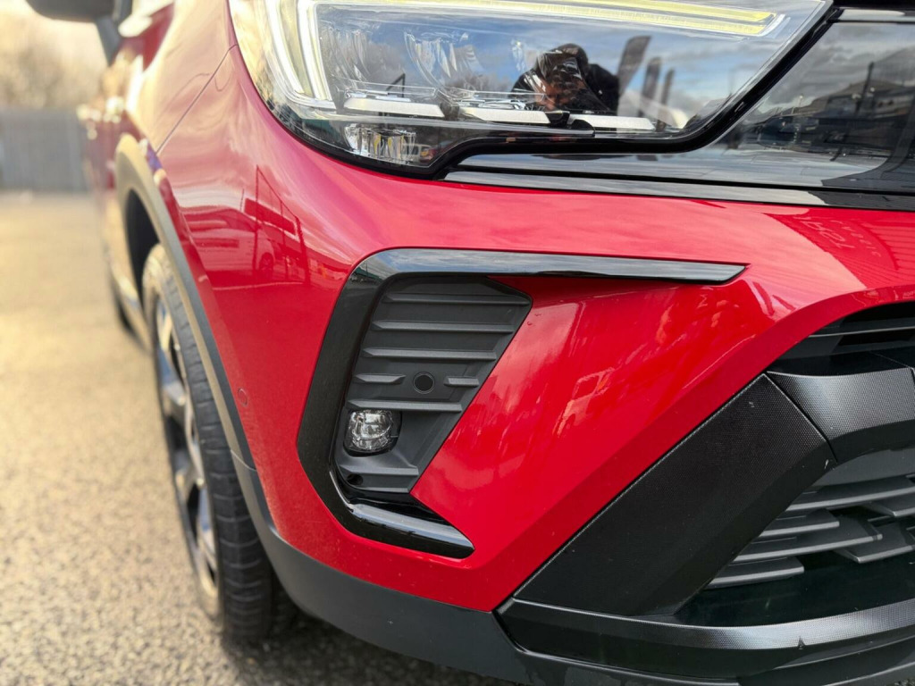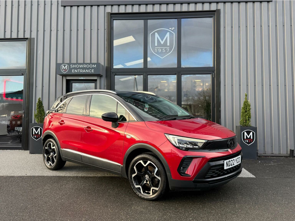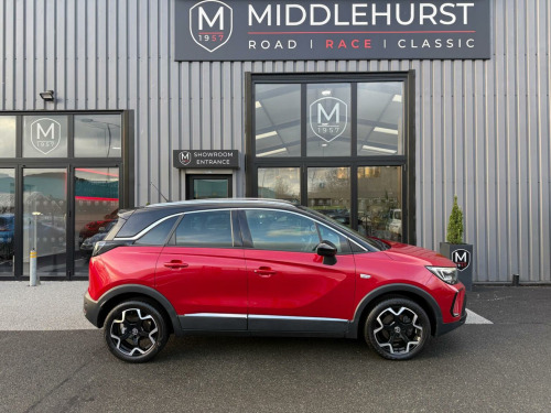 Middlehurst Road Race & Classic present this 2022/22 plate Vauxhall Crossland 1.2 Turbo Ultimate 5dr 6 speed manual finished in metallic Hot Red (with black roof) and dark grey part leather/suede cloth seats. Being the top of the range Ultimate model, it has a fantastic specification including heated front seats, heated steering wheel, Apple CarPlay, Android Auto, built in satellite navigation, reverse parking camera, front & rear parking sensors, keyless start and much more! (Full specification below). It was first registered 29/06/22 and has covered only 16,930 miles from new by its 2 registered keepers. Supplied serviced by us with 12 months MOT and 6 months warranty.