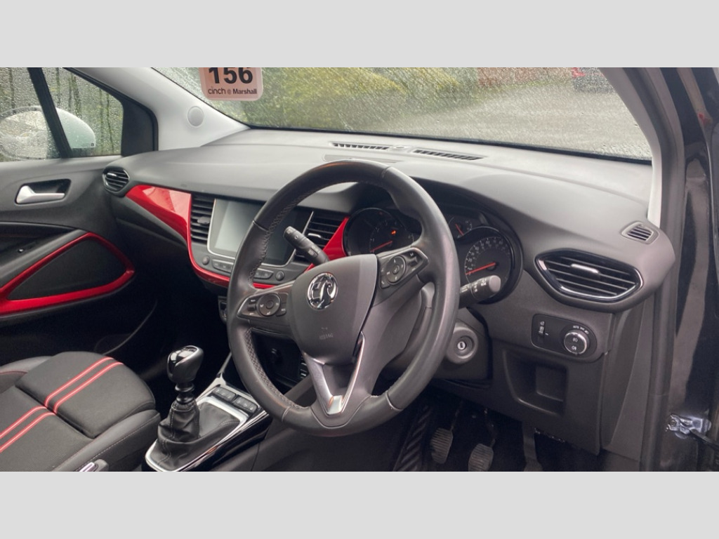Vauxhall Crossland 1.2 Turbo [130] SRi Nav 5dr 3.5" monochrome instrument colour display, Audible lights on warning, Bluetooth connectivity, Cruise control + speed limiter, Digital clock with automatic RDS time adjustment, eCall emergency call system, Instrumentation - Speedometer, rev counter, low fuel gauge warning light + water temperature gauge warning light, shift up/down indicate light, Lane departure warning system, Multi function trip computer, Multimedia sat nav pro with 8" colour touchscreen, AM/FM, Bluetooth streaming, Bluetooth mobile phone portal, apple CarPlay/Android Auto + 6 speakers, Outside temperature display with ice warning, Rear parking distance sensors, Refridgerant low indicator, Service interval indicator, Speed sensitive power steering, Speed sign recognition, Front wheel drive, 2 x USB connections, DAB Digital radio, Steering wheel mounted audio/phone/cruise controls, 2 speed wipers/wash wipe/intermittent wipe, 3rd brake light, Alloy effect front and rear skid plates, Automatic anti dazzle rear view mirror, Automatic headlamp levelling system, Automatic high beam control with cornering light, Automatic lighting control, Black radiator grille with chrome bar, Body colour door handles, Body colour front and rear bumpers, Dark tinted rear side windows + tailgate window, Electrically adjustable and heated door mirrors, Front power windows with express up/down and anti-pinch function, Hazard warning lights, Headlamps for left side traffic, Heated rear window, Integrated tailgate spoiler, Intermittent rear wash/wipe, LED daytime running lights, LED front fog lights, LED Headlights, LED side repeat indicators, Rain sensitive windscreen wipers, Rear fog lights, Rear power windows with express up/down and anti-pinch function, Rear side wing doors, Rear wing door, Reversing light, Side window demist vents, Silver roof rails, Solar heat absorbing windscreen and windows, Welcome lighting, Windscreen demist vents, Without LED rear lights, 12v power outlet - front, 12V power outlets on rear seat, 2 way front passive headrests, 3 seat bench in 2nd row, 3 spoke flat bottomed leather covered steering wheel with bezel decoration, 4 way electrically adjustable lumbar support for drivers seat, 4 way electrically adjustable lumbar support for front passenger seat, Adjustable rear seat backrest, Air recirculation facility, Ambient lighting, Anti submarining ramps in front seats, Banda cloth/vinyl upholstery, Cabin particulate filter - removes dust, airborne particles and pollen, Driver and front passenger illuminated vanity mirrors with flip up covers, Dual zone electronic climate control, Ergonomic active front seats with 8 way manual adjustable driver and front passenger seats with height, reach, and backrest, Fade up/fade down on interior lighting, Four adjustable facia vents, Front door pockets with bottle holders, Front map reading lights, Front passenger seat, Fully carpeted luggage area, Glovebox with lid, Height adjustable front/rear head restraints, Illuminated load area, Interior courtesy light operated by all doors, Isofix system on outer rear seats, Jet black premium leather side bolsters, Luggage compartment cover, Multi-speed fan with Illuminated control, Open storage compartment in centre console, Passenger assist handles, Reach + rake adjustable steering column, Rear door pockets with bottle holders, Rear floor ventilation ducts, Rear reading lights, Satin chrome effect bezel on steering wheel, Seat cushion extension, Sliding 60/40 rear seat with centre rear seat armrest, Storage pockets on front seat backs, Two drinks holders in centre console, Uplevel centre console front centre armrest with storage, Versatility pack - Crossland, 3x3 point rear seatbelts, 6 airbags - Driver and co-driver front, front side, head curtain roof airbags, front and rear row coverage airbags, ABS, Child locks on rear doors, CSC - Cornering stability control, Deactivate switch for side impact airbags, Deformation zones front and rear, Dual seatbelt pretensioners on front seats, EBD - Electronic brakeforce distribution, Energy absorbing steering column, Engine drag torque control, ESP + traction control, Front and rear seatbelt unfastened audible warning and warning light, Front side impact airbag, Hill start assist, Hydraulic Brake Assist (HBA), Hydraulic brake boost, Inertia reel lap and diagonal seatbelts for all seats, Passenger airbag deactivate switch, Rear seat belt pretensioners, Reinforced passenger safety cell, Seatbelt load limiter, Side impact protection beams, Smart seatbelt reminder for front and rear seats, Tyre pressure monitoring system, 2 remote folding keys, Electronically protected audio equipment, Engine immobiliser, Locking wheel nuts, Remote central deadlocking, Remote control central locking activation switch on driver door, Remote control central locking operates on doors, tailgate and fuel filler flap, Remote security alarm system, Visible vehicle identification number, Black facia with red trim insert, Cluster black with printed rings, Red trim inserts on front doors