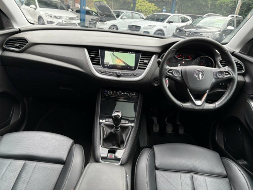 VAUXHALL GRANDLAND X 1.2 TURBO ELITE NAV PETROL 6 SPEED MANUAL OFFERED IN METALLIC BLUE/BLACK ROOF/BLACK LEATHER HEATED SEATS AND STEERING WHEEL/ELECTRIC MEMORY SEATS/SATELLITE NAVIGATION/BLUETOOTH CONNECTIVITY/DAB RADIO/DUAL ZONE CLIMATE CONTROL/MULTI FUNCTION STEERING WHEEL/CRUISE CONTROL/ELECTRIC DOOR MIRRORS/SUN PROTECTION GLASS/19 INCH ALLOY WHEELS/FRONT AND REAR PARKING SENSORS/EXCELLENT CONDITION INSIDE AND OUT/PX WELCOME.JUST ARRIVED AND AWAITING PREPERATION. 12V Electrical Accessory Socket, 19in Alloy Wheels - Multi-Spoke Silver, 60-40 Split-Folding Rear Seat Back, ABS - Anti Lock Brakes, Advanced Predictive Logic Control System, Airbags - Front Seat Side-Impact, Alloy Effect Protective Front and Rear S, Ambient Lighting, Anti-Submarining Ramps in Front Seats, Automatic Air Direction and Fan Speed, Automatic Lighting and Windscreen Wipers, Automatic Tilting Door Mirrors, Automatically Dimming Anti-Dazzle Rear-V, Black Door Panels with Black Premium Lea, Body Colour Door Mirrors, Body Coloured Door Handles, Central Facia Display, Charcoal Filter, Child Proof Locks on Rear Doors, Chrome Effect Front Grille Bar, Chrome Effect Interior Door Handles,