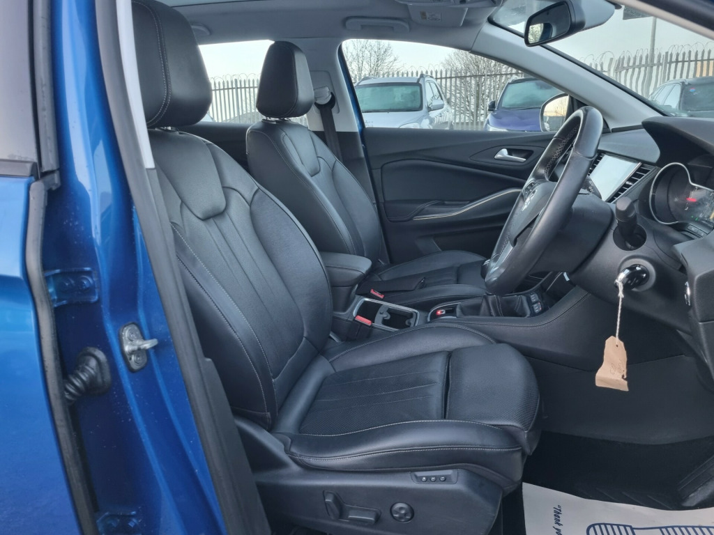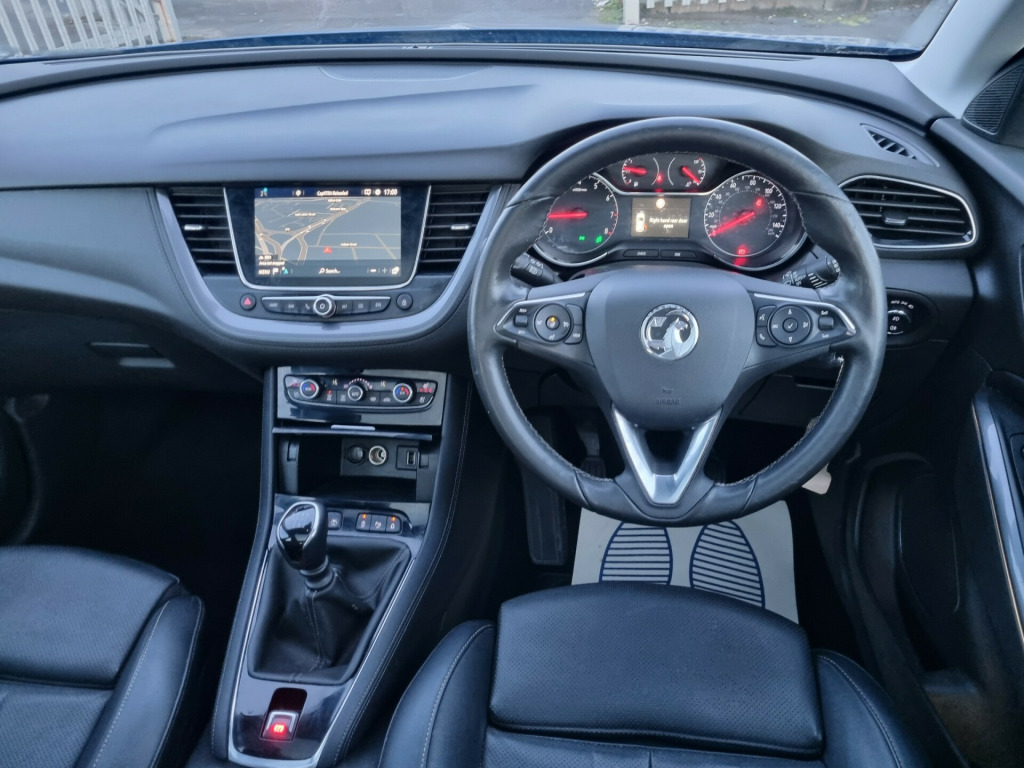 We Are Proud To Present This 2018 Vauxhall Grandland X 5dr Presented In Topaz Blue With Complementing Black Interior. This Amazing Car Includes, 19'' Alloy Wheels, Panoramic Roof, Sat Nav, Front + Rear Sensors, Entertainment System, HEATED SEAT + STEERING WHEEL, Privacy Glass, Automatic Led Daytime Running Lights, Cruise Control, Dual Climate with Air Conditioning, AUX And USB Connectivity, Manual Gearbox And Multifunction Leather Steering Wheel. Do Not Miss This Stunning Example, Reserve This Vehicle Now For £100,FCA Approved Garage, TOP PRICE PAID ON PART EXCHANGE, BUY WITH CONFIDENCE. v electrical accessory socket, 220v rear power outlet behind front seats, luggage compartment 12v electrical accessory socket, navi 5.0 intellilink touchscreen navigation and infotainment system, six speakers - four front-two rear, wireless charger for mobile devices, 19in alloy wheels - five twin spoke - diamond cut, alloy effect protective front and rear skid plates, body colour door mirrors, body coloured door handles, chrome effect front grille bar, chrome effect side window upper trim, electrically operated front and rear windows with safety autoreverse and one-touch facility, fixed panoramic glass roof panel with electrically operated sunblind, gloss black b-pillars, heated rear screen with timed cut-off, heated windscreen, intermittent rear window wash-wipe, locking wheel nuts, rear fog light, rear spoiler, reversing lights, side protection mouldings, sound absorbing windscreen, tinted windows, twin electrically adjustable - heated door mirrors - wide-angle on drivers side with automatic timed cut-off, upper and lower bumper design, abs - anti lock brakes, airbags - front seat side-impact, csc - corner stability control, child proof locks on rear doors, collapsible windscreen wiper system, deactivation switch for front passengers front and side impact airbags, deformation zones front and rear, drivers and front passengers airbags, dual seatbelt pretensioners on front seats, ebd - electronic brakeforce distribution, electric parking brake, electronically protected audio equipment, energy absorbing steering column, engine deadlock immobiliser, engine drag torque control, full size curtain airbags for driver - front passenger and outer rear seat passengers, hazard warning lights, hill start assist, hydraulic brake assist, inertia-reel lap and diagonal seatbelts, load limiters outer rear seatbelt retractors, park and go pack one, pretensioners on outer rear seatbelt retractors, reinforced passenger safety cell, remote control central locking, remote control security alarm system, safety pack, side impact protection beams, smart seatbelt reminder for front and rear seats, switchable electronic stability programme - esp, traction control, two folding keys - each with integral remote control function, vin - visible vehicle identification number, i-size compatible child seat mountings located on front passenger and outer rear seats, ambient centre console downlighter, ambient lighting in front doors, anti-submarining ramps in front seats, automatically dimming anti-dazzle rear-view mirror, black door panels with black premium leather-effect inserts, centre rear seat head restraint, chrome effect interior door handles, covered storage compartment in centre console and drivers armrest, drivers centre armrest, drivers and front passengers sunvisors with illuminated vanity mirrors, electronic climate control including air conditioning, ergonomic active front seats - agr-approved and power drivers seat, four adjustable facia vents, front door pockets with 2.6litre capacity, front door sill covers - alloy-effect, front and rear passengers assist handles, fully carpeted luggage area, height adjustable front seat head restraints, height adjustable rear seat head restraints, height adjustable and removable head restraints, interior courtesy light operated by door switches, leather seat facings, luggage compartment cover, rain sensitive windscreen wipers, rake and reach adjustable steering, reading lights - rear, rear door pockets with 1.8litre capacity, rear passenger compartment heating ducts, seats - rear split folding 60-40, side window demist vents, sight and light pack, steering wheel - three-spoke design - leather covered - satin chrome-effect bezel, steering wheel mounted audio controls, three person layout, toba grey facia and door panel inserts, two drinks holders in centre console, two speed windscreen wipers with variable intermittent wipe, ventilated glovebox with lid, versatility pack, welcome lighting, windscreen demist vents, winter pack one, automatic lighting control, door to door illumination, front fog lights, halogen headlights with manual beam levelling and high beam assist, high-level centre brake light, led daytime running lights, led tail lights, lights on audible warning, central facia display, cruise control with speed limiter and intelligent speed adaptation, driver information display, fuel gauge with low fuel warning light, multi-function trip computer, rev counter, shift up indication light, side blind spot alert, speed sign recognition, speed-sensitive electric power-assisted steering, speedometer, tyre pressure deflation detection system, water temperature gauge with warning light
