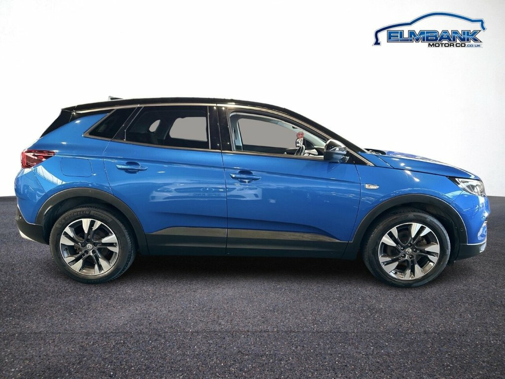 2020 69 VAUXHALL GRANDLAND X 1.2 TURBO SRI NAV 130 PS EURO 6 - ULEZ COMPLIANT. A VERY WELL PRESENTED EXAMPLE ON OFFER WITH 2 KEYS AND STUNNING TOPAZ BLUE METALLIC PAINTWORK! LOVELY TO DRIVE AND IN EXCELLENT CONDITION THROUGHOUT. SPECIFICATION INCLUDES ALLOY WHEELS, REMOTE CENTRAL LOCKING, DAB RADIO, CRUISE CONTROL, FRONT & REAR PARKING SENSORS, REAR PRIVACY GLASS, LED DAYLIGHT RUNNING LAMPS, SATELLITE NAVIGATION, AUTO LIGHTS AND WIPERS, DIGITAL CLIMATE CONTROL AND BLUETOOTH. SUPPLIED WITH 12 MONTHS MOT INCLUDING PRE DELIVERY SERVICE AND INSPECTION. WE CAN OFFER BESPOKE FINANCE PACKAGES AND PART EXCHANGE FACILITIES. FOR MORE INFORMATION PLEASE CALL ELMBANK MOTOR COMPANY ON 01292 292991. Harlekin Fabric - Black, Topaz Blue, 12V Electrical Accessory Socket, 18in Alloy Wheels - Five Spoke Diamond-C, 60-40 Split-Folding Rear Seat Back, ABS - Anti Lock Brakes, Advanced Predictive Logic Control System, Airbags - Front Seat Side-Impact, Alloy Effect Protective Front and Rear S, Ambient Lighting, Anti-Submarining Ramps in Front Seats, Automatic Air Direction and Fan Speed, Automatic Lighting and Windscreen Wipers, Automatic Tilting Door Mirrors, Automatically Dimming Anti-Dazzle Rear-V, Black Door Panels with Black Premium Lea, Black Roof and Door Mirrors, Body Coloured Door Handles, CSC - Corner Stability Control, Central Facia Display, Charcoal Filter, Child Proof Locks on Rear D
