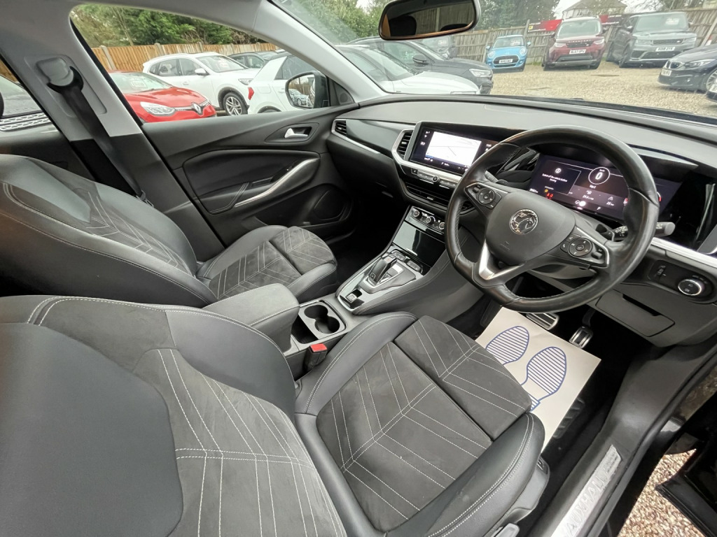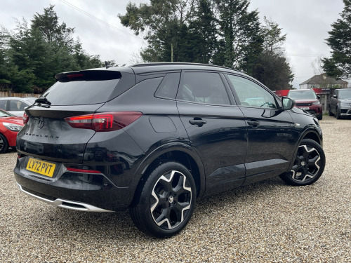 Essex Car Fleet is delighted to present this black 2022 (72) Vauxhall Grandland 1.2 Turbo Ultimate Automatic, a superbly specified SUV that combines bold styling, advanced technology and premium comfort. With just 24,503 miles, this Ultimate model sits at the top of the Grandland range and it really shows. Finished in sleek black with contrasting black roof and high-gloss black detailing, this Grandland looks every bit the modern, upmarket SUV. The exterior is enhanced by 19in diamond-cut bi-colour alloy wheels, IntelliLux LED Pixel headlights, LED fog lights, dark tinted rear windows, black roof rails, and silver-effect skid plates, giving it a confident and sporty stance on the road. Inside, the cabin feels refined and high-tech. Youre greeted by a 12in digital instrument cluster and digital central touchscreen with Multimedia Navi Pro and satellite navigation, delivering a crisp, intuitive driving experience. Comfort is outstanding thanks to the AGR-approved ergonomic active heated sports front seats, dual-zone electronic climate control, ambient lighting, heated steering wheel and windscreen (Winter Pack), and wireless phone charging. The power tailgate with hands-free foot sensor adds everyday convenience. This Ultimate specification is packed with advanced safety and driver assistance features, including 360-degree panoramic parking camera, advanced park assist, front and rear parking sensors, automatic emergency braking with pedestrian detection, lane keep assist, blind spot alert, speed sign recognition, driver drowsiness alert, and highway integration assist. Add to that keyless entry and start, adaptive cruise functionality, and paddle shift, and you have a car that makes every journey effortless. Powered by the smooth and efficient 1.2 Turbo petrol engine paired with an automatic gearbox, this Grandland delivers refined performance with excellent fuel efficiency, ideal for both town driving and long motorway journeys. A fantastic opportunity to own a top-spec Vauxhall Grandland Ultimate with premium features throughout, strong road presence and low mileage, this is a standout SUV that ticks all the right boxes. With our location based in Battlesbridge in Essex, Enjoy haggle-free buying experience where you can drive away the same day of prior arranged appointment. Please see our website for details. Call now or enquire online for a no-obligation test drive, finance quote or part-exchange valuation, 5 Star Dealer, Finance Available, Delivery Available, Part exchange Available, all cars are supplied with a 3 months warranty, 12 months MOT. Please call all a member of the team on 01268 572992 and we will be delighted to help you move your enquiry forward 5 Star Dealer, Finance Available, Delivery Available. , Our preparation team have inspected to the highest level possible for the age and mileage of vehicle, You can rest assured your car has been cared for to our highest Standard. With our location based in Battlesbridge in Essex you can enjoy a haggle-free buying experience where you can drive away the same day if prior arranged appointment. £150 admin fee applies, please see our website for details.