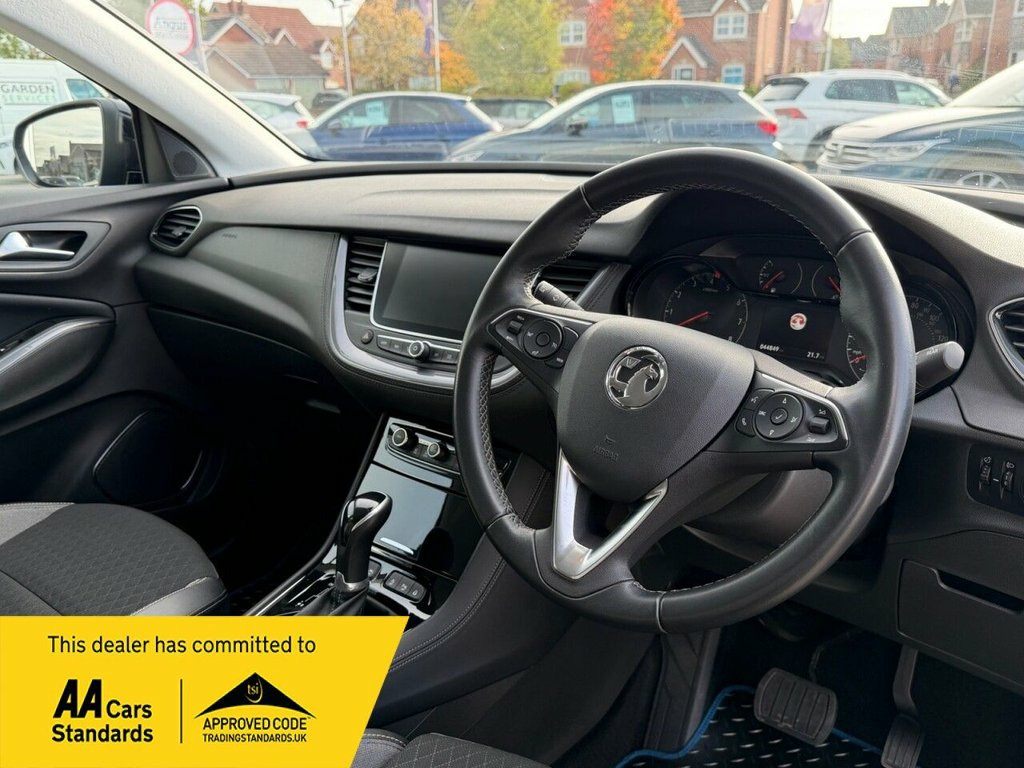 This 2021 Vauxhall Grandland X Turbo D SRi Nav is presented with a recent service completed on 2024 10 03 at 38250 miles, offering peace of mind alongside its partial service history. This Euro 6 compliant 1.5L diesel model benefits from a 3 month warranty and a 12 month MOT provided on purchase. The SRi Nav trim level includes the impressive Multimedia Navi Pro System, complete with Android Auto, Apple CarPlay, and Bluetooth connectivity. Navigating and parking are made simpler with front and rear parking distance sensors, a rear view camera, and automatic lighting control. For effortless journeys, it features automatic cruise control with an adaptive function and a speed limiter.  This Grandland X stands out with its excellent fuel economy, achieving a highlight of 54 mpg, which is better than many similar vehicles. Its low CO2 emissions also contribute to its appeal, making it a more environmentally conscious choice. Furthermore, its low insurance group rating means that running costs are kept down, further enhancing its value compared to other cars in its class.  =========  Specification:  18in Gloss Black Alloy Wheels LED Headlights & Daytime Running Lights Multimedia Navi Pro with 10.25in Display Apple CarPlay and Android Auto Rear View Camera + Front & Rear Parking Sensors Dual-Zone Electronic Climate Control Ergonomic AGR-Approved Driver's Seat Heated & Power-Folding Door Mirrors Automatic Cruise Control with Speed Limiter Lane Departure Warning & 12V Electrical Accessory Socket, 18in Alloy Wheels - 5-Spoke - High Gloss, ABS - Anti-Lock Braking System, Advanced Predictive Logic Control System, Airbags - Front Seat Side-Impact, Anti-Submarining Ramps in Front Seats, Automatic Air Direction and Fan Speed, Automatic Cruise Control with Speed Limi, Automatic Lighting Control, Automatically Dimming Anti-Dazzle Rear-V, Black Door Panels with Black Premium Lea, Black Roof and Door Mirrors, Body Coloured Door Handles, Central Facia Display, Charcoal Filter, Child Proof Locks on Rear Doors, Chrome Effect Front Grille Bar, Chrome Effect Interior Door Handles, Chrome Effect Side Window Upper Trim, Collapsible Windscreen Wiper System, Covered Sto