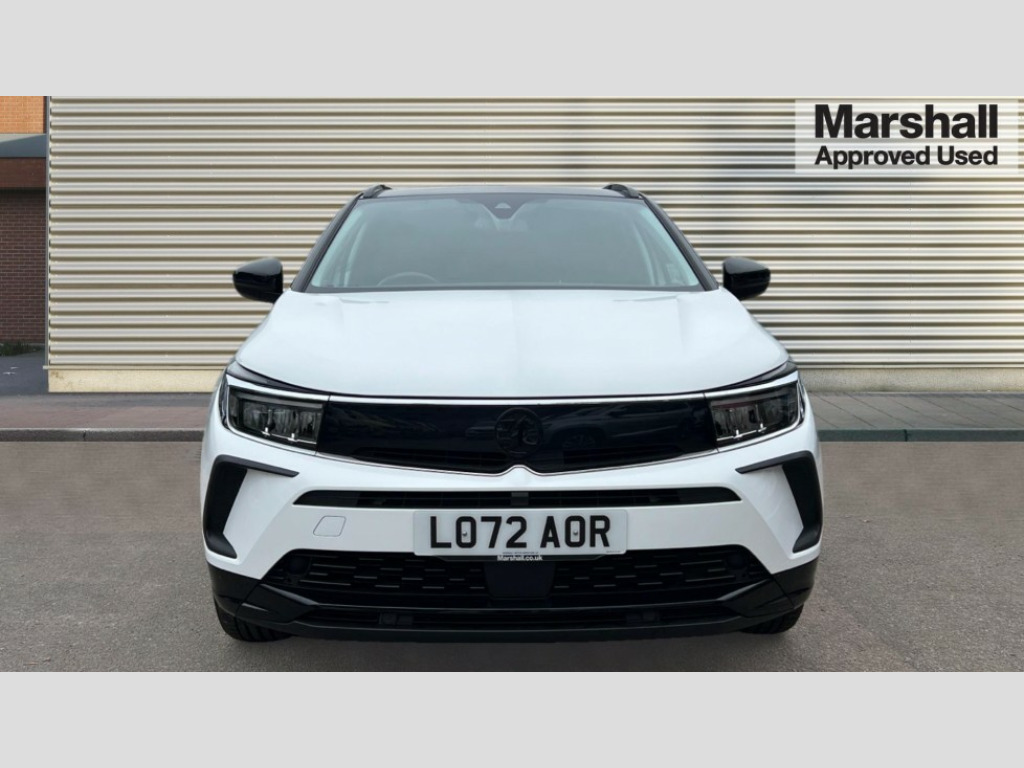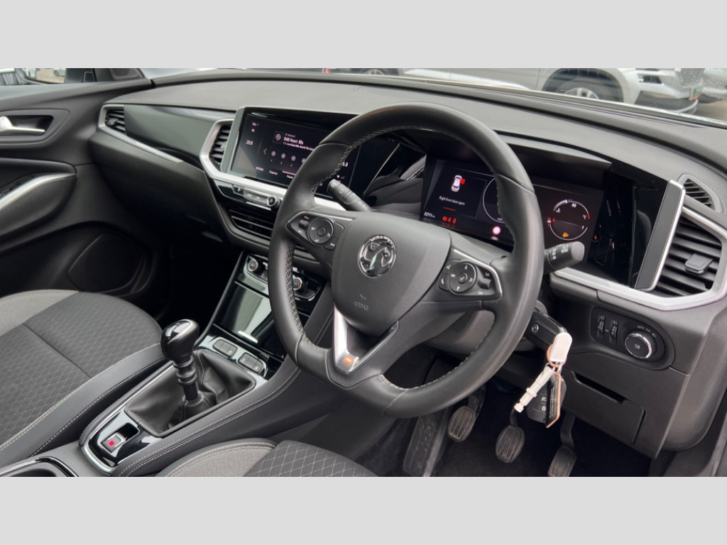 Vauxhall Grandland 1.2 Turbo GS Line 5dr 12" colour digital cluster, 180 degree rear view camera, Central facia display with digital clock, outside air temperature and audio information, Cruise control with speed limiter, Digital fuel gauge with low fuel level warning light, Digital rev counter, Digital speedometer, Digital water temperature gauge with warning light, Driver drowsiness alert system, Driver information - Total mileage, service indicator, oil life, Front and rear parking distance sensors, Gearshift up/down indication light, Lane departure warning system, Lane keep assist, Lights on audible warning, Multi function trip computer - Trip odometer, vehicle range, average speed and fuel economy, instantaneous fuel economy and driving time, Multimedia navi pro with 10" colour touch+ sat nav+AM/FM/DAB radio, bluetooth audio streaming/mobile phone portal, Apple carplay/Android auto, USB, Speed sensitive electric power assisted steering, Speed sign recognition, Vauxhall connect including Emergency call (SOS e-call) and Breakdown call (b-call), Six speaker - four front + two rear, Steering wheel mounted audio/phone/cruise controls, Automatic lighting control, Automatically dimming anti dazzle rear view mirror, Black door mirrors, Black side window trim, Body colour door handles, Body colour upper front bumper, Carbon black lower front and rear bumpers, protective wheel arches and lower door cladding, Collapsible windscreen wipers, Dark tinted rear side and tailgate windows, Door to door illumination, Electrically operated front and rear windows with safety auto reverse and one touch up/down facility, Front wiper system spraying directly from wipers, Hazard warning lights, Heated rear screen with timed cut off, High beam assist, High gloss black Griffin for Vizor and tailgate with high gloss black Grandland tailgate lettering, High gloss black protective front and rear skid plates and C-shape bumper inserts, High gloss black roof rails, High level centre rear brake light, Intermittent rear window wash/wipe, LED daytime running lights, LED Headlights, LED tail lights, Magic wash, Manual headlight beam levelling, Rain sensor windscreen wipers, Rear side wing doors, Rear spoiler, Reversing light, Shark fin aerial, Soundproof insulated windscreen, Tinted windows, Twin electrically adjustable and heated power door mirrors (wide-angle on drivers side) with automatic timed cut-off, Two speed windscreen wipers with variable intermittent wipe, Upper and lower bumper design, Vizor front grille, Welcome lighting, 12V electrical accessory socket in front, 3 bench rear seats in 2nd row, 3 spoke flat bottom leather steering wheel with satin chrome effect bezel, 4 way electric driver lumbar support, 60/40 split folding rear seat, Advanced predictive logic control system using a sun sensor, Ambient centre console downlighter, Automatic air direction and fan speed with manual override, Charcoal filter, Chrome effect interior door handles, Covered storage compartment in centre console and in driver armrest, Driver's centre armrest, Drivers seat with height, reach, backrest adjustment and seat cushion extension, Dual zone electronic climate control, Ergonomic active drivers sports style seat, Focus cloth upholstery, Front door pockets with 2.6 litre capacity, Front passenger seat, Front passenger seat with reach and backrest adjustment, Front passengers sports style seat, Fully carpeted luggage area, Height adjustable headrests, Illuminated driver/passenger sunvisors with vanity mirror, Illuminated luggage area, ISOFIX on front passenger and rear outer seats, Luggage compartment cover, Reach + rake adjustable steering column, Rear centre seat head restraint, Rear door pockets with 1.8 litre capacity, Rear passenger compartment heating ducts, Rear reading lights, Two drinks holders in centre console, Anti-lock braking system (ABS), Automatic emergency braking with pedestrian detection, Child proof locks on rear doors, CSC - Cornering stability control, Deactivation switch for front passenger front and side impact airbags, Deflation detection system, Driver airbag, Dual seatbelt pretensioners on front seats, EBD - Electronic brakeforce distribution, Electronic parking brake, Electronic stability program (ESP) including traction control, Front passenger airbag, Front seat side impact airbags, Full size curtain airbags for driver, front seat passenger and outer rear seat passengers, Hill start assist, Hydraulic Brake Assist (HBA), Inertia reel lap and diagonal seatbelts for all seats, Load limiters on outer rear seatbelt retractors, Pretensioners on outer rear seatbelt retractors, Smart seatbelt reminder for front and rear seats, Tyre pressure monitoring system, Deadlocking system, Electronically protected audio equipment, Engine deadlock immobiliser, Locking wheel nuts, Remote control central locking activation switch on driver door, Remote security alarm system, Black door panels with black premium leather effect inserts, Dax decor facia panel with palladium medium finish, 18" 5 twin spoke high gloss black alloy wheels, Tyre inflation kit