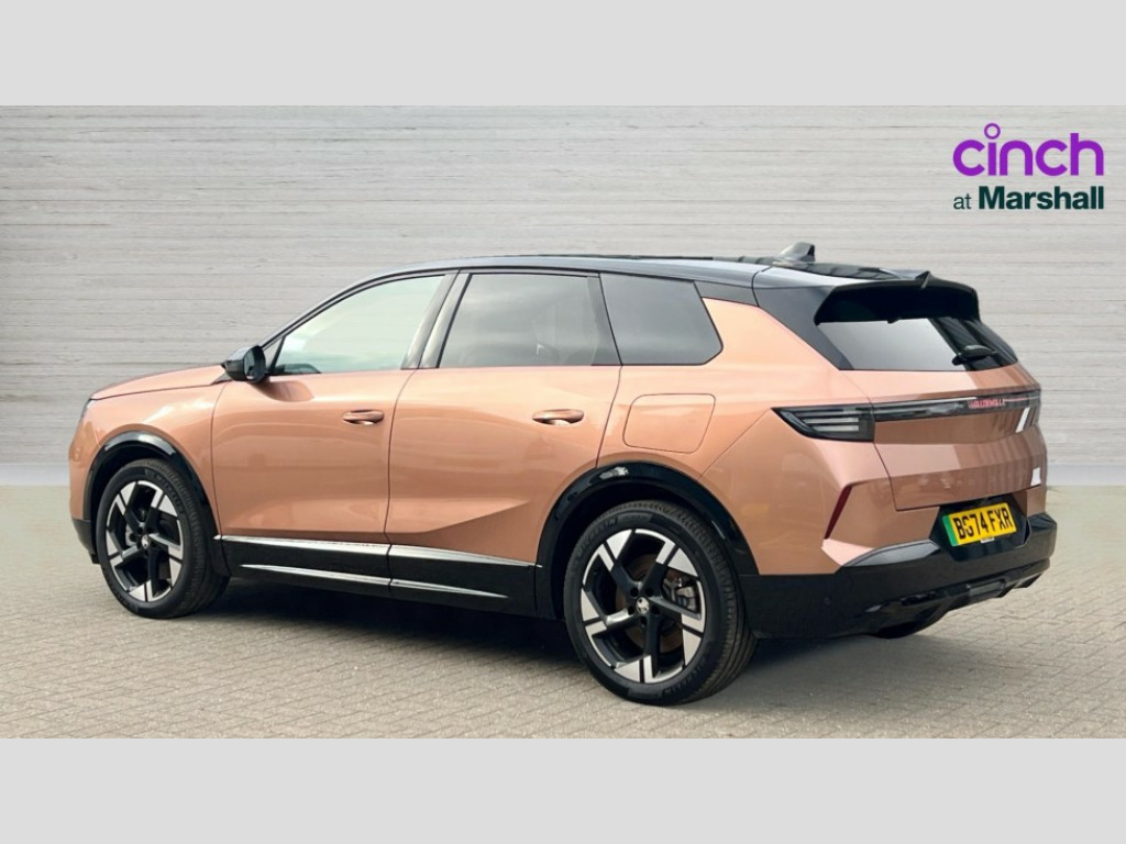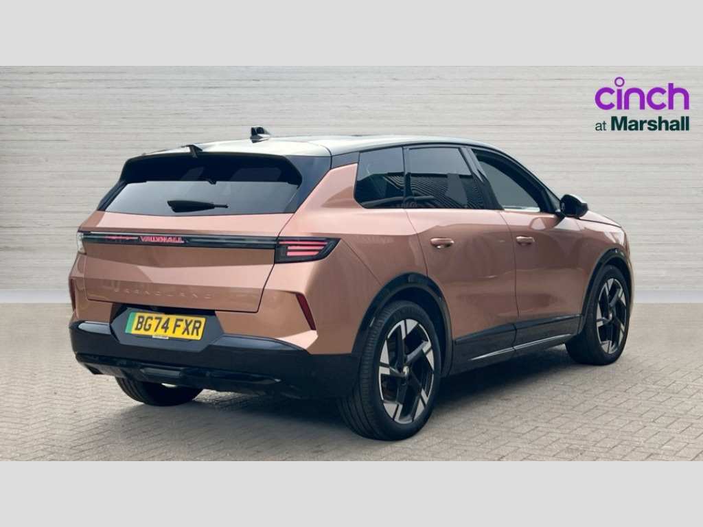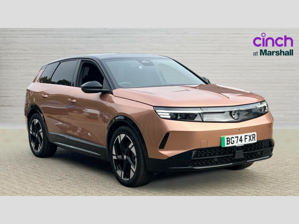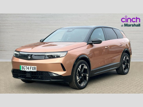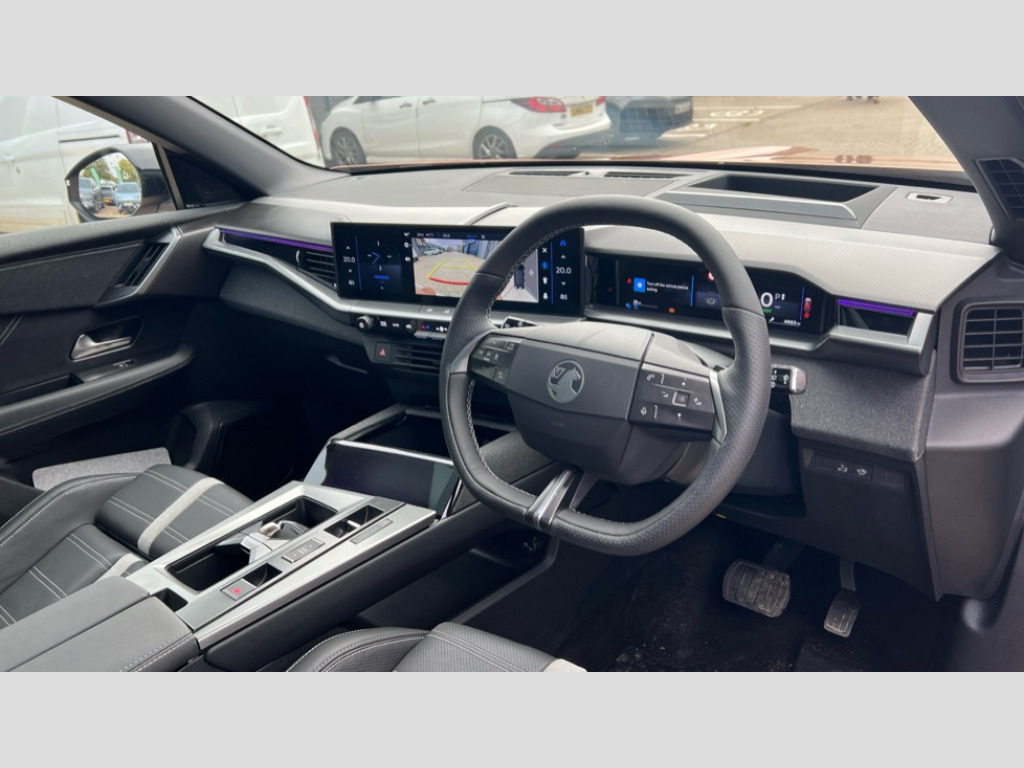 Vauxhall Grandland 157kW GS 73kWh 5dr Auto 10" digital instrument cluster, 16" multimedia navigation with wireless Apple Carplay/Android auto, Adaptive cruise control with Stop and Go, Central facia display with digital clock, outside air temperature and audio information, Digital fuel gauge with low fuel level warning light, Digital speedometer, Drive mode selector (Eco, Normal, Sport), Driver drowsiness alert system, Electric power steering, Extended traffic sign recognition, Front and rear parking sensors, In-crash braking, Intelligent speed adaptation, Lane keep assist, Lights on audible warning, Manual tailgate, Multi function trip computer - Trip odometer, vehicle range, average speed and fuel economy, instantaneous fuel economy and driving time, Rear view camera, Speed sign recognition, Vauxhall connect including Emergency call (SOS e-call) and Breakdown call (b-call), Wireless charger for mobile devices, 11 kW Onboard charger, Anti-roll bars, Compound crank rear suspension with coil springs and gas pressure dampers, Frequency selective damping (FSD) suspension, Independent decoupled MacPherson strut front suspension with gas pressure dampers and coil springs, anti-roll bar, Stability control, 2 rear USB-C sockets, 6 speakers, AM/FM and DAB radio, Radio controls on steering wheel, Acoustic windscreen, Auto headlights, Automatic headlight beam levelling, Black door mirrors, Body colour door handles, Dark tinted rear windows, Electrically defrosting driver and passenger door mirrors, Electrochromic rear view mirror, Front illuminated griffin, Front wiper system spraying directly from wipers, Glossy black lower door claddings, High gloss black front and rear bumpers, High gloss black roof spoiler, High gloss black wheel arch claddings, Illuminated rear Vauxhall, IntelliLux LED headlights with 3D illuminated vizor, welcome and farewell animation, 11 driving modes and adaptive high beam assist, Intermittent rear window wash/wipe, LED 3rd brake light, LED daytime running lights, LED tail lights, Magic wash, Power folding door mirrors, Power front and rear windows, Rain sensor windscreen wipers, Rear side wing doors, Rear wipers with camera cleaning, Two speed windscreen wipers with variable intermittent wipe, Welcome lighting, 10 way manual adjustable heated front seats with AGR approved with pneumatic lumbar support, cushion nose extension and power tilt, 2 cupholders with slider, 3 12V plugs, 3 bench rear seats in 2nd row, 3 spoke leather effect steering wheel with dimpling, 7 colour ambient lighting, Automatic air conditioning, Bird cloth upholstery, Centre console armrest, Chrome effect interior door handles, Cooled glove box and central console storage with LED light, Dashboard and door panels polychromatic ambient lighting, Dual zone electronic climate control, Front and rear LED reading lights, Front door storage with 1.5 litre capacity, Front seat back storage pockets, Fully carpeted luggage area, Heat pump, Heated steering wheel, Height adjustable headrests, Illuminated vanity mirrors, Pixel storage, Rear armrest, Rear centre seat head restraint, Rear clothes hooks on B pillar trims, Single passenger seat, Sunglasses Box, Anti-lock braking system (ABS), Automatic emergency braking system, Child proof locks on rear doors, Deactivation switch for front passenger front and side impact airbags, Deflation detection system, Driver airbag, Dual seatbelt pretensioners on front seats, EBD - Electronic brakeforce distribution, Electronic parking brake, Front passenger airbag, Front seat side impact airbags, Full-size curtain airbags for driver and front passenger, Hill assist control, Hydraulic Brake Assist (HBA), Inertia reel lap and diagonal seatbelts for all seats, Load limiters on outer rear seatbelt retractors, Pretensioners on outer rear seatbelt retractors, Rear 3 point ISOFIX, Smart seatbelt reminder for front and rear seats, Tyre pressure monitoring system, Central locking, Deadlocking system, Electronically protected audio equipment, Engine deadlock immobiliser, Keyless entry and start, Locking wheel nuts, Remote security alarm system, Mistral dark ambience, 19" Diamond cut alloy wheels, Tyre repair kit