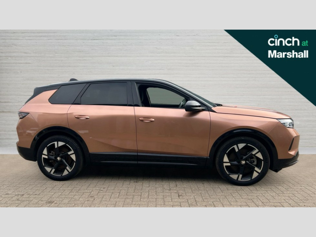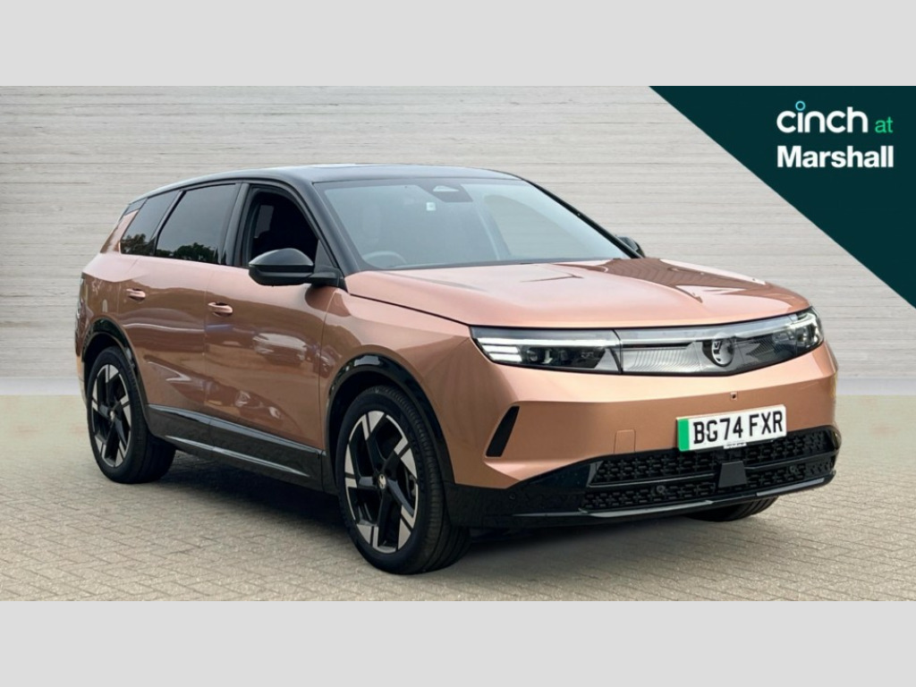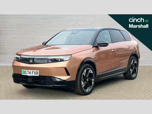 Vauxhall Grandland 157kW GS 73kWh 5dr Auto 10" digital instrument cluster, 16" multimedia navigation with wireless Apple Carplay/Android auto, Adaptive cruise control with Stop and Go, Central facia display with digital clock, outside air temperature and audio information, Digital fuel gauge with low fuel level warning light, Digital speedometer, Drive mode selector (Eco, Normal, Sport), Driver drowsiness alert system, Electric power steering, Extended traffic sign recognition, Front and rear parking sensors, In-crash braking, Intelligent speed adaptation, Lane keep assist, Lights on audible warning, Manual tailgate, Multi function trip computer - Trip odometer, vehicle range, average speed and fuel economy, instantaneous fuel economy and driving time, Rear view camera, Speed sign recognition, Vauxhall connect including Emergency call (SOS e-call) and Breakdown call (b-call), Wireless charger for mobile devices, 11 kW Onboard charger, Anti-roll bars, Compound crank rear suspension with coil springs and gas pressure dampers, Frequency selective damping (FSD) suspension, Independent decoupled MacPherson strut front suspension with gas pressure dampers and coil springs, Stability control, 2 rear USB-C sockets, 6 speakers, AM/FM and DAB radio, Radio controls on steering wheel, Acoustic windscreen, Auto headlights, Automatic headlight beam levelling, Black door mirrors, Body colour door handles, Dark tinted rear windows, Electrically defrosting driver and passenger door mirrors, Electrochromic rear view mirror, Front illuminated griffin, Front wiper system spraying directly from wipers, Glossy black lower door claddings, High gloss black front and rear bumpers, High gloss black roof spoiler, High gloss black wheel arch claddings, Illuminated rear Vauxhall, IntelliLux LED headlights with 3D illuminated vizor, welcome and farewell animation, 11 driving modes and adaptive high beam assist, Intermittent rear window wash/wipe, LED 3rd brake light, LED daytime running lights, LED tail lights, Magic wash, Power folding door mirrors, Power front and rear windows, Rain sensor windscreen wipers, Rear side wing doors, Rear wipers with camera cleaning, Two speed windscreen wipers with variable intermittent wipe, Welcome lighting, 10 way manual adjustable heated front seats with AGR approved with pneumatic lumbar support, cushion nose extension and power tilt, 2 cupholders with slider, 3 12V plugs, 3 bench rear seats in 2nd row, 3 spoke leather effect steering wheel with dimpling, 7 colour ambient lighting, Automatic air conditioning, Bird cloth upholstery, Centre console armrest, Chrome effect interior door handles, Cooled glove box and central console storage with LED light, Dashboard and door panels polychromatic ambient lighting, Dual zone electronic climate control, Front and rear LED reading lights, Front door storage with 1.5 litre capacity, Front seat back storage pockets, Fully carpeted luggage area, Heat pump, Heated steering wheel, Height adjustable headrests, Illuminated vanity mirrors, Pixel storage, Rear armrest, Rear centre seat head restraint, Rear clothes hooks on B pillar trims, Single passenger seat, Sunglasses Box, Anti-lock braking system (ABS), Automatic emergency braking system, Child proof locks on rear doors, Deactivation switch for front passenger front and side impact airbags, Deflation detection system, Driver airbag, Dual seatbelt pretensioners on front seats, EBD - Electronic brakeforce distribution, Electronic parking brake, Front passenger airbag, Front seat side impact airbags, Full-size curtain airbags for driver and front passenger, Hill assist control, Hydraulic Brake Assist (HBA), Inertia reel lap and diagonal seatbelts for all seats, Load limiters on outer rear seatbelt retractors, Pretensioners on outer rear seatbelt retractors, Rear 3 point ISOFIX, Smart seatbelt reminder for front and rear seats, Tyre pressure monitoring system, Central locking, Deadlocking system, Electronically protected audio equipment, Engine deadlock immobiliser, Keyless entry and start, Locking wheel nuts, Remote security alarm system, Mistral dark ambience, 19" Diamond cut alloy wheels, Tyre repair kit