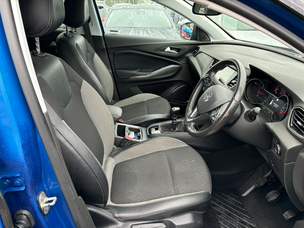 Vauxhall Grandland X 1.2 Sport in blue. An outstanding example here, in superb condition both inside and out. Comes complete with Full Service History, an incredibly well cared for car and it shows. Huge spec too including Heated Seats, Heated Steering Wheel, Heated Windscreen, Sat-Nav, DAB Radio, Bluetooth Hands Free, Bluetooth Audio Streaming, Cruise Control, Dual Zone Climate Control, Front & Rear Parking Sensors, A/C, Alloy Wheels, USB...the list goes on and on. Don't miss your chance to own this remarkable vehicle. Visit Coopers Car Sales today or call us at 02920885149 to arrange a test drive and experience the Vauxhall Grandland X for yourself! 12v Socket,Adjustable Steering Wheel,Air Conditioning,Alarm,Alloy Wheels,Anti Lock Brakes,Auto On Headlights,Aux Input,Bluetooth Audio Streaming,Bluetooth Telephone Hands Free,CD Radio,Central Locking,Cloth Upholstery,Climate Control,Cruise Control,Cupholders,DAB Radio,Driver Airbag,Electric & Heated Door Mirrors,Front Fog Lights,Front Parking Sensor,Fuel Computer,Full Service History,Height Adjustable Drivers Seat,Immobiliser,ISOFIX,Heated Seats,Heated Steering Wheel,Heated Front Windscreen,Metallic Paint,Multiple Airbags,Passenger Airbag,Power Assisted Steering,Rear Parking Sensor,Remote Central Locking,Satellite Navigation,Split Folding Rear Seats,Traction Control,Trip Computer,Tyre Pressure Monitor,USB