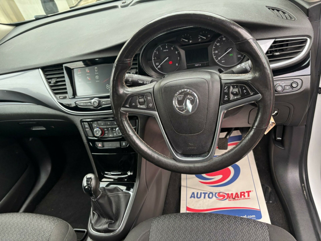 This 2018 Vauxhall Mokka X i Turbo Active boasts a full service history and has had only one owner from new, offering excellent provenance. This Euro 6 compliant 1.4 litre petrol model comes with a 3 month warranty for your peace of mind. Inside, you'll find electronic climate control with air conditioning, and the R4.0 IntelliLink system which includes a touch screen, Android Auto, Apple CarPlay, and Bluetooth connectivity. Automatic lighting control ensures your headlights are always on when needed, and front and rear parking distance sensors with parking assistance make manoeuvring simple.The Mokka X i Turbo Active offers a compelling blend of practicality and technology. Its 0-60mph acceleration in just 9.6 seconds demonstrates its responsive performance, while its low insurance group rating indicates that running costs are kept to a minimum, setting it apart from many other vehicles in its class. This combination of efficient performance, advanced features, and strong provenance makes it a well considered choice. -volt electrical accessory socket, 12-volt power outlet behind front seats, 18in alloy wheels - silver effect, 60-40 split flip and fold rear seat, abs - anti-lock braking system, adaptive brake lights, airbag - drivers, airbags - front seat side-impact, armrest - drivers, automatic lighting control, automatically dimming anti-dazzle rear-view mirror, black b-pillars, black door panels with black atlantis cloth inserts, black facia, body colour door mirrors, body side protection mouldings, body-colour door handles, burst-proof door locks and anti-jam door design, central facia display, child proof locks on rear doors, chrome effect front grille bar, chrome effect interior door handles, collapsible windscreen wiper system, comfort front seats, cruise control with speed limiter, daytime running lights - led, deactivation switch for front passengers front and side impact airbags, deadlocks, deformation zones front and rear, door-to-door illumination, driver information display, drivers internal central locking activation switch, drivers and front passengers illuminated vanity mirrors with flip-up cover, drivers and front passengers lap belt pretensioner system, ebd - electronic brakeforce distribution, esp - switchable electronic stability programme, electrically operated front windows with safety autoreverse and one-touch facility, electrically operated rear windows, electronic climate control including air conditioning, electronically protected audio equipment, emergency brake assist, energy absorbing steering column, engine deadlock immobiliser, exhaust tailpipes - stainless steel, fog lights - front, foldable luggage area cover, four adjustable facia vents, front body lock diagonal seatbelt pretensioner system, front door pockets, front passenger airbag, front passengers underseat storage tray, front seatbelt force limiters, front and rear parking distance sensors, front and rear passengers assist handles, front and rear seatbelt unfastened warning light, fuel gauge with low fuel warning light, full size curtain airbags for driver - front passenger and outer rear seat passengers, fully carpeted luggage area, hsa - hill start assist, halogen headlights, hazard warning lights, headlights - high beam assist, heated rear window, height adjustable inertia-reel lap and diagonal seatbelts, height-adjustable front seat head restraints, height-adjustable and removable outer rear seat head restraints, high-level led centre rear brake light, isofix child seat restraint system for outer rear seats incorporating top tether, illuminated glovebox with lid, illuminated luggage area, interior courtesy light operated by door switches, intermittent rear window wash-wipe, laminated windscreen, lights on audible warning, locking wheel nuts, manual headlight beam levelling, multi-function trip computer, one folding key-one static key each with integral remote control function, pedal release system, r4.0 intellilink touch-screen infotainment system, rain sensitive windscreen wipers, rake and reach adjustable steering, rear fog light, reinforced passenger safety cell, remote control central locking, remote control security alarm system, rev counter, reversing lights, roof rails - silver effect, shift up indicator, side impact protection beams, side window demist vents, six speakers - four front-two rear, skid plates - protective front alloy effect, solar heat absorbing windscreen, speed sensitive power assisted steering, speedometer, steering wheel - mounted audio controls, steering wheel - three-spoke design - leather covered - satin chrome-effect bezel, storage pocket on front passengers seat back, tpms - tyre pressure monitoring system, three inertia-reel lap and diagonal rear seatbelts, three person layout, tinted windows, twin electrically adjustable - heated - foldable door mirrors - wide-angle on drivers side with automatic timed cut-off, two drinks holders in front centre console, two speed windscreen wipers with variable intermittent wipe, upper and lower bumper design, vin - visible vehicle identification number, vauxhall onstar, water temperature gauge with warning light, windscreen demist vents