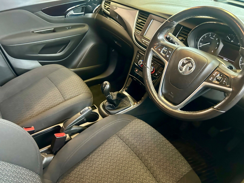 This 2018 Vauxhall Mokka X 1.4i Turbo ecoTEC Active SUV with 49000 miles on the clock is the perfect family vehicle, with 4-5 seats, 5 doors, and a spacious interior. The petrol manual engine is ULEZ compliant and comes with a new MOT and service before collection. This Euro 6 (s/s) vehicle delivers 140 ps and comes with 18in Alloy Wheels in a sleek silver effect. Inside, you'll find modern features such as the 12-Volt Electrical Accessory Socket, R4.0 IntelliLink Touch-Screen Infotainment System, and six powerful speakers. Plus, the 12-Volt Power Outlet Behind Front Seats ensures that everyone stays fully charged on the go. This SUV is the perfect blend of style, comfort, and practicality, making it an ideal choice for any adventure. -volt electrical accessory socket, 12-volt power outlet behind front seats, r4.0 intellilink touch-screen infotainment system, six speakers - four front-two rear, 18in alloy wheels - silver effect, black b-pillars, body colour door mirrors, body side protection mouldings, body-colour door handles, chrome effect front grille bar, electrically operated front windows with safety autoreverse and one-touch facility, electrically operated rear windows, exhaust tailpipes - stainless steel, heated rear screen with timed cut-off, intermittent rear window wash-wipe, laminated windscreen, locking wheel nuts, rear fog light, reversing lights, roof rails - silver effect, skid plates - protective front alloy effect, solar heat absorbing windscreen, tinted windows, twin electrically adjustable - heated - foldable door mirrors - wide-angle on drivers side with automatic timed cut-off, 60-40 split flip and fold rear seat, armrest - drivers, automatically dimming anti-dazzle rear-view mirror, black door panels with black atlantis cloth inserts, black facia, chrome effect interior door handles, drivers internal central locking activation switch, drivers seat - eight-way adjustable, drivers and front passengers illuminated vanity mirrors with flip-up cover, electronic climate control including air conditioning, foldable luggage area cover, four adjustable facia vents, front door pockets, front passengers underseat storage tray, front and rear passengers assist handles, fully carpeted luggage area, height adjustable and removable outer seat head restraints, height-adjustable front seat head restraints, illuminated glovebox with lid, illuminated luggage area, interior courtesy light operated by door switches, rain sensitive windscreen wipers, rake and reach adjustable steering, seats - front passengers 6-way adjustment, side window demist vents, steering wheel - mounted audio controls, steering wheel - three-spoke design - leather covered - satin chrome-effect bezel, storage pocket on front passengers seat back, three person layout, two drinks holders in front centre console, two speed windscreen wipers with variable intermittent wipe, windscreen demist vents, abs - anti-lock braking system, adaptive brake lights, airbag - drivers, airbags - front seat side-impact, burst-proof door locks and anti-jam door design, child proof locks on rear doors, collapsible windscreen wiper system, deactivation switch for front passengers front and side impact airbags, deadlocks, deformation zones front and rear, drivers and front passengers lap belt pretensioner system, ebd - electronic brakeforce distribution, esp - switchable electronic stability programme, electronically protected audio equipment, emergency brake assist, energy absorbing steering column, engine deadlock immobiliser, front body lock diagonal seatbelt pretensioner system, front passenger airbag, front seatbelt force limiters, front and rear seatbelt unfastened warning light, full size curtain airbags for driver - front passenger and outer rear seat passengers, hsa - hill start assist, hazard warning lights, height adjustable front inertia-reel lap and diagonal seatbelts, isofix child seat restraint system for outer rear seats incorporating top tether, one folding key-one static key each with integral remote control function, pedal release system, reinforced passenger safety cell, remote control central locking, remote control security alarm system, side impact protection beams, three inertia-reel lap and diagonal rear seatbelts, upper and lower bumper design, vin - visible vehicle identification number, automatic lighting control, daytime running lights - led, door-to-door illumination, fog lights - front, halogen headlights, headlights - high beam assist, high-level led centre rear brake light, lights on audible warning, manual headlight beam levelling, central facia display, cruise control with speed limiter, driver information display, front and rear parking distance sensors, fuel gauge with low fuel warning light, multi-function trip computer, rev counter, shift up indicator, speed sensitive power assisted steering, speedometer, tpms - tyre pressure monitoring system, water temperature gauge with warning light