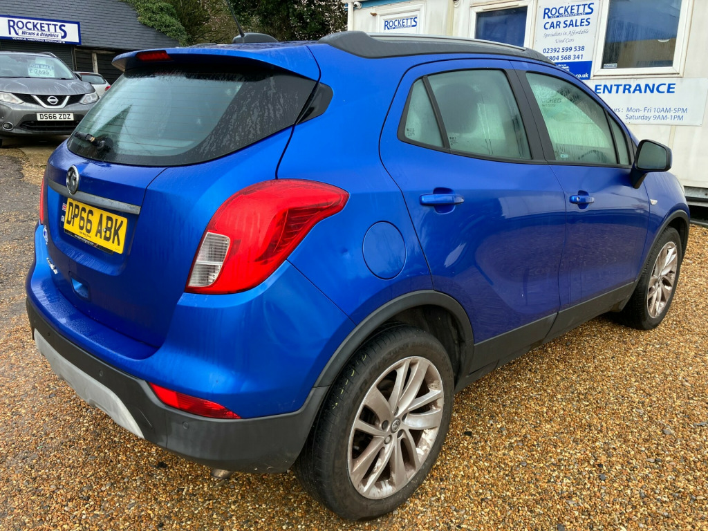 2016 '66' Vauxhall Mokka-X 1.6 ACTIVEFinance available, please call for details.INTERIOR: Black cloth interior. Electric windows. Electric mirrors. Remote central locking. Power steering. Air con. Cruise control. Multiple air bags. Factory radio / cd player. Sat nav. Park assist front and rear.EXTERIOR: Blue paintwork, colour coded bumpers and mirrors. 18'' Vauxhall alloy wheels. Some marks consistent with age.MECHANICALS: 1598cc petrol engine. 5 speed manual gearbox. All running gear good, and the car drives superb. Fresh engine service and cambelt kit etc at 68k.PAPERWORK: HPI clear. Full logbook. Current MOT expires February 2nd 2027. Stamped service book, showing 7 records. All owners manuals in Vauxhall wallet.OVERALL: Brilliant family SUV car. Smart looking. Drives superb. High spec. Fresh full engine service and cambelt kit etc. Full service history. Long MOT., -volt electrical accessory socket, 12-volt power outlet behind front seats, r4.0 intellilink touch-screen infotainment system, speakers - x6, vauxhall onstar, 18in alloy wheels - silver effect, black b-pillars, body colour door mirrors, body side protection mouldings, body-colour door handles, chrome effect front grille bar, electrically operated front windows with safety autoreverse and one-touch facility, electrically operated rear windows, heated rear window, intermittent rear window wash-wipe, laminated windscreen, locking wheel nuts, rear fog light, reversing lights, roof rails - silver effect, skid plates - protective front alloy effect, solar heat absorbing windscreen, tinted windows, twin electrically adjustable - heated - foldable door mirrors - wide-angle on drivers side with automatic timed cut-off, 60-40 split flip and fold rear seat, armrest - front centre, automatically dimming anti-dazzle rear-view mirror, black facia, chrome effect interior door handles, comfort front seats, drivers and front passengers illuminated vanity mirrors with flip-up cover, electronic climate control including air conditioning, foldable luggage area cover, four adjustable facia vents, front door pockets, front passengers underseat storage tray, front and rear passengers assist handles, fully carpeted luggage area, height-adjustable front seat head restraints, height-adjustable and removable outer rear seat head restraints, illuminated glovebox with lid, illuminated luggage area, interior courtesy light operated by door switches, rain sensitive windscreen wipers, rake and reach adjustable steering, side window demist vents, steering wheel - mounted audio controls, steering wheel - three-spoke design - leather covered - satin chrome-effect bezel, storage pocket on front passengers seat back, three person layout, two drinks holders in front centre console, two speed windscreen wipers with variable intermittent wipe, windscreen demist vents, abs - anti-lock braking system, adaptive brake lights, airbag - drivers, burst-proof door locks and anti-jam door design, child proof locks on rear doors, collapsible windscreen wiper system, deactivation switch for front passengers front and side impact airbags, deformation zones front and rear, drivers and front passengers lap belt pretensioner system, ebd - electronic brakeforce distribution, esp - switchable electronic stability programme, electronically protected audio equipment, emergency brake assist, energy absorbing steering column, engine deadlock immobiliser, front body lock diagonal seatbelt pretensioner system, front passenger airbag, front seatbelt force limiters, front and rear seatbelt unfastened warning light, full size curtain airbags for driver - front passenger and outer rear seat passengers, hsa - hill start assist, hazard warning lights, height adjustable inertia-reel lap and diagonal seatbelts, isofix child seat restraint system for outer rear seats incorporating top tether, pedal release system, reinforced passenger safety cell, remote control central locking, remote control security alarm system, side impact protection beams, three inertia-reel lap and diagonal rear seatbelts, upper and lower bumper design, vin - visible vehicle identification number, automatic lighting control, daytime running lights - led, door-to-door illumination, fog lights - front, halogen headlights, headlights - high beam assist, high-level led centre rear brake light, lights on audible warning, manual headlight beam levelling, central facia display, cruise control with speed limiter, driver information display, front and rear parking distance sensors, fuel gauge with low fuel warning light, multi-function trip computer, rev counter, shift up indicator, speed sensitive power assisted steering, speedometer, tpms - tyre pressure monitoring system, water temperature gauge with warning light