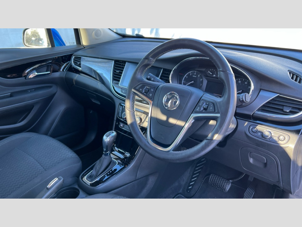 Vauxhall Mokka X 1.4T Design Nav 5dr Auto Cruise control + speed limiter, Digital clock, Front and rear parking sensors, Multi function trip computer, Navi 900 intelliLink sat nav system with aux-in socket, Outside temperature display, Smartphone integration with Apple CarPlay and Android auto, Speed sensitive power steering, Systems with voice recognition, Bluetooth connectivity including audio streaming, DAB radio preparation, USB/iPod connection, 2 speed wipers/wash wipe/intermittent wipe, Automatic lighting control, Body colour door handles, Body colour side mouldings, Electric folding door mirrors, Electric front+rear windows, Electrically adjustable and heated door mirrors, Electrochrome anti dazzle rear view mirror, Front fog lights, Front skid plate, High beam assist, LED daytime running lights, Rain sensitive windscreen wipers, Silver roof rails, Stainless steel exhaust tailpipe, 12V Accessory socket, 12V power socket in rear, 3 spoke leather covered steering wheel, 6 way electric adjustable passenger seat, 60/40 split folding rear seat, 8 way adjustable drivers seat, Chrome interior door handles, Dual zone electronic climate control, Front centre armrest, Front door pockets, Front passenger underseat storage tray, Front seat back storage pockets, Front/rear courtesy lights, Height adjustable front/rear head restraints, Illuminated glovebox, Illuminated vanity mirrors, ISOFIX on outer rear seats, Milano cloth upholstery, Multi function steering wheel, Reach + rake adjustable steering column, 3x3 point rear seatbelts, ABS, Curtain airbags, Driver/Front Passenger airbags, Emergency brake assist, ESP, Front seat side impact airbags, Hill start assist, Seatbelt warning, Traction control, Tyre pressure monitoring system, Immobiliser, Remote central locking, Remote security alarm system