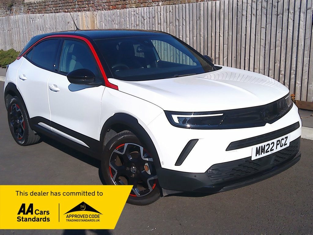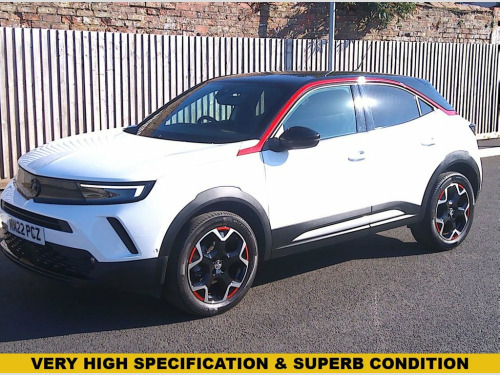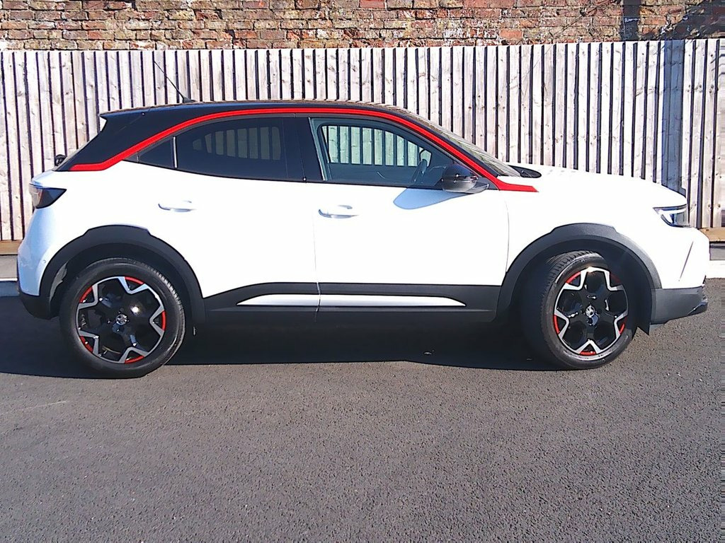 With only one owner and low mileage of just 21,300 and complete with Vauxhall Service History, this high specification Vauxhall Mokka 1.2 Petrol Turbo SRi Premium is a fantastic find. Finished in White with a contrast black roof and Jet Black with Red Accents cloth interior - it looks very stylish. The Elite Premium trim adds a touch of luxury and high specification includes 18" Alloy bi-tone Alloys, Front & Rear Camera and park aids, Satellite Navigation, Apple Carplay with Android Auto, Adaptive Cruise Control, DAB Radio and bluetooth. Enjoy the convenience of keyless entry and start, electronic climate control, and automatic lighting with tunnel detection. The heated front seats and heated steering wheel will keep you cosy on colder days. It is HPI Checked clear, has a handbook pack and service records and two remote locking keys. This Mokka stands out with its impressive fuel economy of 51 mpg, meaning fewer trips to the petrol station and more money in your pocket. It also falls into a low insurance group, offering potential savings on your premiums. Furthermore, its low CO2 emissions mean you'll be contributing to a cleaner environment while enjoying all the benefits this Vauxhall Mokka has to offer. We are happy to take part exchange and guarantee to offer the best price possible for your car. We can also help arrange any finance you may require as we work with leading companies to find the best deal for you. With a simple, straight forward applic White Jade with Contrast Black Roof, Fabric-Leather Effect - Jet Black & , 18in Alloy Wheels - Bi-Colour with Red A, 10in Multimedia Navi Pro with Live Navig, Panoramic Rear View Camera, Front Camera System, Active Drive Assist Plus, Heated Front Seats and Steering Wheel, Adaptive Cruise Control, Electronic Climate Control, Satellite Navigation Display, 12in Digital Instrument Cluster, Automatic Lighting Control with Tunnel D, 2 Rear USB Connections, ABS - Anti-Lock Braking System, 12V Electrical Accessory Socket - Front, Adaptive Brake Lights, Vauxhall Connect, Air Recirculation System, Airbag - Driver, Airbags - Deactivation Switch For Front , Airbags - Front Passenger, Airbags - Front