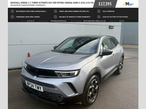 This 2024 Vauxhall Mokka 1.2 Turbo Ultimate SUV 5dr Petrol Manual Euro 6 (s is currently available for £17,395 in Hinckley Leicestershire with Petrol engine and Manual gearbox. For more information or to arrange a viewing, click here to send us an email using form below.
