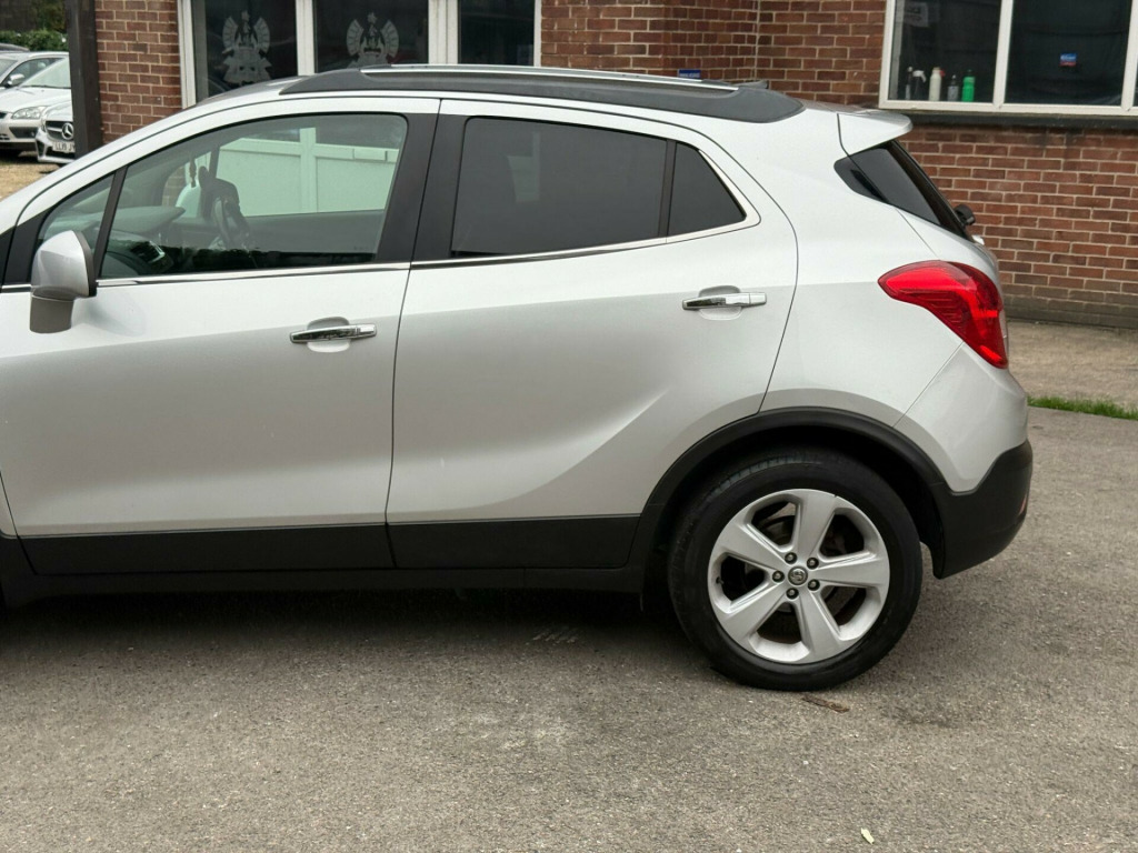 With only 60,000 miles on the clock, this 2014 Vauxhall Mokka offers remarkably low mileage for its age. As a SE trim of the Mokka T SE variant, this model is equipped with a 1.4L petrol engine. Enjoy the ease of parking with rear parking distance sensors, and benefit from automatic lighting control that includes automatic headlights. Stay connected on the go with Bluetooth connectivity, and keep comfortable with front heated seats. The electronic dual-zone climate control ensures a pleasant environment for both driver and passengers.This particular Mokka stands out with its low insurance group, potentially saving you money on your premiums. The combination of features and economical running costs makes this Vauxhall Mokka a practical choice for those seeking comfort and convenience in a compact package. v power socket - centre console, 18in alloy wheels - midnight silver effect, 230v rear power outlet behind front seats - two-pin euro-style socket, 60-40 split-folding rear seat back, abs - anti-lock braking system, adaptive brake lights, air blend heater with six speed fan, air recirculation system, airbag - drivers, airbags - deactivation switch for front passengers, airbags - front passenger, airbags - front seat side-impact, alloy effect door sill covers, armrest - front centre, armrest - rear centre, automatic lighting control, aux in socket, black b-pillars, bluetooth connectivity, body side protection mouldings, burst-proof door locks and anti-jam door design, cbc - cornering brake control, cd player - mp3 compatability and radio, chrome effect highlights on centre console and air vent surrounds, chrome effect interior door handles, chrome effect window trim, climate control - electronic dual zone, collapsible windscreen wiper system, colour keyed fleece velour carpet, cruise control, dab digital radio, dark tinted rear windows, daytime running lights, deformation zones front and rear, descent control system, door handles - exterior - chrome effect, door mirrors - body colour, door mirrors - electrically foldable, door-to-door illumination, drinks holder - rear passengers armrest, drinks holder in centre console, drivers sunglasses holder, drivers and front passengers internal central locking switch, drivers and front passengers lap belt pretensioner system, eba - emergency brake assist, ebd - electronic brakeforce distribution, esp - switchable electronic stability programme, electric windows - front and rear with safety autoreverse and one touch facility, electrochromatic rear view mirror, electronic engine deadlock immobiliser, electronic odometer and trip odometer, electronic theft protection for audio equipment, emergency tyre inflation kit, energy absorbing steering column, exhaust tailpipes - stainless steel, fog lights - front, foldable luggage area cover, folding key, front body lock seatbelt pretensioner system, front parking distance sensors, full length curtain airbags, fully carpeted and illuminated luggage area, gearshift indication light, glovebox - illuminated, glovebox - upper facia, grab handles - front and rear, hsa - hill start assist, head restraints - height adjustable, headlights - high beam assist, heat reflective windscreen, heated rear window, isofix for outer rear seats, inserts - facia and door panels - brushed tungsten effect, instrument panel light dimmer, instruments - black with chrome edging, interior courtesy light operated by door switches, interior pollen filter, laminated windscreen, leather gear knob, leather seat facings, lights on audible warning, locking wheel nuts, low brake fluid level warning light, low density foam near front bumper crossmember, map pockets on front seat backs, multi function display panel, multi-function trip computer, pas - variable power assisted steering, pedal release system, plastic lower front bumper stiffener, rds with traffic programme, rain sensitive windscreen wipers, rear parking distance sensors, reinforced passenger safety cell, remote control central deadlocking, remote control ultrasonic security alarm system, remote display, roof rails - silver effect, seatbelt unfastened warning light for front seats, seatbelt unfastened warning light for rear seats, seats - drivers reach-rake-height adjustment, seats - front electric lumbar adjustment, seats - front ergonomic sports with extendable seat cushions, seats - front heated, side impact protection beams, skid plates - protective front alloy effect, speakers - x6, steering column - adjustable for reach and rake, steering wheel - leather covered and electrically heated, steering wheel - mounted controls for audio, steering wheel - three spoke leather, straight line stability control, sunvisors - twin illuminated vanity mirrors with covers, trc - traction control, tinted glass, twin gas assisted tailgate struts, usb connection with ipod control, welcome lighting, winter pack, leather pack - dark galvanised