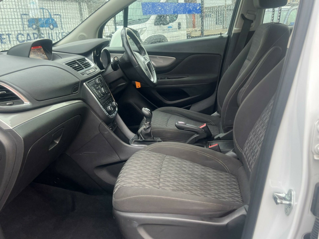 This 2015 Vauxhall Mokka T Tech Line is presented with a clear vehicle history check, offering you peace of mind. This stylish SUV features a 1.4 litre petrol engine and comes in the desirable Tech Line trim. Inside, you'll find comfort and convenience with electronic dual zone climate control and Bluetooth connectivity for seamless phone integration. The Mokka also benefits from automatic lighting control, ensuring your headlights are always on when needed, and front and rear parking distance sensors to assist with manoeuvring.The Vauxhall Mokka T Tech Line stands out with its impressive performance, achieving 0-60mph in just 9.3 seconds. This model also boasts low CO2 emissions and falls into a low insurance group, making it a more economical choice compared to many other vehicles in its class. These factors combined indicate a vehicle that offers a blend of performance, efficiency, and affordability. v power socket - centre console, 18in alloy wheels - sterling silver effect, 230v rear power outlet behind front seats - two-pin euro-style socket, 60-40 split-folding rear seat back, 7in colour monitor, abs - anti-lock braking system, adaptive brake lights, air blend heater with six speed fan, air recirculation system, airbag - drivers, airbags - deactivation switch for front passengers, airbags - front passenger, airbags - front seat side-impact, armrest - front centre, automatic lighting control, aux in socket, black b-pillars, bluetooth connectivity, body side protection mouldings, body-colour door handles, burst-proof door locks and anti-jam door design, cbc - cornering brake control, cd player - mp3 compatability and radio, chrome effect highlights on centre console and air vent surrounds, chrome effect interior door handles, climate control - electronic dual zone, collapsible windscreen wiper system, colour keyed fleece velour carpet, cruise control, dab digital radio, daytime running lights, deformation zones front and rear, descent control system, door mirrors - body colour, door mirrors - electrically foldable, door-to-door illumination, drinks holder in centre console, drivers and front passengers internal central locking switch, drivers and front passengers lap belt pretensioner system, eba - emergency brake assist, ebd - electronic brakeforce distribution, esp - switchable electronic stability programme, electric windows - front and rear with safety autoreverse and one touch facility, electrochromatic rear view mirror, electronic engine deadlock immobiliser, electronic odometer and trip odometer, electronic theft protection for audio equipment, emergency tyre inflation kit, energy absorbing steering column, exhaust tailpipes - stainless steel, fog lights - front, foldable luggage area cover, folding key, front body lock seatbelt pretensioner system, front parking distance sensors, front passengers underseat storage tray, full length curtain airbags, fully carpeted and illuminated luggage area, gearshift indication light, glovebox - illuminated, glovebox - upper facia, grab handles - front and rear, hsa - hill start assist, head restraints - height adjustable, headlights - high beam assist, heat reflective windscreen, heated rear window, isofix for outer rear seats, inserts - facia and door panels - liquid platinum, instrument panel light dimmer, instruments - black with chrome edging, intellilink - touch screen infotainment system, interior courtesy light operated by door switches, interior pollen filter, laminated windscreen, leather gear knob, lights on audible warning, locking wheel nuts, low brake fluid level warning light, low density foam near front bumper crossmember, map pockets on front seat backs, multi function display panel, multi-function trip computer, navigation - navi 950, pas - variable power assisted steering, pedal release system, plastic lower front bumper stiffener, rds with traffic programme, rain sensitive windscreen wipers, rear parking distance sensors, reinforced passenger safety cell, remote control central deadlocking, remote control ultrasonic security alarm system, roof rails - silver effect, sd card slot, seatbelt unfastened warning light for front seats, seatbelt unfastened warning light for rear seats, seats - drivers reach-rake-height adjustment, side impact protection beams, skid plates - protective front alloy effect, speakers - x6, steering column - adjustable for reach and rake, steering wheel - mounted controls for audio, steering wheel - three spoke leather, straight line stability control, sunvisors - twin illuminated vanity mirrors with covers, trc - traction control, tinted glass, twin gas assisted tailgate struts, usb connection with ipod control, welcome lighting