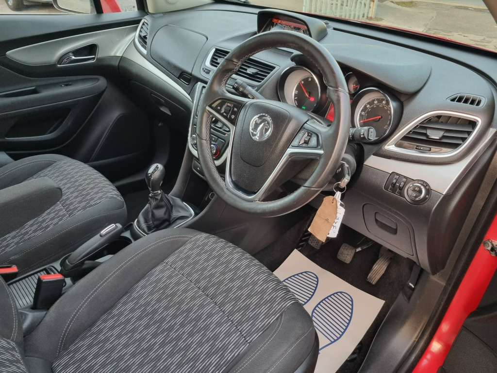 We Are Proud To Present This 2014 Vauxhall Mokka 1.7 CDTI Presented In Red With Complementing Black Cloth Interior. This Amazing Car Includes, Full Service History, 18'' Alloy Wheels, Front And Rear Sensors, £30 Road Tax, High MPG, Electric Folding Mirrors, DAB Radio, Automatic Daytime Running Lights, Cruise Control, Air Conditioning, CD Player With AUX And USB Connectivity, 6 Speed Manual Gearbox And Multifunction Leather Steering Wheel. Do Not Miss This Stunning Example, Reserve This Vehicle Now For £100,FCA Approved Garage, TOP PRICE PAID ON PART EXCHANGE, BUY WITH CONFIDENCE. v power socket - centre console, 20 watts per channel output, 7in colour monitor, audio streaming, aux in socket, bluetooth connectivity, cd player - mp3 compatability and radio, dab digital radio, intellilink - touch screen infotainment system, multi function display panel, navi 950 intellilink, rds with traffic programme, radio - am-fm with 36 station presets, satellite navigation, speakers - x6, street level mapping - uk and ireland, usb connection with ipod control, 18in alloy wheels - sterling silver effect, black b-pillars, body side protection mouldings, body-colour door handles, door mirror - driver side - wide-angle, door mirrors - body colour, door mirrors - electrically foldable, electric windows - front and rear with safety autoreverse and one touch facility, electro-chromatic anti-dazzle drivers door mirror, emergency tyre inflation kit, exhaust tailpipes - stainless steel, heat reflective windscreen, heated rear window with automatic timed cut-off, laminated windscreen, locking wheel nuts, plastic lower front bumper stiffener, roof rails - silver effect, skid plates - protective front alloy effect, tinted glass, 230v rear power outlet behind front seats - two-pin euro-style socket, 60-40 split-folding rear seat back, air blend heater with six speed fan, air recirculation system, armrest - front centre, chrome effect highlights on centre console and air vent surrounds, chrome effect interior door handles, climate control - electronic dual zone, colour keyed fleece velour carpet, drinks holder in centre console, electrochromatic rear view mirror, foldable luggage area cover, front door pockets, front passengers underseat storage tray, front seat back map pockets - passenger, fully carpeted luggage area, glovebox - illuminated, glovebox - upper facia, grab handles - front and rear, head restraint - height adjustable outer rear seat, height-adjustable front seat head restraints, illuminated luggage area, inserts - facia and door panels - liquid platinum, instrument panel light dimmer, instruments - black with chrome edging, interior courtesy light operated by door switches, interior pollen filter, leather gear knob, rain sensitive windscreen wipers, seats - drivers reach-rake-height adjustment, steering column - adjustable for reach and rake, steering wheel - mounted controls for audio, steering wheel - three spoke leather, sunvisors - twin illuminated vanity mirrors with covers, twin gas assisted tailgate struts, welcome lighting, abs - anti-lock braking system, adaptive brake lights, airbag - drivers, airbags - deactivation switch for front passengers, airbags - front curtain, airbags - front passenger, airbags - front seat side-impact, airbags - rear curtain, burst-proof door locks and anti-jam door design, cbc - cornering brake control, collapsible windscreen wiper system, deadlocks, deformation zones front and rear, drivers and front passengers internal central locking switch, drivers and front passengers lap belt pretensioner system, eba - emergency brake assist, ebd - electronic brakeforce distribution, esp - switchable electronic stability programme, electronic engine deadlock immobiliser, electronic theft protection for audio equipment, energy absorbing steering column, folding key, front body lock seatbelt pretensioner system, isofix child seat restraint system for outer rear seats incorporating top tether, low density foam near front bumper crossmember, pedal release system, reinforced passenger safety cell, remote control central deadlocking, remote control ultrasonic security alarm system, seatbelt unfastened warning light for front seats, seatbelt unfastened warning light for rear seats, side impact protection beams, straight line stability control, trc - traction control, automatic lighting control, daytime running lights, door-to-door illumination, fog lights - front, headlights - high beam assist, lights on audible warning, cruise control, electronic odometer and trip odometer, enhanced driver information centre with ecoflex drive assist, exterior temperature sensor, front parking distance sensors, multi-function trip computer, rear parking distance sensors, speed sensitive power assisted steering, tyre pressure monitoring system