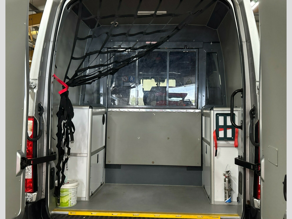 v accessory socket beside gear lever, cd 16 bt usb, roof-mounted flexible aerial, 16in steel wheels, body side protection mouldings, bumpers - integral steps in front, electric windows - front, laminated windscreen, manually foldable electrically adjustable-heated door mirrors, side repeater in exterior mirrors, twin reversing lights, 185a alternator, 95ah maintenance free battery, central facia display, coolant temperature gauge with warning light, digital fuel gauge with low fuel level warning light, driver information display, front suspension - macpherson type, nearside blind spot-junction mirror located in front passenger sun visor, power assisted steering, rear suspension - tubular axle, rev counter, shift up indicator, speedometer, warning indicators, abs - anti-lock braking system, airbag - drivers, ebd - electronic brakeforce distribution, esp - electronic stability programme plus, electronic engine deadlock immobiliser, emergency brake assist, floor mounted handbrake lever, hazard warning lights, height adjustable outer front seatbelts, hill start assist, inertia-reel lap and diagonal seatbelts, internal lockable rear and sliding side access doors, rear fog lights, remote control central door locking, secure fuel filler flap, steering column lock, automatic lighting control with tunnel detection, centre rear brake light, lights on audible warning, manual headlight beam levelling, bulkhead - full height steel without window, central drinks holder - facia, drivers coin-ticket and card holder, drivers oddments storage, electric screenwash, facia mounted gear lever, fixed floor-mounted load restraint lashing eyes x8, four adjustable facia vents, four-speed fan, front door pockets, front passenger semi covered document tray, glovebox - lidded, illuminated controls, illuminated load area, nearside sliding side access door, nearside-offside rear door column load restraint lashing eyes, overhead storage shelf, rain sensitive windscreen wipers, seats - drivers height adjustment, seats - dual front passengers bench, side window demist vents, steering column mounted audio controls, steering wheel - height adjustable, twin solid rear doors - 90-180 degree opening, under-floor spare wheel storage, vinyl floor covering, windscreen demist vents