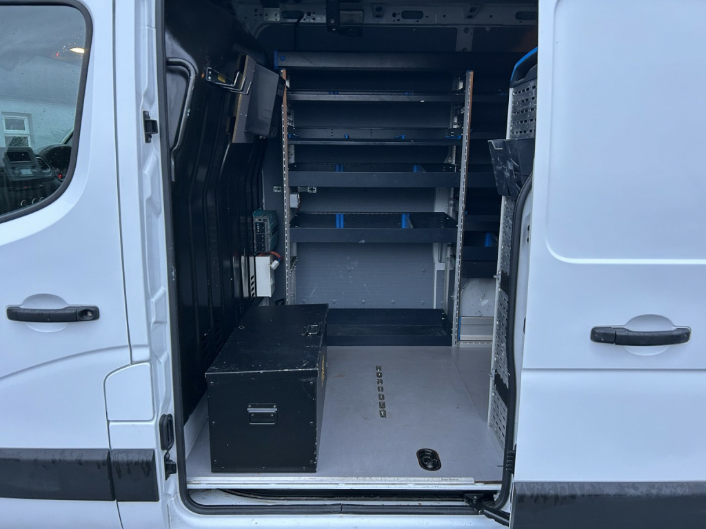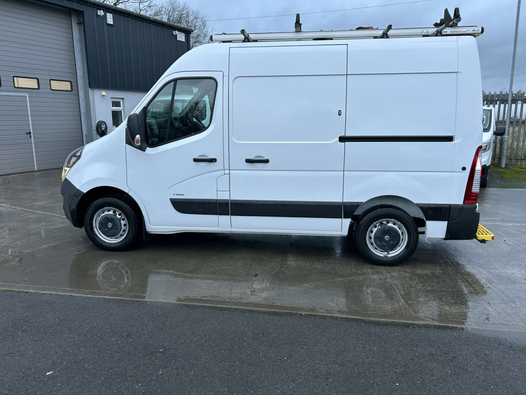 Vauxhall Movano 2.3 CDTi 3500 L1H2 SWB Medium ROOF BiTurbo Edition finished in White (Manual), 43200 miles, 1 Lease Company Owner, Service History, FWD 135bhp, Euro 6, L1H2 Short wheelbase Medium Roof, Side Loading Doors, Rear Racking, PAS, Service indicator, Trip computer, Radio, Bluetooth Handsfree, Full size spare wheel, Front electric windows, ABS, Drivers airbag, Remote central locking, Cloth seat trim,Rear lined, bulkhead, Roof Rack