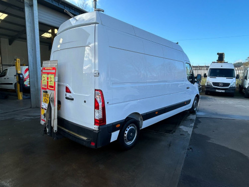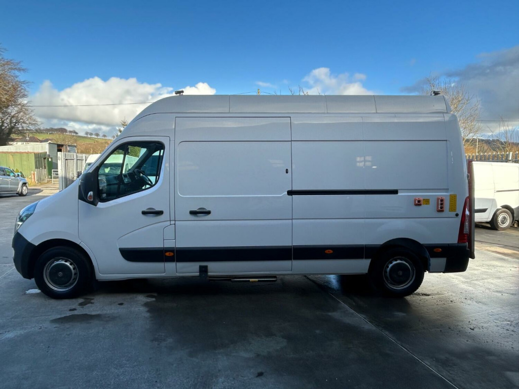 Vauxhall Movano 2.3 CDTi 3500 L3H3 LWB HIGH ROOF BiTurbo Edition Tail Lift finished in White (Manual), 51850 miles, 1 Lease Company Owner, Service History, Rear Tail Lift, FWD 135bhp, Euro 6, L3H3 Long wheelbase High Roof, Side Loading Doors, Rear Racking, Air Conditioning, Cruise Control, Rear Camera, PAS, Service indicator, Trip computer, Radio, Bluetooth Handsfree, Full size spare wheel, Front electric windows, ABS, Drivers airbag, Remote central locking, Cloth seat trim,Rear lined, bulkhead,