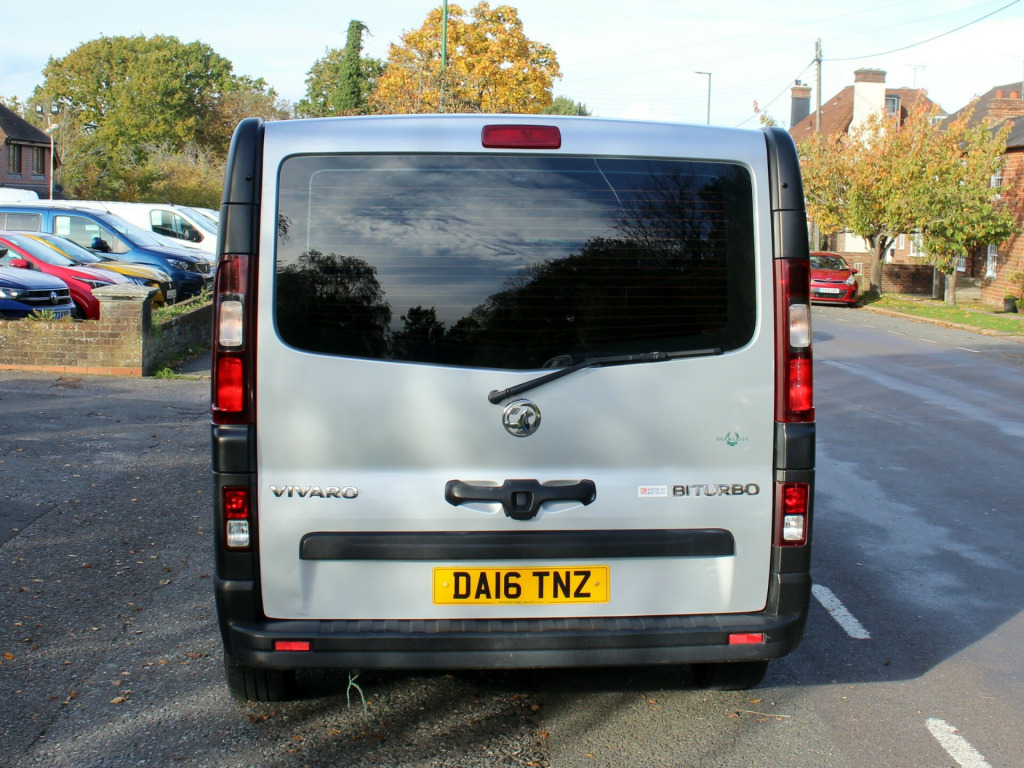 Introducing the 2016 Vauxhall Vivaro 1.6 CDTi 2900 BiTurbo ecoFLEX Combi Van, with a powerful diesel engine and a mileage of only 76570 miles. This spacious 9 seater, 5 door vehicle is perfect for transporting passengers or cargo, and with a gross weight of 3020kg, it's up for any challenge. Not only is it ULEZ compliant, but it also comes with a valid MOT until 23/05/2026. Featuring a double cab, this versatile van is equipped with modern amenities such as 12V power sockets, R 16 BT USB, and electrically adjustable heated door mirrors. With its Euro 6 (s/s) engine producing 125 ps, this reliable Combi Van is a practical and efficient choice for any business or personal use. Don't miss out on this opportunity to own a top-quality commercial vehicle., OPEN 7 DAYS A WEEK - A SELECTION OF UP TO 200 CARS AND VANS AVAILABLE. Click on dealer 'VISIT WEBSITE' link for many more large photographs of this car. We are a West Sussex Trading Standards Approved 'Buy with Confidence Dealership'. v power socket, 12v power socket - load area, r 16 bt usb, 16in steel wheels, door mirrors - electrically adjustable-heated, electric windows - front, fixed side windows fitted to nearside and offside sliding doors, full glazing, full size spare wheel, glazed tailgate with heated window and wiper, laminated windscreen, rear fog light, tinted glass, abs - anti lock brakes, airbag - drivers, airbags - front passenger, airbags - passenger deactivation, alarm pre-installation kit, deadlocks, driver and passenger seatbelt force limiters, eba - emergency brake assist, ebd - electronic brakeforce distribution, esp - electronic stability programme plus, electronic engine deadlock immobiliser, electronic theft protection for audio equipment, height adjustable outer front seatbelts, isofix child seat restraint system on outer second-row seats, inertia-reel lap and diagonal seatbelts, pyrotechnic front body lock seatbelt pretensioner system, remote central locking, seatbelt unfastened audible warning and warning light, side impact protection beams, traction control, air blend heater with four speed fan, air recirculation system, anti-submarining ramps in front seats, armrest - doors, armrest - drivers, bulkhead-mounted coat hooks x3, drinks holder - facia mounted, extensive facia storage, facia mounted gear lever, fade down cabin area courtesy light, fold and tumble facility for third-row bench seat, four adjustable face-level heating and ventilation outlets, front door pockets with bottle holder, glovebox - illuminated, half-height interior saloon panelling, half-height sidewall trim with storage pocket, head restraint - drivers active-safety, head restraints - height adjustable padded, headlining - full length soft trimmed, load compartment - half height plastic load lining panels, load compartment - illumination, load lashing eyes in load floor x10, nearside and offside sliding side access doors - glazed, open storage compartment above glovebox, rake and reach adjustable steering, rubber floor covering, seats - drivers 6-way manual adjustment, seats - drivers height adjustment, seats - drivers lumbar adjustment, seats - dual front passengers bench, seats - rear split folding 60-40, seats - three passenger rear bench, seats - three passenger third-row bench, steering wheel - mounted controls for audio, twin sunvisors - front passengers with wide-angle blind spot mirror, two speed windscreen wipers with variable intermittent wipe, vinyl floor covering in cabin area, windscreen and front side window demist vents, daytime running lights, electric headlight beam levelling, high level brake light, lights on audible warning, digital clock with automatic rds time adjustment, eco mode facility, engine oil level indicator, exterior temperature gauge, fuel gauge with low fuel warning light, key left in ignition audible warning, multi-function trip computer, power assisted steering, rev counter, service-due indicator, tpms - tyre pressure monitoring system, trip odometer