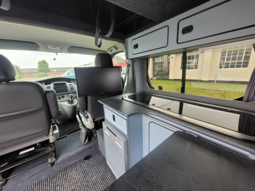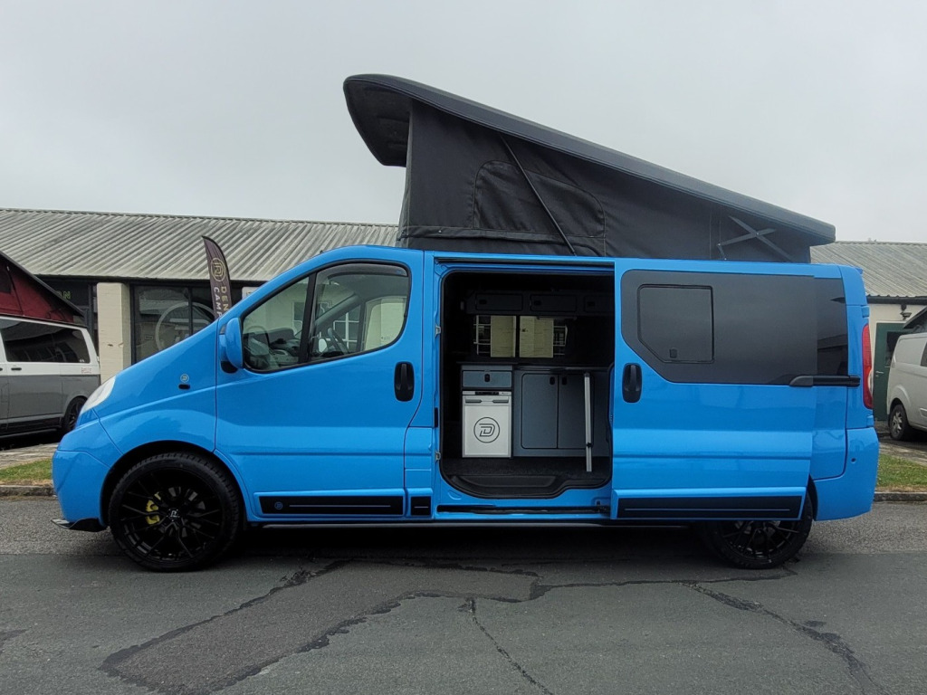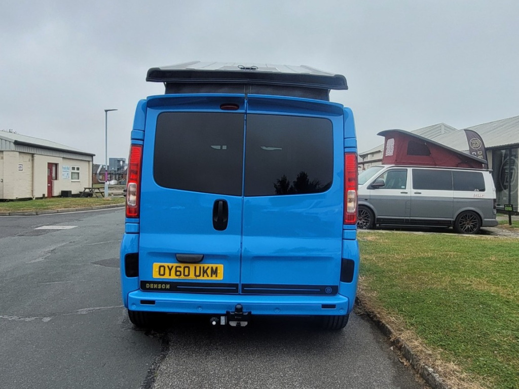 Only 106,000 miles on the clock, Air Conditioning, Parking Sensors, Electric Windows , Diesel Heater ,Solar panel , DAB Head unit, T.V and Rear Barn Doors.Having fully restored body work and colour coded bumpers, spoilers and mirrors, this Vivaro is a stunning example of a 4 berth Denson campervan. Take a look at interior pictures.With 5 previous registered keepers and 2 sets of keys, this powerful 2.0 CTDI can be converted quickly, all ready to take you on your next unforgettable journey.Excellent 1st campervan . Amazing value !! v/240v fridge, 12v/240v power sockets & usb, bonnet stone protection, colour coded bumpers, denson graphics & cab mats, diesel heater, double gas hob & smev sink, premium kitchen & soft close doors, privacy glass all round, quilted leather cab & rear seating, rock & roll bed with seat belts, scenic pop top roof, side bars, solar panel, towbar, 16'' Steel