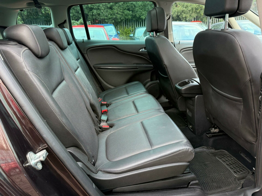 This 2017 Vauxhall Zafira Tourer i Turbo Elite Nav offers a versatile and comfortable experience for up to seven occupants. Powered by a 1.4 litre petrol engine, this Euro 6 compliant model combines practicality with a refined Elite Nav trim. Key features include the Sight and Light Pack, which provides automatic headlights, and the Leather Pack, offering the added comfort of heated seats. Enjoy an open and airy cabin thanks to the panoramic windscreen and fixed panoramic sunroof. Manoeuvring is made easier with front and rear parking distance sensors, complemented by automatic lighting control with tunnel detection and digital high beam assist.The Zafira Tourer i Turbo Elite Nav excels with its responsive performance, achieving 0 to 60 miles per hour in just 9.9 seconds. This indicates a more engaging driving experience compared to many vehicles in its class. The combination of its spacious seven seat layout, advanced lighting systems, and convenient parking aids makes this Vauxhall Zafira Tourer a well equipped and practical choice for families and individuals alike. ena leather - jet black with jet black morracana-trimmed side bolsters, 12-volt electrical accessory socket within front and rear centre console, 18in alloy wheels - 10-spoke, 35-30-35 split folding 2nd row seats, abs - anti-lock braking system, adaptive brake lights, ambient led lighting in facia and front doors, ambient lighting - led facia-centre console downlighter, anti-submarining ramps in front seats, automatic lighting control with tunnel detection and digital high beam assist, automatically dimming anti-dazzle rear-view mirror, black door panels with black leather-effect inserts, black facia with ruthenium trim inserts, black trim on door pillars, body colour door mirrors, body-colour door handles, bonnet - headlight - wiper structure, burst-proof door locks and anti-jam door design, cbc - cornering brake control, central facia display, central front courtesy light, central rear courtesy light, child proof locks on rear doors, chrome effect headlights, chrome effect interior door handles, chrome effect side window mouldings, chrome-effect front grille bar, cruise control with speed limiter, dark style tail lights, dark tinted rear windows, deactivation switch for front passengers airbag, deformation zones front and rear, door-to-door illumination, drag torque control, driver information display, drivers airbag, drivers and front passengers lap belt pretensioner system, drivers and front passengers sunvisors incorporating illuminated vanity mirrors with covers, ebd - electronic brakeforce distribution, esp - electronic stability programme, electric headlight beam levelling, electric parking brake incorporating hill start assist, electrically operated front and rear windows with safety autoreverse and one-touch facility, electronic climate control including air conditioning, electronic engine deadlock immobiliser, electronically protected audio equipment, ellipsoid headlights, emergency brake assist, energy absorbing steering column, ergonomic drivers sport style seat - agr-approved with sports-style front passenger seat, fade up-fade down courtesy lights, fading brake support, first and second row reading lights with illuminated switches, five lap and diagonal inertia-reel seatbelts, flexrail centre console system featuring aluminium rails-sliding tray-cup holder and front centre armrest, four adjustable facia vents, four load restraint lashing eyes, freewheeling door locks, front body lock diagonal seatbelt pretensioner system, front door pockets, front fog lights, front passenger airbag, front passengers underseat storage facility, front seatbelt force limiters, front and rear parking distance sensors, fuel gauge with low fuel warning light, full size curtain airbags for driver - front passenger and outer rear seat passengers, fully carpeted load area, glovebox with lid, hazard warning lights, heated rear screen with automatic timed cut-off, heated rear window, height adjustable front and outer rear seats head restraints, height-adjustable active-safety front seat head restraints, height-adjustable and removable head restraints - second and third row seats, high-level led centre rear brake light, isofix child seat mountings incorporating top tether anchor points located on outer rear seats, illuminated glove box and luggage area, interior tailgate handle, intermittent rear window wash-wipe, key left in ignition audible warning, led daytime running lights, laminated windscreen, leather pack, lights on audible warning, locking wheel bolts for alloy wheels, lounge seating, luggage compartment - cover, manually foldable door mirrors, multi-function trip computer, navi 950 intellilink touchscreen navigation and infotainment system, panoramic windscreen and panoramic sunroof, pedal release system, rain sensitive windscreen wipers, rake and reach adjustable steering, rear door pockets, rear fog light, reinforced passenger safety cell, remote control central locking, remote control ultrasonic security alarm system, rev counter, reversing lights, rollover mitigation, ruthenium trim inserts on front doors, seat comfort pack one, second-row seats with sliding function plus fold-flat facility, shift - up-down indication light, side impact protection beams, side repeat indicators, side window demist vents, sight and light pack, silver air vent surrounds, solar heat absorbing windscreen, speakers - x6, speed sensitive electrically assisted power steering, speedometer, steering wheel - mounted audio controls, steering wheel - three-spoke design - leather covered with accent stitching - satin chrome-effect bezel, storage box on drivers side lower facia, storage pockets on front seat backs, straight line stability control, tpms - tyre pressure monitoring system, third row central storage facility with two cup holders, third row passenger compartment reading lights, third-row lap and diagonal inertia-reel seatbelts, tinted windows