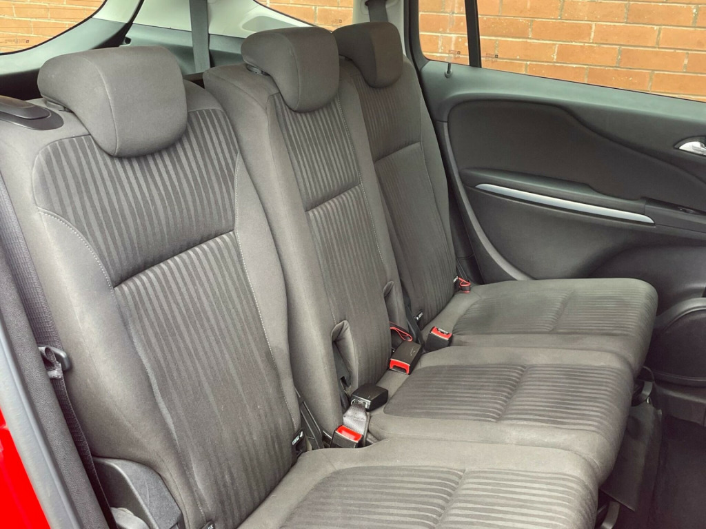 This 2015 Vauxhall Zafira Tourer i Turbo Exclusiv is a well maintained example, having had only two owners from new and boasting a clear vehicle history check. As a Euro 6 compliant model, it features a 1.4 litre petrol engine and offers flexible seating for seven passengers. The Exclusiv trim level comes equipped with convenient rear parking sensors, including rear parking assistance, and front parking sensors with front parking assistance, alongside air conditioning to ensure a comfortable driving experience.The Zafira Tourer i Turbo Exclusiv demonstrates strong performance with an acceleration of 0 to 60 miles per hour in just 9.9 seconds. This performance, combined with its practical seven seat layout and the inclusion of front and rear parking sensors, sets it apart from many other vehicles in its class, offering enhanced ease of use and a more capable driving experience for families and individuals alike., v power socket - front, 12v power socket - rear, 17in steel wheels - structure, 20 watts per channel output, 35-30-35 split folding 2nd row seats, abs - anti-lock braking system, adaptive brake lights, air blend heater with six speed fan, air conditioning, airbags - curtain, airbags - front side, airbags - passenger deactivation, ambient lighting - roof, anti-submarining ramps in front seats, armrest - front centre with storage, aux in socket, black trim on door pillars, brake fade assist - hydraulic, brake light - led centre, brake lights - adaptive, bumpers - plastic lower front stiffener, burst-proof door locks and anti-jam door design, cbc - cornering brake control, carpeted passenger compartment, centre storage with two cup holders, chrome effect headlights, cruise control, dab - digital radio, dark style tail lights, daytime running lights, deformation zones front and rear, door handles - body coloured, door handles - interior - chrome effect, door mirrors - body coloured, door mirrors - electric - heated, driver and passenger seatbelt force limiters, drivers airbag, drivers internal central locking switch, drivers and front passengers lap belt pretensioner system, ebd - electronic brakeforce distribution, esp - electronic stability programme plus, electric windows - front and rear, electronic engine deadlock immobiliser, electronic theft protection for audio equipment, ellipsoid headlights, emergency brake assist, emergency tyre inflation kit, flex7 seating system, freewheeling door locks, front body lock seatbelt pretensioner system, front door pockets, front fog lights, front passenger airbag, fully carpeted luggage area, glovebox - illuminated, grille surround - chrome effect upper, handbrake on - low brake fluid level - low fuel level warning lights, head restraints - active safety front seats, headlights - electric beam levelling, heated rear window with automatic timed cut-off, height-adjustable front and rear seat head restraints, isofix child seat restraint system for outer rear seats incorporating top tether, illuminated luggage area, instrument panel light dimmer, instruments - black with chrome edging, interior courtesy light operated by door switches, key left in ignition audible warning, laminated windscreen, lights on audible warning, load restraint lashing eyes, low density foam near front bumper crossmember, luggage compartment - illumination, luggage compartment cover, map lights - front, multi function display panel - time date and exterior temperature, multi-pivot bonnet hinges, parking sensors - front, parking sensors - rear, pedal release system, pollen filter, power assisted steering, rds with traffic programme, radio - am-fm with 36 station presets, radio - cd player mp3 player - cd400+, rake and reach adjustable steering, reading lights - front, reading lights - rear, reinforced passenger safety cell, remote control central deadlocking, roof rails - black, seatbelt unfastened warning light for front seats, seats - 2nd row fold flat, seats - 3rd row fold flat, seats - drivers height adjustment, seats - front passenger with reach-recline adjustment, service interval monitor, side impact protection beams, side window demist air vents and adjustable face-level air vents, speakers - x6, steering column - energy absorbing, steering wheel - mounted audio controls, steering wheel - three spoke-chrome bezelled, storage - 3rd row central facility with two cup holders, storage - box on lower facia, storage box on drivers side lower facia, storage pockets on front seat backs, straight line stability control, sunvisors - twin with covered illuminated vanity mirrors, suspension - lightweight macpherson front strut, suspension - rear semi independent-watts link-gas pressure dampers, tinted glass, traction control, trip computer - multi-function, tyre pressure monitoring system, usb connection with ipod control, wipers - collapsible windscreen system