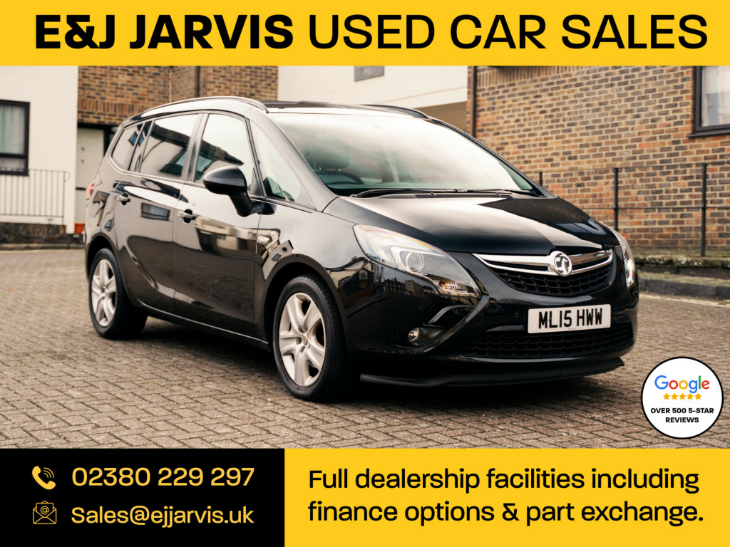 This 2015 Vauxhall Zafira Tourer 1.4i Turbo Exclusiv MPV has covered 58500 miles from new and comes with a full service history. This spacious 7-seater is perfect for transporting all the family and offers plenty of space and comfort. The car is ULEZ friendly too. E&J Jarvis have been selling cars in Southampton since 1947 and offer full dealership facilities. See our 500+ 5-star Google reviews., v power socket - front, 12v power socket - rear, 20 watts per channel output, aux in socket, dab - digital radio, rds with traffic programme, radio - am-fm with 36 station presets, radio - cd player mp3 player - cd400+, speakers - x6, usb connection with ipod control, 17in steel wheels - structure, black trim on door pillars, bumpers - plastic lower front stiffener, chrome effect headlights, dark style tail lights, door handles - body coloured, door mirrors - body coloured, door mirrors - electric - heated, electric windows - front and rear, ellipsoid headlights, emergency tyre inflation kit, grille surround - chrome effect upper, heated rear window with automatic timed cut-off, laminated windscreen, roof rails - black, tinted glass, 35-30-35 split folding 2nd row seats, air blend heater with six speed fan, air conditioning, ambient lighting - roof, anti-submarining ramps in front seats, armrest - front centre with storage, carpeted passenger compartment, centre storage with two cup holders, door handles - interior - chrome effect, flex7 seating system, front door pockets, fully carpeted luggage area, glovebox - illuminated, head restraints - active safety front seats, height-adjustable front and rear seat head restraints, illuminated luggage area, instrument panel light dimmer, instruments - translucent with chrome edging, interior courtesy light operated by door switches, load restraint lashing eyes, luggage compartment - illumination, luggage compartment cover, map lights - front, pollen filter, rake and reach adjustable steering, reading lights - front, reading lights - rear, seats - 2nd row fold flat, seats - 3rd row fold flat, seats - drivers height adjustment, seats - front passenger with reach-recline adjustment, side window demist air vents and adjustable face-level air vents, steering wheel - mounted audio controls, steering wheel - three spoke-chrome bezelled, storage - 3rd row central facility with two cup holders, storage box on drivers side lower facia, storage pockets on front seat backs, sunvisors - twin with covered illuminated vanity mirrors, abs - anti-lock braking system, adaptive brake lights, airbags - curtain, airbags - front side, airbags - passenger deactivation, brake fade assist - hydraulic, brake lights - adaptive, burst-proof door locks and anti-jam door design, cbc - cornering brake control, deformation zones front and rear, driver and passenger seatbelt force limiters, drivers airbag, drivers internal central locking switch, drivers and front passengers lap belt pretensioner system, ebd - electronic brakeforce distribution, esp - electronic stability programme plus, electronic engine deadlock immobiliser, electronic theft protection for audio equipment, emergency brake assist, freewheeling door locks, front body lock seatbelt pretensioner system, front passenger airbag, isofix child seat restraint system for outer rear seats incorporating top tether, key left in ignition audible warning, low density foam near front bumper crossmember, multi-pivot bonnet hinges, pedal release system, reinforced passenger safety cell, remote control central deadlocking, seatbelt unfastened warning light for front seats, side impact protection beams, steering column - energy absorbing, straight line stability control, traction control, wipers - collapsible windscreen system, brake light - led centre, daytime running lights, front fog lights, headlights - electric beam levelling, lights on audible warning, cruise control, handbrake on - low brake fluid level - low fuel level warning lights, multi function display panel - time date and exterior temperature, parking sensors - front, parking sensors - rear, power assisted steering, service interval monitor, suspension - lightweight macpherson front strut, suspension - rear semi independent-watts link-gas pressure dampers, trip computer - multi-function, tyre pressure monitoring system