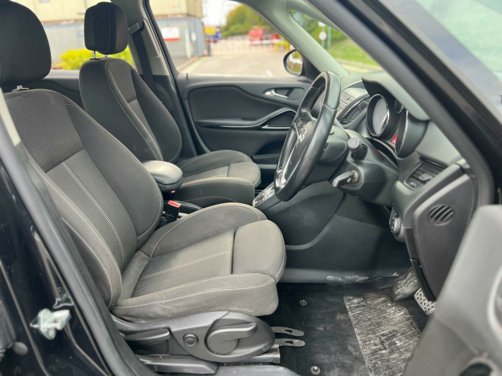 2014 Vauxhall Zafira 2.0 diesel finished in black. v power socket - front, 12v power socket - rear, 18in alloy wheels - 5 twin spoke, 35-30-35 split folding 2nd row seats, abs - anti lock brakes, aux connection, air blend heater with six speed fan, air conditioning, airbags - curtain, airbags - front side, airbags - passenger, airbags - passenger deactivation, alarm - remote control ultrasonic, ambient lighting - roof, armrest - front centre with storage, brake fade assist - hydraulic, brake light - led centre, brake lights - adaptive, cbc - cornering brake control, centre storage with two cup holders, cruise control, dab - digital radio, daytime running lights, door handles - body coloured, door mirrors - body coloured, door mirrors - electric - heated, drivers airbag, ebd - electronic brakeforce distribution, esp plus - electronic stability programme, electric windows - front, electric windows - rear, emergency brake assist, flex7 seating system, front door pockets, front fog lights, front passengers underseat storage, glovebox - illuminated, headlights - dark style, headlights - electric beam levelling, height-adjustable front seat head restraints, isofix - outer rear seats, instruments - light dimmer, instruments - translucent with chrome edging, key left in ignition audible warning, load restraining eyes, locking wheel nuts, luggage compartment - illumination, luggage compartment cover, map lights - front, multifunction display, parking sensors - front, parking sensors - rear, pedal release system, pollen filter, power assisted steering, rds - radio data-traffic system, radio - cd player mp3 player - cd400, rake and reach adjustable steering, rear roof spoiler, remote control central deadlocking, roof rails - silver effect, seat comfort pack one, seats - 2nd row fold flat, seats - 3rd row fold flat, seats - 4-way electric lumbar adjustment, seats - drivers 6-way manual adjustment, seats - sports front, speakers - x6, sports pedals, steering column - energy absorbing, steering wheel - mounted audio controls, steering wheel - three spoke-sports-leather-flat bottomed, storage - 3rd row central facility with two cup holders, storage - box on lower facia, storage pockets on front seat backs, straight line stability control, sunvisors - twin with covered illuminated vanity mirrors, suspension - lowered sports, traction control, trailer stability programme, trip computer - multi-function, tyre inflation kit, usb connection with ipod control, windows - dark tinted rear, windows - tinted, wipers - collapsible windscreen system