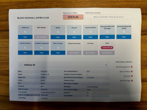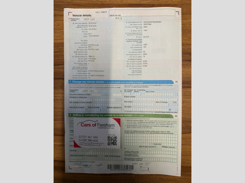This 2007 Vauxhall Zafira 1.6 Club 5dr - 7 SEATER MPV is currently available for £1,500 in Fareham Hampshire with Petrol engine and Manual gearbox. For more information or to arrange a viewing, click here to send us an email using form below.