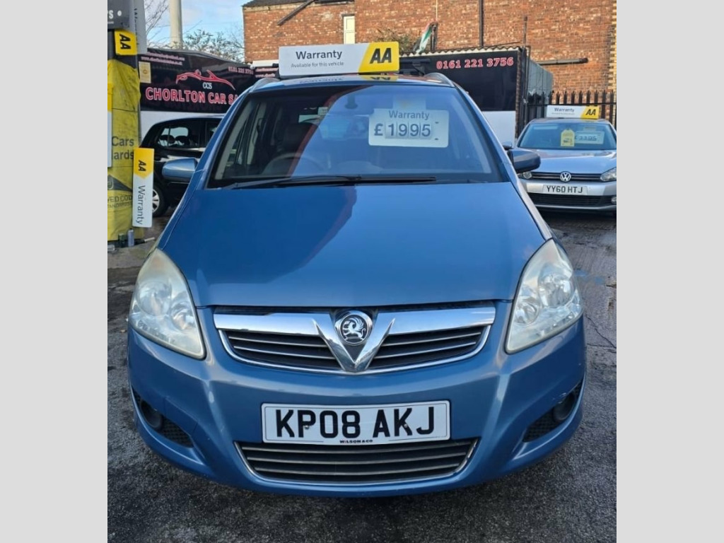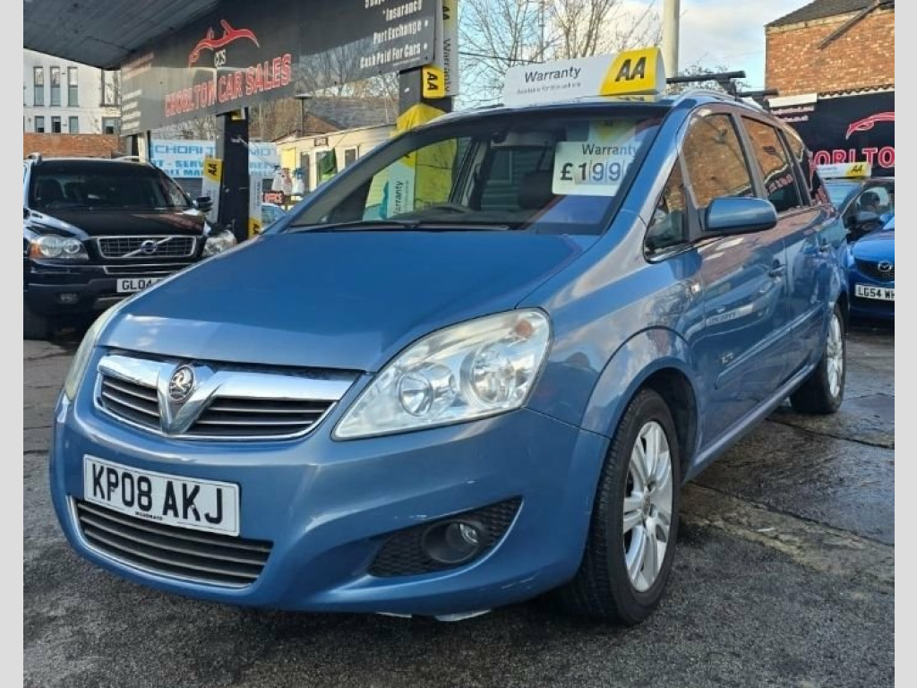 Here we have for sale a lovely 2008 vauxhall zafira elite in a lovely mettalic blue complimented by a full black leather interior. It is the strong 1.8L petrol engine which is great for new or first drivers as they are cheap to insure and very economical to run. It has covered very low mileage for its age of just over 82000 miles backed by some service history. It is only 2OWNERS from brand new and this is reflected in the condition of the car. It will come with a full 12month mot with no advisories and a full service from ourselves upon purchase. Very clean car both cosmetically and mechanically. First to see will buy. Here at chorlton car sales we strive to deliver 100% customer satisfaction to all our customers therefore we offer a full 3month aa warranty for complete piece of mind. Extended warranty is available by the reputable aa warranties for up to 12months as we are approved dealers for them. They are the uks number one warranty company. We are now proudly part of the aa dealer promise as aa approved dealers which means you can buy through us with complete confidence. Delivery available. 5day driveaway insurance available.12month aa breakdown cover with all vehicles. All major cards accepted. All forms of payment accepted. Open 7days a week. Remote ultrasonic alarm System, Vertical load restraining net, Full size spare Wheel, Electric folding door mirrors, 12V Power Outlet- Luggage area, CD30 stereo Radio & CD & MP3 pla, CD30 stereo Radio & CD & MP3 pla, Driver sunGlasses holder, Halogen Headlights, Silver RoofRails, Tyre Repair kit