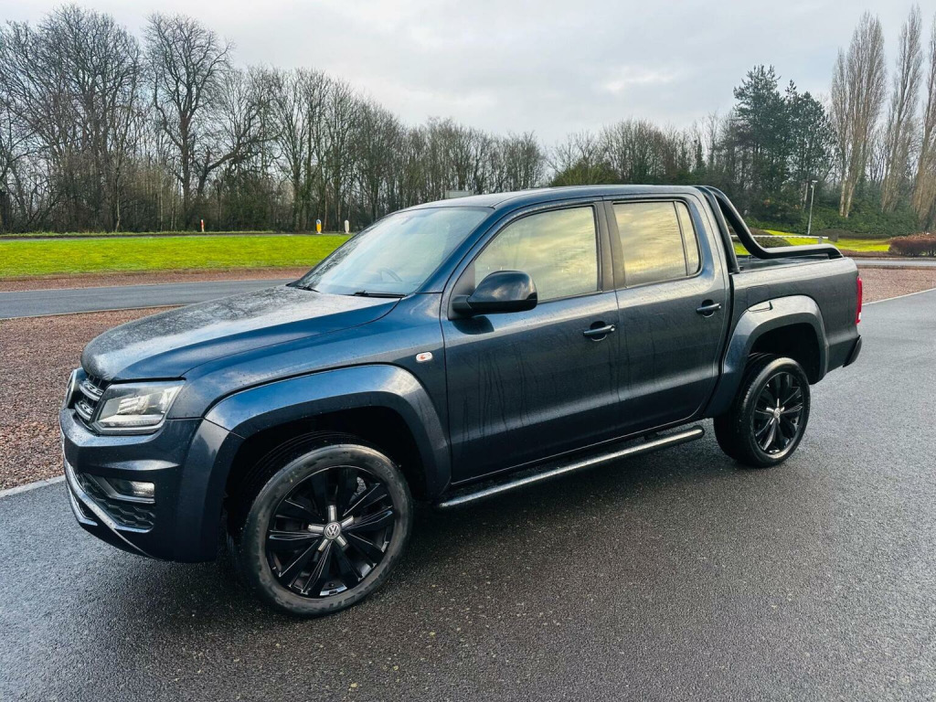 Chancery Motor Group are excited to offer this top of the range Volkswagen Amarok 3.0 TDi V6 Black Edition 4Motion Auto presented in Starlight Blue Metallic with Grey Two Tone Leather Interior - A Stunning Colour Combination. Purchased locally from a Company Director, this Amarok Black Edition is complimented with FULL VOLKSWAGEN SERVICE HISTORY and has covered motorway miles only on a regular commute to Scotland from South Wales. Full documented History, all invoices etc present. The Black Edition offers a fantastic specification to include Sat Nav, Bluetooth, Leather Heated Seats, Reverse Camera, Black Edition Styling, 20 Black Alloy Wheels ++ Roll n Lock Cover included also (£1250 Extra). Full Original Book Pack + 2 Keys. We are confident you will not find a better example anywhere at this money for such a rare model. Ask about our low finance rate offers on this stunning Amarok Black Edition. Pay nothing until April 2026. To ensure clients have the best customer experience possible, please call ahead prior to arrival to book a viewing appointment.