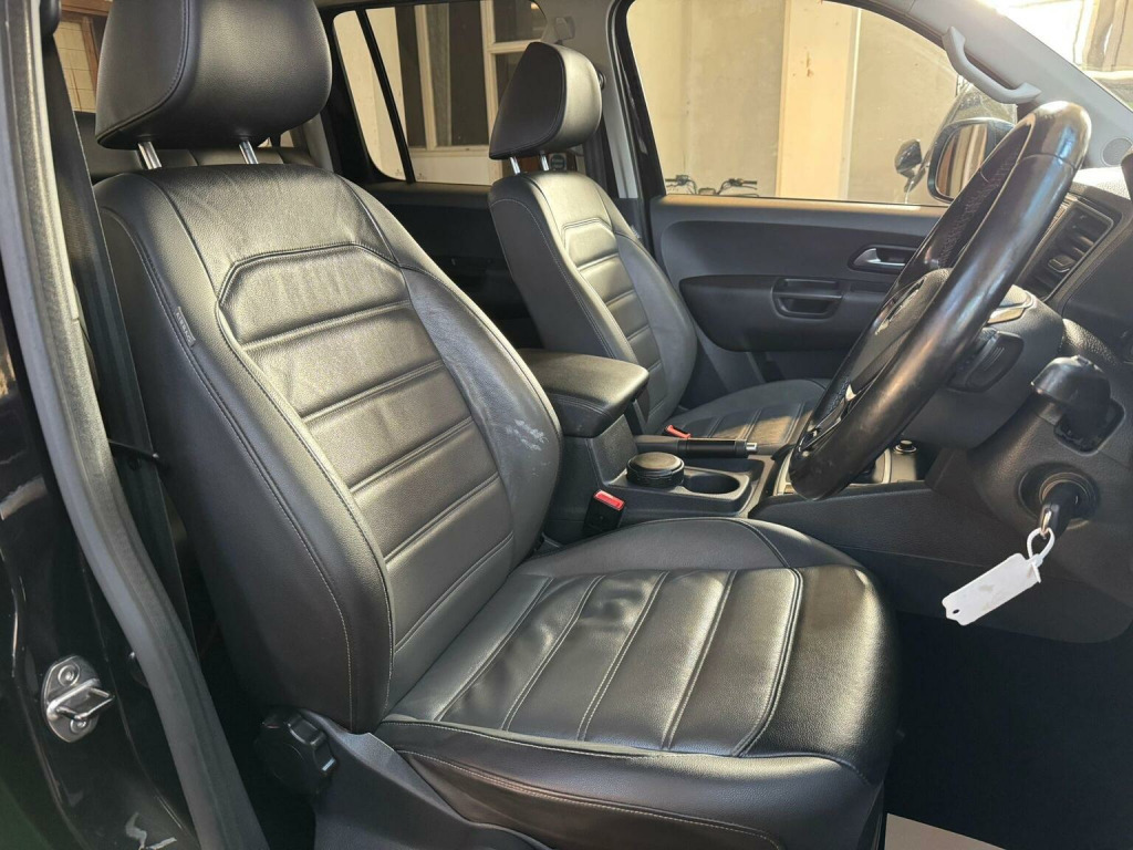 Boasting a full dealership service history, this 2017 Volkswagen Amarok Highline is ready for its next adventure. This robust 4x4 pickup is equipped with a powerful 3.0L V6 TDI BlueMotion Tech engine, delivering an impressive 221 bhp and a substantial towing weight of 3100 kg, making it ideal for demanding tasks. Its Euro 6 compliant engine ensures it meets current emissions standards, and with an MOT valid until October 2026, it offers peace of mind. The vehicle comes with a 6 month warranty for added reassurance. The Highline trim level enhances your driving experience with Bi-Xenon headlights featuring LED daytime running lights, front and rear parking sensors complemented by a rear view camera for effortless manoeuvring. Inside, youll find comfort features such as heated front seats, separately controllable for driver and passenger, and Climatronic air conditioning for a pleasant cabin environment in all conditions. This Amarok also benefits from a low insurance group, indicating it is more economical to insure than many similar vehicles, and its four wheel drive system provides excellent traction and capability.