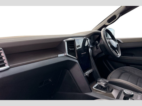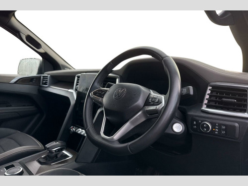 Inside, the Amarok delivers a comfortable driving experience. Savona leather upholstery with heated front seats, including 10-way power adjustment for the driver and 8-way for the passenger, ensures long journeys are comfortable, while the versatile rear bench includes additional outlets. Dual-zone Climatronic climate control, an overhead console with reading lights, and a glasses compartment add further convenience. The leather-wrapped multifunction steering wheel with cruise control completes the driver-focused interior.