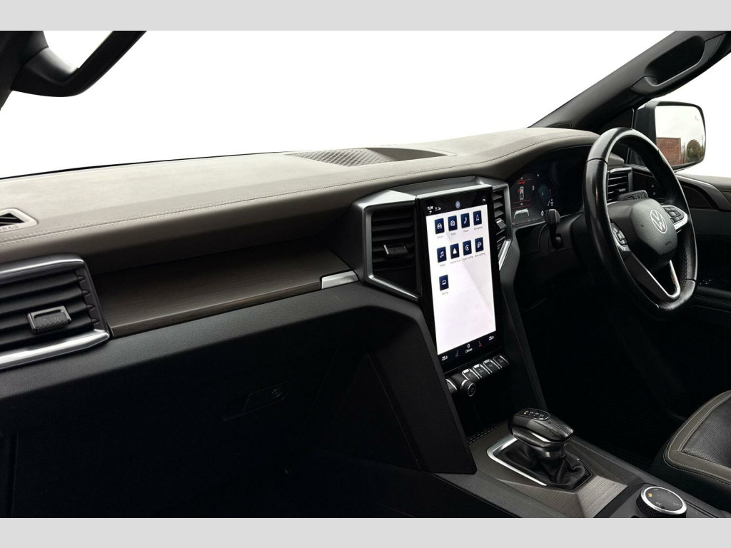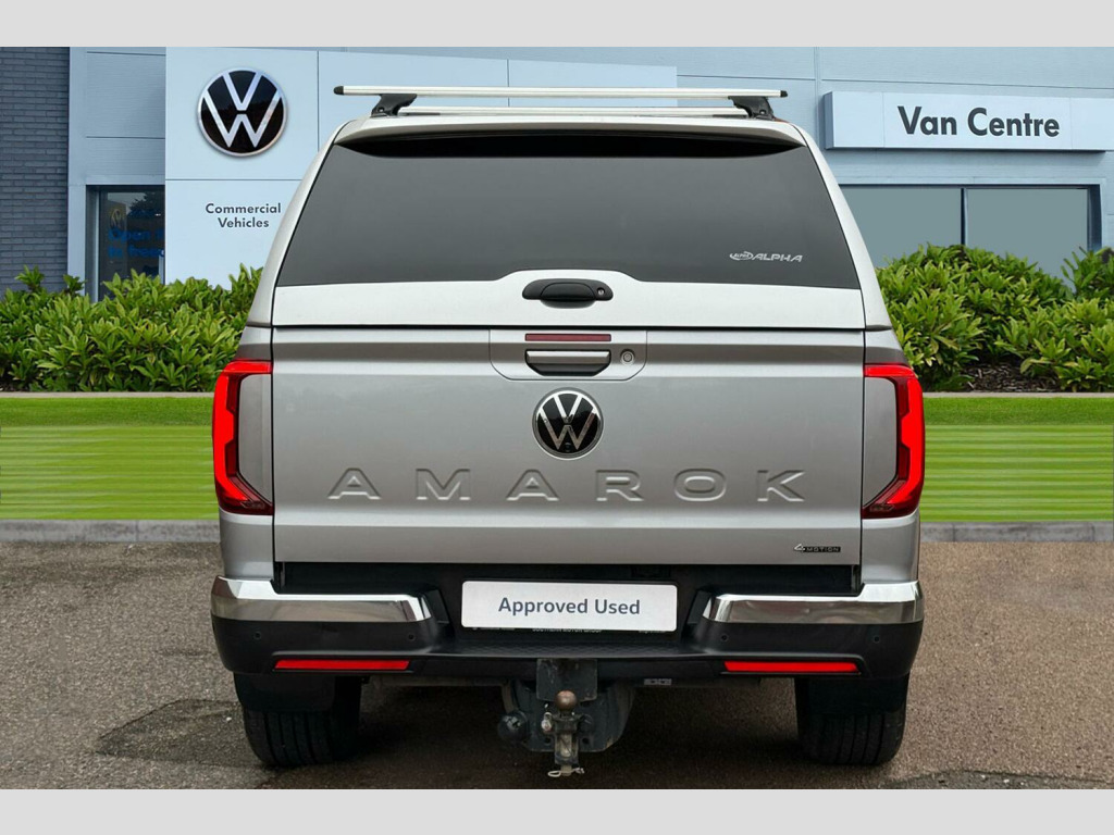 Premium Pack, Medium Silver-Metallic Paint, 20in Alloy Wheels - Bendigo 8x20, Savona Leather - Ebony Black - Fossil - Ebony Black, Premium Pack, Harmon Kardon HiFi System, Alpha Hardtop Canopy in Body Colour, Rear Load Liner, Afterfit Tow Pack, Metallic paint-Medium Silver, Alpha CMX Colour coded rear canopy with roof bars, Metallic - Medium Silver, Premium Pack, Assistance Pack, 20"x 8 "Bendigo" alloy wheels, Dark-tinted privacy glass rear side windows and rear window, Front and rear power windows, Heated rear window, Windshield sound-insulating with windshield heater, Windshield wiper intermittent control with rain sensor, Standard suspension, Black bumper in rear with chrome-plated styling elements, Body coloured exterior mirror housings and door handles, Body coloured front bumper, Body-colored rear gate handle, Chrome styling roll bar, Diversity antenna, Fuel filler door with integrated misfueling prevention device, Mud flaps front and rear, Radiator grille with chrome bezel, Satin air vents, Step with chrome insert, Without hardtop, Without roof rails/roof rack, Without underride guard, Advanced high-beam control Dynamic Light Assist for IQ.LIGHT LED matrix headlamps, Dynamic headlight range control, IQ Light LED matrix headlamps, LED front fog lamps, LED rear combination lamps, Automatic post collision braking system, Electronic parking brake, Electronic stability control (ESC) and Electromechanical brake booster, Adaptive cruise control ACC with predictive speed limiter, Area View 360 camera, Autonomous emergency braking front assist with monitoring and braking for vehicles, pedestrians, cyclists, Lane keeping system lane assist and lane change system side assist, Park assist including park distance control in front and rear, rear traffic alert, PAS, Without manual activation of 360-degree surround and cargo area lighting, Without trailer maneuvering system Trailer Assist, Exterior mirrors, power-adjustable, heated and power-folding, with surround lighting, Curtain and side airbags with center airbag, Front passenger airbag deactivation, Knee airbags for driver and front passenger, Without fire extinguisher, Without first aid kit, Selector lever, 12-inch Infotainment system, Digital Cockpit 12-inch, Dynamic road sign display, eCall emergency system, Navigation system, Without tachograph, Emission standard, Particle filter, Stop/start function, 120-V/230-V outlet in rear center console and cargo area, Alternator - 250A, Without electrical interface for external use, 6 switches in overhead console, 1 USB charging socket on the interior rearview mirror, 6 speakers, AM / FM antenna and digital radio reception DAB+, Preparation for VW Connect Basic and VW Connect Navigation, Dual-zone climate control Climatronic, Heating and fresh air system, Art velours upholstery, Carpet floor covering, Door handles in chrome, Gearshift/selector lever knob, leather, Glove compartment, illuminated and lockable, Headliner ebony black, Inductive charging feature, Leather-wrapped multi-function steering wheel, Overhead console 2 reading lights for driver and front passenger with glasses compartment in overhead console, Premium dashboard in leather look vinyl, Refrigerant, Roof grab handle on driver side, rigid grab handles, on A-pillar, Sun visor on driver and front passenger side with illuminated vanity mirror, Velour floor mats, Without hand brake lever, Ambient lighting, Without LED cargo area lighting, 3.55 gear ratio, Four-wheel drive, Without differential lock in rear, Tie-downs on the cargo area, Without load compartment cover, Without load compartment loadliner, Without load support including protection frame on the rear cabin wall, Rear seat package II, 10-way power-adjustable driver seat and 8-way adjustable front passenger seat, 3 head restraints in 2nd row of seats, 3 point belts in addition height-adjustable in 1st row of seats, 3-point belts in 2nd row of seats, 3-seater bench in 2nd row of seats, Center armrest in rear, Child seat anchors ISOFIX on outer rear seats, i-Size compatible, Child seat recognition, Driver seat with map pocket, Seat belt pretensioner, Seat occupied recognition with seat belt reminder for driver, front passenger and rear seat area, Top tether