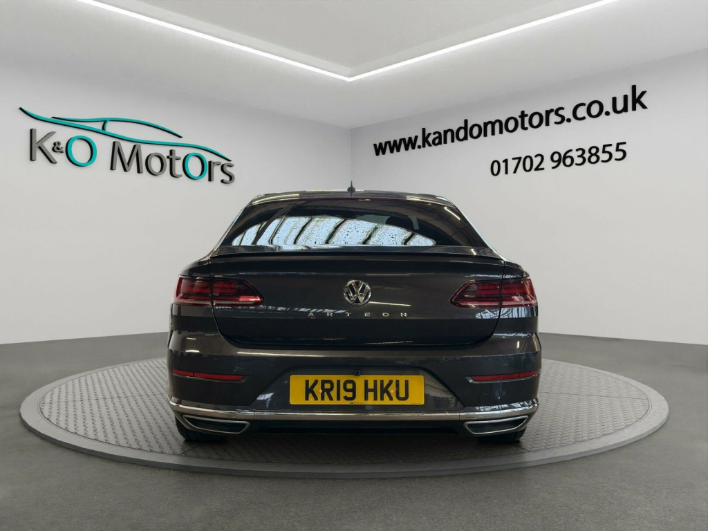 This 2019 VW Arteon R-Line Fastback DSG, finished in metallic grey, is ULEZ compliant and offered for sale in Southend, Essex. It benefits from fantastic service history, some great optional extras such as full digital dashboard, front heated seats, front and rear parking sensors, rear reversing camera. The car has been fully prepared and is ready for its next owner today.K&O Motors, your trusted independent car dealer in Southend-on-Sea, Essex, specialising in quality used cars at competitive prices. All vehicles are hand-selected for condition, value, and performance and are available for immediate viewing. We are a family run business with 8 staff members (7 are family!) and offer a much more friendly environment to buy your next car than some of the bigger supermarket dealers!At K&O Motors in Southend, every vehicle is HPI clear and undergoes a comprehensive 150 point health check for complete peace of mind. We’re proud to be ranked in the top 5% of AutoTrader dealers for five consecutive years, earning the “Highly Rated for Customer Service” award every year thanks to our commitment to customer satisfaction.Ask a team member how to secure this vehicle today with a fully refundable deposit scheme from as little as £250.With over 300 verified 5-star reviews and a 99%+ customer satisfaction rate, you can buy with confidence. We offer competitive part exchange, flexible finance options for all credit backgrounds (including poor credit), and nationwide delivery. For added reassurance, nationwide warranty cover is available for up to 3 years.We’re conveniently located in Southend, Essex, with free collection from Southend Central or Prittlewell train stations. People have also flown into London Southend airport to visit us! Viewings is advised by appointment.Opening hours: Mon–Fri 9:15am–5.30pm | Sat 9:15am–1pm. Out-of-hours appointments available on request.K&O Motors – Quality Used Cars in Southend, Essex. Contact us today.. 12V Socket in Centre Console in Storage Area, 12V Socket in Storage Compartment with Soft-Touch Opening Cover, 12V Socket on Rear of Front Centre Armrest, 19in Alloy Wheels - Montevideo Black, 3 Rear Head Restraints - Height Adjustable, 3 Rear Three-Point Seat Belts with Tensioners on Outer Seats, ABS - Anti-Lock Braking System, Active Bonnet, Active Info Display, Adaptive Cruise Control - ACC with Predictive Cruise Control, Airbags, Alarm with Interior Protection, Aluminium Trim On Upper and Lower Air Vents Extending Across Cockpit, Ambient Lighting, Analogue Clock in Dashboard, Automatic Coming-Leaving Home Lighting Function, Automatic Dimming Interior Rear View Mirror, Body Coloured Bumpers and Door Handles, Body-Coloured Top and Matt Black Lower Door Mirrors with Integrated Indicators, Brushed Aluminium Interior Door Handles, Car-Net App-Connect, Car-Net Guide and Inform, Car-Net Security and Service including eCall, Carpet Mats - Front and Rear, Chrome Effect Trapezoid Dummy Exhaust Tailpipe Surrounds - Left and Right, Chrome Side Window Surrounds, Chrome Trim on Lower Bumper - Front and Rear, Chrome Trim on Lower Doors - Front and Rear, Chrome Trim on Radiator Grille Louvres, Climate Control, Cup Holders - Front x2, Discover Navigation Infotainment System, Door Mirrors - Electrically Adjustable-Heated and Folding, Driver Alert System - Fatigue Detection, Driver Personalisation Profile, Drivers and Passengers Safety Optimised Head Restraints, Driving Profile Selection, Dusk Sensor - Automatic Driving Lights, ESC - Electronic Stability Control, Electric Windows - Front and Rear, Electronic Engine Immobiliser, Electronic Parking Brake with Auto Hold Function, Emergency Release Function in Rear Tailgate, Frameless Side Windows with One-Touch and Convenience Opening and Closing Functions, Front Centre Armrest - Longitudinally Adjustable with Storage Compartment and Two Rear Air Vents, Full Size Alloy Spare Wheel and Tyre - Tool Kit and Jack, Glovebox - Cooled and Lockable, Heated Front Seats, Heated Rear Windscreen, Heated Windscreen Washer Jets, Height Adjustable Front Three-Point Seat Belts with Tensioners, High Level 3rd Brake Light - LED, Interior LED Lighting, Isofix Child Seat Preparation - Easy-Fit - For 2 Outer Rear Seats, LED Luggage Compartment Lights x2 - Left and Right, LED Rear Number Plate Lights, LED Self-Levelling Headlights, LED Tinted Rear Light Clusters with Dynamic Indicators, Lane Assist, Leather Trimmed Three-Spoke Multifunction Steering Wheel with Aluminium Inserts and R-Line Logo with Paddle Shift, Load Lashing Points x4 in Luggage Compartment, Load Through Provision with Two Cup Holders when Folded Down, Luggage Compartment Bag Hooks x 2 - Left and Right, Luggage Compartment Cover - Removable, Parking Sensors - Front and Rear, Partially Galvanised Body, Passengers Seat with 6-Way Adjustment, Pedestrian Monitoring, Piano Black Decorative Inserts in Centre Console, Premium USB Cable, Press and Drive - Keyless Start, Proactive Occupant Protection, Progressive Steering, R-Line Logo on Door Sill Protectors, R-Line Styling Pack, Rain Sensor, Rear Tinted Glass from B Pillar Backwards, Remote Central Locking with 2 Remote Folding Keys, Remote Tailgate Unlocking via Key Fob, Seats - Drivers 6-Way Electric Adjustment, Silver Rise Decorative Inserts in Dash and Door Panels, Speedo and Rev Counter - Electronic Odometer - Trip - Service Interval Display and Fuel Gauge, Split Folding Rear Seat Backrests 60-40 with Centre Armrest, Stainless Steel Door Sills - Front and Rear, Stainless Steel Footrest and Pedals, Steering Wheel - Height and Reach Adjustable, Storage Compartment in Drivers and Front Passenger Door, Storage Compartment in Rear Doors, Storage Compartment with Soft Touch Opening Cover in Centre Console, Titan Black Rooflining, Two-Tone Horn, Tyre Pressure Loss Indicator, Unique R-Line Badging on Front Panels, Vanity Mirrors - Illuminated, Warning Light for Low Washer Fluid, Warning Lights On Sound, Warnin.