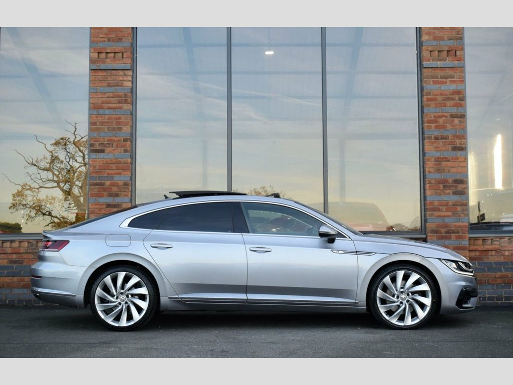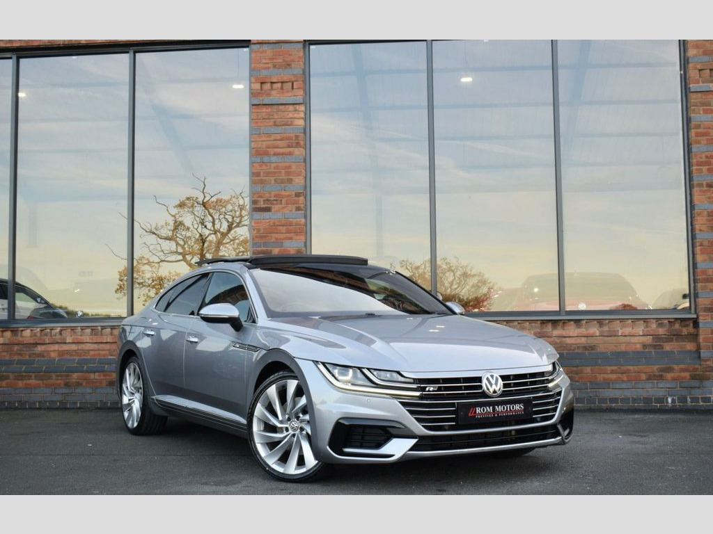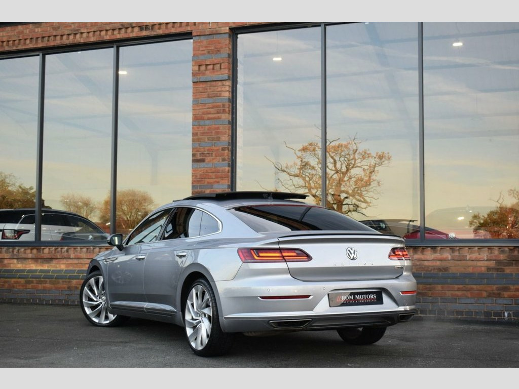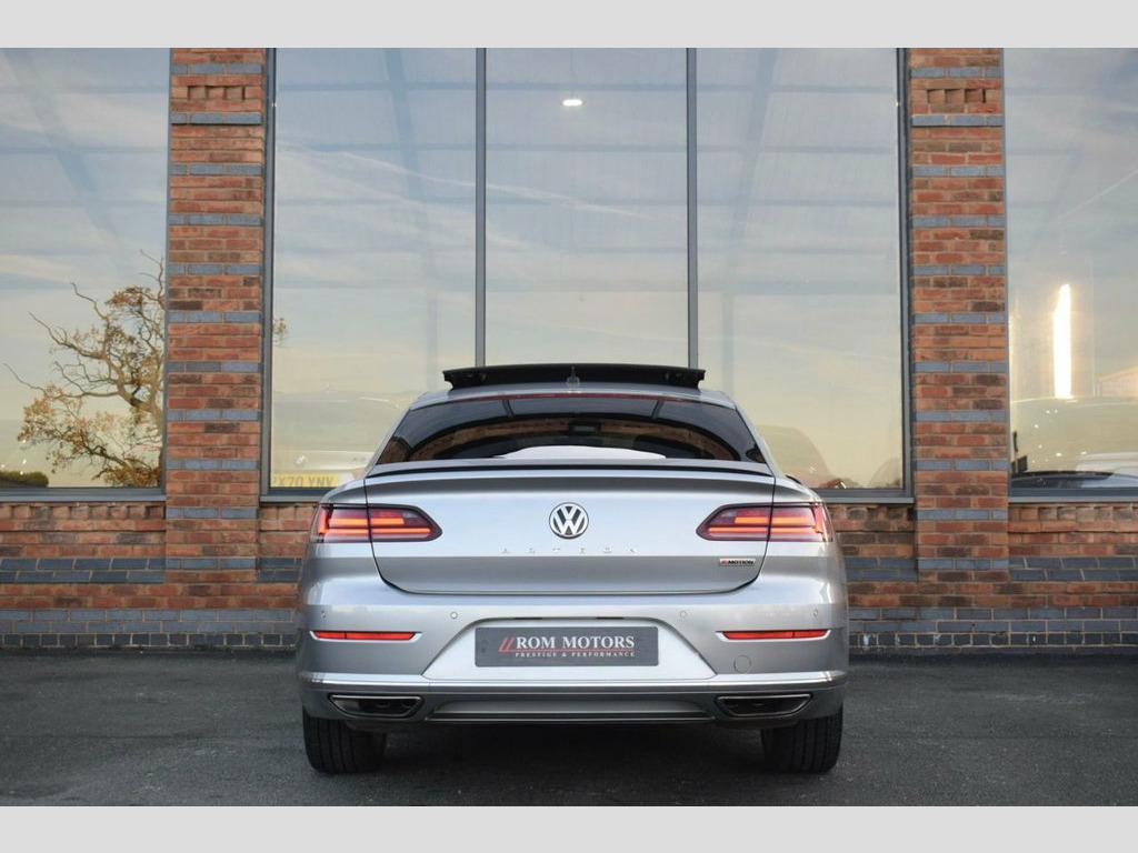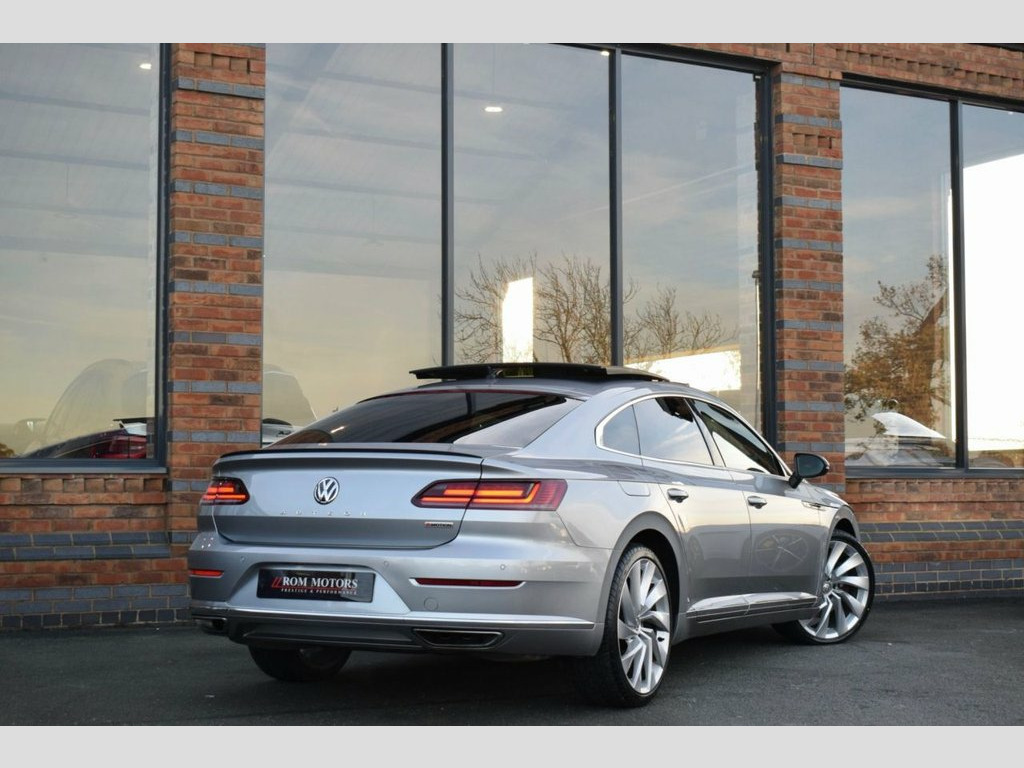 Rom Motors are delighted to present this stunning VW Arteon R-Line for sale. Equipped with immensely rare 2.0L Turbo Petrol, de-tuned from a Golf R to provide 268bhp through VW's 4Motion drive system making it fantastically responsive in all conditions. To top off this outstanding example is a Fully Panoramic Glass Sunroof, Upgraded 20" Alloys, Massaging Drivers Seat, Rear View Camera, Pro Nav Media Scree, Digital Dash, Adaptive Cruise Control, Full Heated Leather Interior and so much more! With just 2 owners from new and an outstanding Full Volkswagen Service History, this is one not to be missed! Heated Front Climate Windscreen, Nappa Leather-Carbon Optic - Black, Pyrite Silver, Rear View Camera, Keyless Entry with Easy Open Full Electr, Drivers Seat with 4-Way Electric Lumbar , Panoramic Sunroof, 20in Alloy Wheels - Rosario, 12V Socket in Centre Console in Storage , 12V Socket in Storage Compartment with S, 12V Socket on Rear of Front Centre Armre, 19in Alloy Wheels - Montevideo Black, 3 Rear Head Restraints - Height Adjustab, 3 Rear Three-Point Seat Belts with Tensi, ABS - Anti-Lock Braking System, Active Bonnet, Active Info Display, Adaptive Cruise Control - ACC with Predi, Airbags, Alarm with Interior Protection, Aluminium Trim On Upper and Lower Air Ve, Ambient Lighting, Analogu