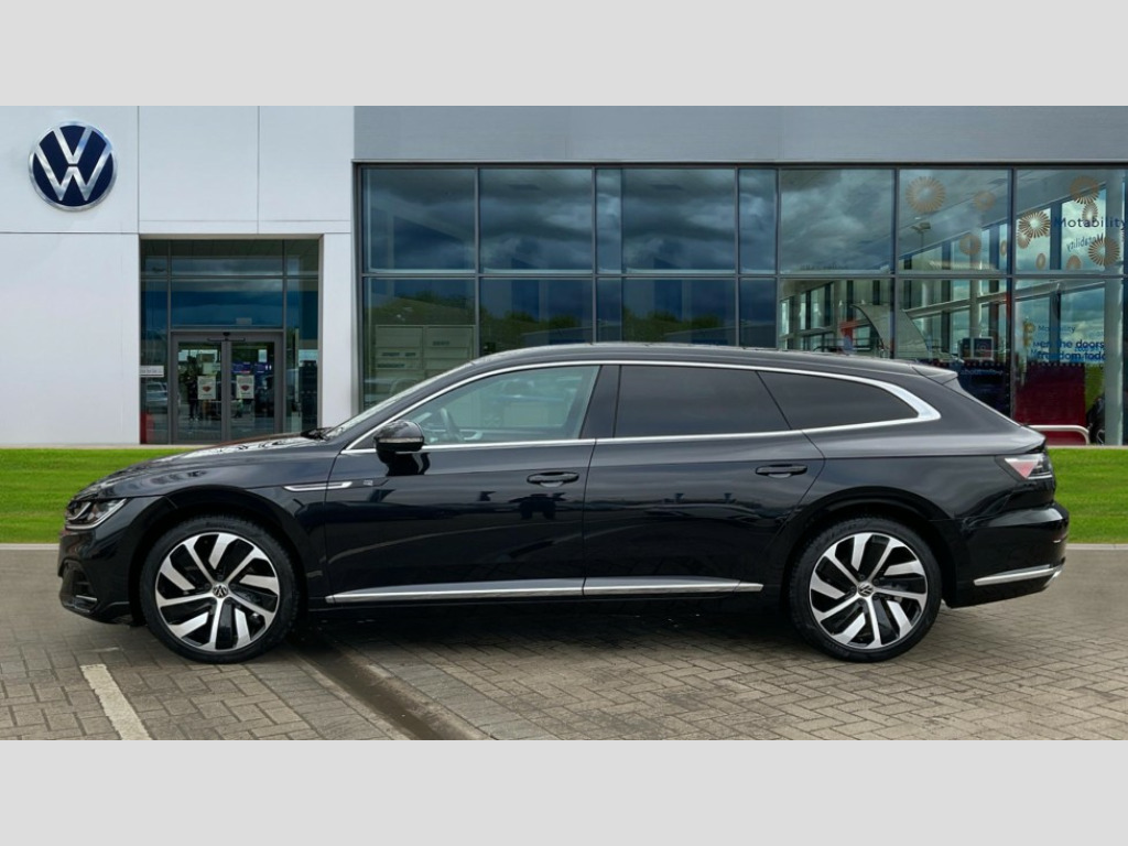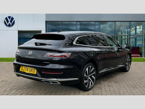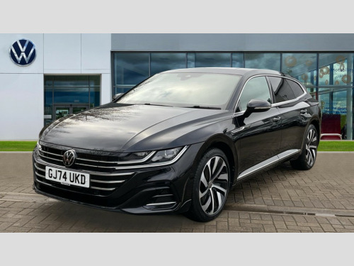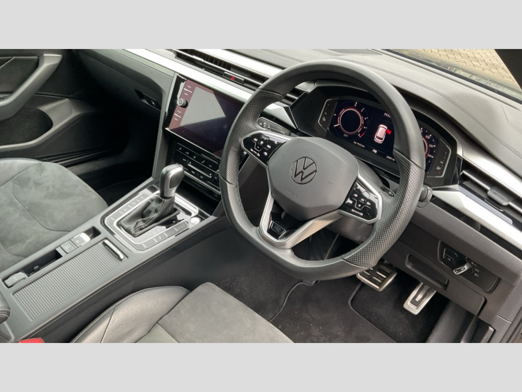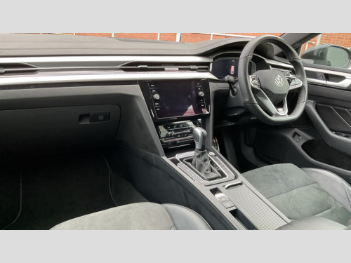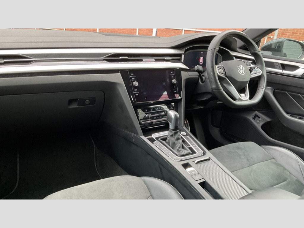 Volkswagen Arteon 1.4 TSI eHybrid R-Line 5dr DSG Adaptive cruise control (ACC) with speed limiter, front assist (reacting vehicles pedestrian and cyclists) and follow to stop, App connect including wireless Apple CarPlay, Camera for warning system, Digital cockpit with 10.25" high resolution TFT display screen with customisable menus and information, Driver alert system with fatigue detection, Driver profile selection including ECO function, Dynamic road sign display, eCall - Emergency call service for SOS calls to emergency response, Emergency assist, Hands free boot opening, Press and drive key, Progressive steering, Speedo and rev counter, electronic odometer, trip, service interval display and exterior temperature gauge, Tailgate, Travel assist - Lane keeping assist and traffic jam assist, Voice activation for telephone and navigation, 10 amp mode 2 charging cable, 16 amp mode 3 charging cable, Dynamic Chassis Control (DCC) - Adjustable dampers lowered by 15mm, Start/stop function with battery regeneration, 8 Speakers, External, USB type C data sockets with increased charging performance front (45 Watt), Premium USB cable in choice of either Apple or Android smartphone compatibility, Auto dimming interior rear view mirror, Automatic headlights, Body colour door handles, Body colour side skirt, Body coloured top and matt black lower door mirrors with integrated indicators, Chrome plated radiator grille inserts and light switch surrounds, Chrome side window surrounds, Dynamic headlight range control, Electric folding door mirror, adjustable, heated with front passenger exterior mirror lowering function, Front and rear electric windows, Front and rear stainless steel door sill protection, Front windscreen washers and wipers with 4x interval delay, Heat insulating glass windscreen, Heat insulating side and rear windows, Heated rear windscreen, Heated windscreen washer jets, LED 3rd brake light, LED rear combination lamp with dynamic indicators, LED rear number plate lights, Panoramic sunroof with tilting and sliding including integrated roller blind, R Line design body coloured bumpers, Rain sensor, Rear fog lamp on one side and reversing lamp on both sides, Rear side wing doors, Rear tinted glass from B pillar backwards, approx 65% tinted, Rear windscreen washer and wiper with interval delay, Roof spoiler, Tailpipes behind rear bumper, 12V socket in front centre console, 12V socket on rear of front centre armrest, 3 rear head restraints, 3 seat bench in 2nd row, 30 colours options interior ambient lighting, 60:40 split folding rear seat backrests with centre armrest, Air care climatronic 3 Zone electronic air conditioning with automatic air recirculation, Black roof lining, Chrome trim on upper and lower air vents extending across cockpit, Driver and front passenger sunvisor with vanity mirror, Front + rear carpet mats, Front cupholders x 2, Front footwell illumination, Front sports comfort seats, Glovebox, Heated front seats, Height/reach adjust steering wheel, Isofix child seat preparation easy fit for two outer rear seats, Luggage compartment lighting, Removable luggage compartment cover, Single front passenger seat, Split folding front seat backrest with front centre armrest, Stainless steel pedals, Two LED front reading light, 3 rear three point seatbelts, ABS+EBD+Brake assist, Child locks on rear doors, Driver airbag and front passenger airbags with deactivation switch including driver knee airbags, Electronic parking brake, Electronic stability control (ESC) and Electromechanical brake booster, Front disc brakes, Front side airbags with curtain airbags, Hill start assist, Pro active occupant protection to detect critical situations with elevated accident potential from the front, Rear disc brakes, Three point height adjust front seatbelts + pretensioners, Two tone horn, Tyre pressure loss indicator, Warning buzzer for seatbelts if unfastened, Warning triangle, Alarm with interior protection with deactivation via infotainment system, Electronic engine immobiliser, Keyless entry system including start/stop button on centre console, Remote central locking, Aluminium decorative inserts, Chrome trim on lower doors in front and rear, Leatherette insert on door and side trim panel in foam film, Piano black decorative inserts in centre console, 19" Montevideo alloy wheels with Airstop tyres + anti-theft wheel bolts, Tyre mobility kit