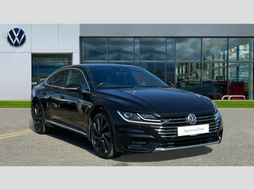 Volkswagen Arteon 1.5 TSI R-Line 5dr DSG 'Lights On' Reminder warning buzzer, Active information display, Adaptive Cruise Control with pedestrian detection and speed limiter, Analogue clock, App-Connect, Door/tailgate open warning lights, Driver alert system, Driver profile selection, Lane assist, Press and drive key, Progressive power assisted steering, Remote tailgate release, Rev counter with fuel gauge, Service interval indicator, Touch screen display, Traffic message channel (TMC), Warning buzzer and light for front seatbelts unfastened, CD/MP3/WMA, USB and SD card reader, aux-in, DAB Digital radio, MDI with USB/iPod connection cables, Volkswagen media control, Auto dimming driver's door mirror, Auto dimming rear view mirror, Automatic activation of hazard warning lights, Automatic coming/leaving home lighting function, Automatic headlights with dusk sensor, Body colour bumpers, Body colour door handles, Body colour door mirrors, Chrome headlight surround, Chrome louvres in grille, Chrome side window surrounds, Dynamic light assist, Electric adjustable/heated/folding door mirrors, Front and rear electric windows, Front fog lights, Gloss black spoiler, Headlight range control, Headlight washers, Heated rear window, Heated windscreen washer jets, High beam assist, LED daytime running lights, LED headlights with dynamic curve lighting, LED rear lights, Rain sensor, Reverse activated kerb-view adjustment on passenger's door mirror, Side skirts with chrome inserts, Stainless steel door sill protection, Tinted rear windows, Trailer stability assist, Windscreen wipers/ intermittent wipe + 4 position delay, 12V Accessory socket in centre console, 12v socket in front centre armrest storage compartment, 2 bag hooks in luggage compartment, 3 rear head restraints, 3 spoke multifunction steering wheel with Aluminium look finish, 3 Zone electronic climate control with automatic air recirculation, 60/40 split folding rear seat, Aluminium finish interior door handles, Ambient lighting, Cover for storage compartment in centre, Front + rear carpet mats, Front and rear interior lighting with delay and dimming function, Front centre armrest with storage box and rear air vents, Front cupholders x 2, Front footwell lights, Front seat and rear pockets, Gearshift paddles, Heated front seats, Height adjustable head restraints, Height/reach adjust steering wheel, Isofix system on outer rear seats, Leather steering wheel, LED reading lights, Load through provision, Lockable, illuminated, cooled glovebox, Luggage compartment lighting, Nappa leather upholstery, Rear armrest with 2 cupholders, Removable luggage cover, Stainless steel foot rest, Stainless steel pedals, Storage box in luggage compartment, Storage compartment in driver's door, Storage compartment in passenger's door, Storage compartment in rear doors, Sunvisors with illuminated vanity mirrors, Titanium black headlining, USB charging point, 3 rear 3 point seatbelts + pretensioners, ABS+EBD+Brake assist, Active bonnet, Driver/Front Passenger airbags, Driver/Front passenger WOKS head restraints, Drivers knee airbag, Electronic parking brake with auto hold, ESP with EDL + ASR, Front and rear curtain airbags, Front and rear seat side impact airbags, Front assist including city emergency braking, Front passenger airbag deactivation, Height adjustable front 3 point seatbelts + pretensioners, Hill start assist, Proactive passenger protection system, Two tone horn, Tyre pressure warning, Warning triangle, Alarm with interior protection, Anti-theft wheel bolts, Electronic engine immobiliser, Remote central locking with 2 remote folding keys, Piano black centre console, Silver dash and door trim inserts, Full size alloy spare wheel
