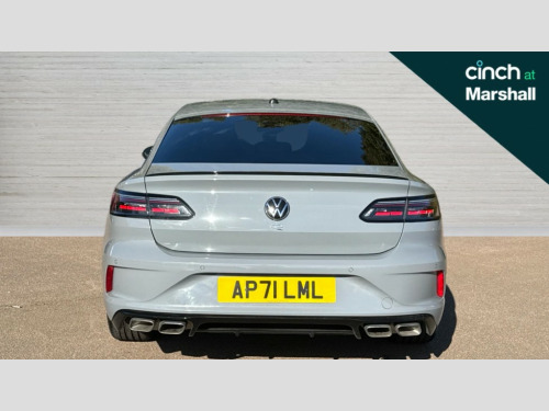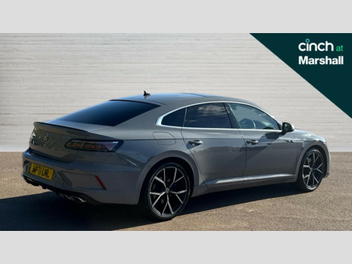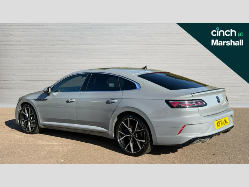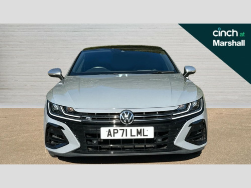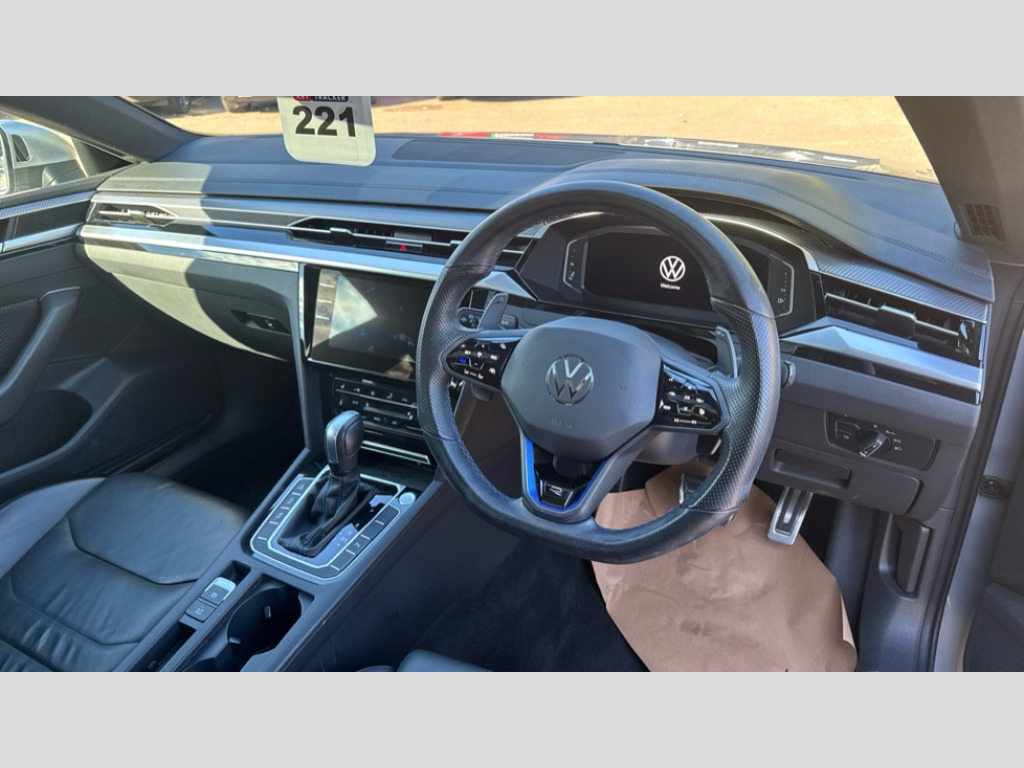 Volkswagen Arteon 2.0 TSI R 5dr 4MOTION DSG Adaptive cruise control (ACC) with speed limiter, front assist (reacting vehicles pedestrian and cyclists) and follow to stop, App connect including wireless Apple CarPlay, Camera for warning system, Digital cockpit with 10.25" high resolution TFT display screen with customisable menus and information, Driver alert system with fatigue detection, Driver profile selection including ECO function, Dynamic road sign display, eCall - Emergency call service for SOS calls to emergency response, Emergency assist, Hands free boot opening, Press and drive key, Progressive steering, R driving mode button on steering wheel, Side scan lane change assist including rear cross traffic alert, Speedo and rev counter, electronic odometer, trip, service interval display and exterior temperature gauge, Travel assist - Lane keeping assist and traffic jam assist, Voice activation for telephone and navigation, All wheel drive - 4Motion, Start/stop function with battery regeneration, XDS electronic differential lock, Premium USB cable in choice of either Apple or Android smartphone compatibility, Auto dimming interior rear view mirror, Automatic headlights, Body colour door handles, Body colour side skirt, Body coloured top and matt black lower door mirrors with integrated indicators, Chrome side window surrounds, Dynamic headlight range control, Electric folding door mirror, adjustable, heated with front passenger exterior mirror lowering function, Front and rear electric windows, Front and rear stainless steel door sill protection, Front windscreen washers and wipers with 4x interval delay, Heat insulating side and rear windows, Heated rear windscreen, Heated windscreen washer jets, High level 3rd brake light, LED rear combination lamp with dynamic indicators, LED rear number plate lights, Left and right chrome effect twin trapezoid exhaust tailpipe surrounds, Panoramic sunroof with tilting and sliding including integrated roller blind, R Line design body coloured bumpers, R logo light projection, R logo on radiator grille, side panels and rear, R specific radiator grille, R specific rear bumper and R specific diffusor in black, Rain sensor, Rear fog lamp on one side and reversing lamp on both sides, Rear side wing doors, Rear tinted glass from B pillar backwards, approx 65% tinted, Rear wash/wipe, 12V socket in front centre console, 12V socket on rear of front centre armrest, 14way electric adj front seats with lumbar + ergoComfort driver seat with memory/massage, comfort entry,integrated front headrest + door mirror memory, 3 rear head restraints, 3 seat bench in 2nd row, 30 colours options interior ambient lighting, 60:40 split folding rear seat backrests with centre armrest, Air care climatronic 3 Zone electronic air conditioning with automatic air recirculation, Black roof lining, Chrome trim on upper and lower air vents extending across cockpit, Driver and front passenger sunvisor with vanity mirror, Front cupholders x 2, Front footwell illumination, Glovebox, Heated front seats, Height/reach adjust steering wheel, Isofix child seat preparation easy fit for two outer rear seats, Luggage compartment lighting, Nappa leather upholstery with side bolster and headrest, Pedals and footrest in stainless steel, Premium sports seats with R-logo, R performance leather wrapped heated multi-function sports steering wheel with touch controls and larger shifting paddles, blue stitching and R-logo, R specific floor mats with R-logo and stitching, Removable luggage compartment cover, Single front passenger seat, Split folding front seat backrest with front centre armrest, Two LED front reading light, 18" performance brakes, 3 rear three point seatbelts, ABS+EBD+Brake assist, Child locks on rear doors, Driver airbag and front passenger airbags with deactivation switch including driver knee airbags, Electronic parking brake, Electronic stability control (ESC) and Electromechanical brake booster, Front disc brakes, Front side airbags with curtain airbags, Hill start assist, Pro active occupant protection to detect critical situations with elevated accident potential from the front, R performance torque vectoring, R specific blue brake calipers, Rear disc brakes, Rear precrash preventive occupant protection, Three point height adjust front seatbelts + pretensioners, Two tone horn, Tyre pressure loss indicator, Tyre pressure monitor, Warning buzzer for seatbelts if unfastened, Warning triangle, Alarm with interior protection with deactivation via infotainment system, Electronic engine immobiliser, Keyless entry system including start/stop button on centre console, Aluminium decorative inserts, Chrome trim on lower doors in front and rear, Leatherette insert on door and side trim panel in foam film, Piano black decorative inserts in centre console, R specific decor inlay aluminium black carbon