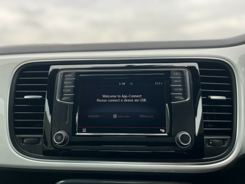 This Volkswagen Beetle TSI Design from 2016 offers excellent provenance, having had only two owners. It features a 1.2 litre petrol engine and meets Euro 6 emissions standards. Inside, you'll find the Composition Media System, which includes Bluetooth connectivity for your devices, and Climatic semi-automatic air conditioning for comfortable journeys.This Beetle is designed to be economical and affordable to run. It achieves an impressive fuel economy of 51 miles per gallon, indicating it is more efficient than many similar vehicles. Furthermore, its low insurance group and low CO2 emissions mean lower running costs, making it a sensible choice for many drivers.. 12V Socket - Centre Console x2, 17in Alloy Wheels - Orbit, ABS - Anti-Lock Braking System with HBA - Hydraulic Brake Assist, Air Conditioning - Climatic Semi-Automatic Control, Alarm with Interior Protection, Armrest - Front Centre with Storage Compartment, Automatic Post-Collision Braking System, Black Grained Door Sill Protection, Black Hood, Body Coloured Dash and Door Panels, Body-Coloured Door Handles, Body-Coloured Door Mirrors with Integrated Indicators, Body-coloured Bumpers in More Aggressive Design, Brake Pad Wear Indicator, Carpet Mats - Front and Rear, Chrome Strip on Side Window Base, Chrome Trimmed Air Vent Surrounds - Decor Rings - Instrument Cluster and Radio Surround, Composition Media System, Cup Holders - Front x2 Rear x1, DAB+ - Digital Radio Reception, Dark Tinted Tail Lights, Door Mirrors - Electrically Adjustable and Heated, Door Protectors - Body Colour with Chrome Insert, Driver and Front Passenger Seat Height Adjustment, Drivers and Front Passengers Airbags with Front Passenger Airbag Deactivation Switch, Drivers and Front Passengers Combined Head and Side Airbag System, ESC - Electronic Stability Control including EDL - Electronic Differential Lock and ASR - Traction Control, Electric Windows - Front, Electronic Engine Immobiliser, External Temperature Gauge, Frameless Rear View Mirror, Front Air Intake with Chrome Trimmed Louvre, Front Fog Lights with Static Cornering Function, Front Seat Back Storage Pockets, Front Three-Point Seat Belts, Glovebox, Grab Handles - Front x2 Rear x2, Head Restraints - Front Whiplash Optimised, Headlights - Halogen Clear - Range Adjustable, Heated Rear Windscreen, Height and Reach Adjustable Steering Wheel, Hill Hold Function, ISOFIX Child Seat Preparation for 2 Rear Seats, Instrument Lighting - White Adjustable Panel Illumination, Intermittent Windscreen Wiper Control, Leather Trimmed Gear Knob and Handbrake Grip, Luggage Compartment Cover and Hook - Removable, Luggage Compartment Light, Multifunction Computer, Power Assisted Steering - Speed Sensitive, Reading Lights - Front x2, Rear Head Restraints x 2 - Height-Adjustable, Rear Tailgate Spoiler, Reflectors in Doors, Remote Central Locking with 2 Remote Folding Keys, Seats - Easy Entry Sliding Front, Seats - Split Folding Rear Backrests 50-50, Spare Wheel - Space Saver Steel, Speedo and Rev Counter - Electronic Odometer - Trip - Service Interval Display and Fuel Gauge, Steering Wheel - Multifunction - Leather Trimmed, Two Rear Three-point Seatbelts, Two-Tone Horn, Tyre Pressure Loss Indicator, USB Interface for iPod - iPhone and AUX-IN Jack, Unique Beetle Storage Compartment in Dashboard, Vanity Mirrors, Warning Buzzer and Light for Front Seat Belts if Unfastened, Discover Navigation Touch-Screen Navigation-Radio System with Car-Net Guide and Inform, Car-Net App Connect, 'TIXO' CLOTH Titan Black, Bonnet and tailgate decal stripes.