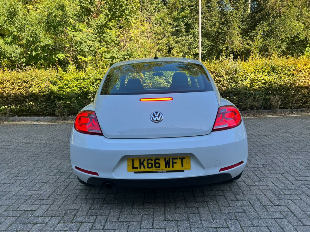 This 2016 Volkswagen Beetle TSI Design has been cherished by only one owner, boasting a full dealership service history with its last service completed on 12 August 2025 at 48,894 miles. This Euro 6 compliant 1.2 litre petrol model comes with a 6 month warranty and a 12 month MOT provided on purchase, offering peace of mind. Inside, you'll find the Composition Media System with Bluetooth connectivity, Car Net App Connect, and voice activation, all managed through the Climatic semi-automatic air conditioning system.The Design trim level ensures a well equipped and comfortable driving experience. The comprehensive service history and single owner status suggest this Beetle has been meticulously maintained, setting it apart from other vehicles of its kind. This Volkswagen Beetle is ready to provide its next owner with reliable and enjoyable motoring.. 12V Socket - Centre Console x2, 17in Alloy Wheels - Orbit, ABS - Anti-Lock Braking System with HBA - Hydraulic Brake Assist, Air Conditioning - Climatic Semi-Automatic Control, Alarm with Interior Protection, Armrest - Front Centre with Storage Compartment, Automatic Post-Collision Braking System, Black Grained Door Sill Protection, Body Coloured Dash and Door Panels, Body-Coloured Door Handles, Body-Coloured Door Mirrors with Integrated Indicators, Body-coloured Bumpers in More Aggressive Design, Brake Pad Wear Indicator, Carpet Mats - Front and Rear, Chrome Strip on Side Window Base, Chrome Trimmed Air Vent Surrounds - Decor Rings - Instrument Cluster and Radio Surround, Composition Media System, Cup Holders - Front x2 Rear x1, DAB+ - Digital Radio Reception, Dark Tinted Tail Lights, Door Mirrors - Electrically Adjustable and Heated, Door Protectors - Body Colour with Chrome Insert, Driver and Front Passenger Seat Height Adjustment, Drivers and Front Passengers Airbags with Front Passenger Airbag Deactivation Switch, Drivers and Front Passengers Combined Head and Side Airbag System, ESC - Electronic Stability Control including EDL - Electronic Differential Lock and ASR - Traction Control, Electric Windows - Front, Electronic Engine Immobiliser, External Temperature Gauge, Frameless Rear View Mirror, Front Air Intake with Chrome Trimmed Louvre, Front Fog Lights with Static Cornering Function, Front Seat Back Storage Pockets, Front Three-Point Seat Belts, Glovebox, Grab Handles - Front x2 Rear x2, Head Restraints - Front Whiplash Optimised, Headlights - Halogen Clear - Range Adjustable, Heated Rear Windscreen, Height and Reach Adjustable Steering Wheel, Hill Hold Function, ISOFIX Child Seat Preparation for 2 Rear Seats, Instrument Lighting - White Adjustable Panel Illumination, Intermittent Windscreen Wiper Control, Leather Trimmed Gear Knob and Handbrake Grip, Luggage Compartment Cover and Hook - Removable, Luggage Compartment Light, Multifunction Computer, Power Assisted Steering - Speed Sensitive, Reading Lights - Front x2, Rear Head Restraints x 2 - Height-Adjustable, Rear Tailgate Spoiler, Reflectors in Doors, Remote Central Locking with 2 Remote Folding Keys, Seats - Easy Entry Sliding Front, Seats - Split Folding Rear Backrests 50-50, Spare Wheel - Space Saver Steel, Speedo and Rev Counter - Electronic Odometer - Trip - Service Interval Display and Fuel Gauge, Steering Wheel - Multifunction - Leather Trimmed, Two Rear Three-point Seatbelts, Two-Tone Horn, Tyre Pressure Loss Indicator, USB Interface for iPod - iPhone and AUX-IN Jack, Unique Beetle Storage Compartment in Dashboard, Vanity Mirrors, Warning Buzzer and Light for Front Seat Belts if Unfastened, Car-Net App Connect, Voice Activation, Coloured Centre Console - White. Full dealership history
