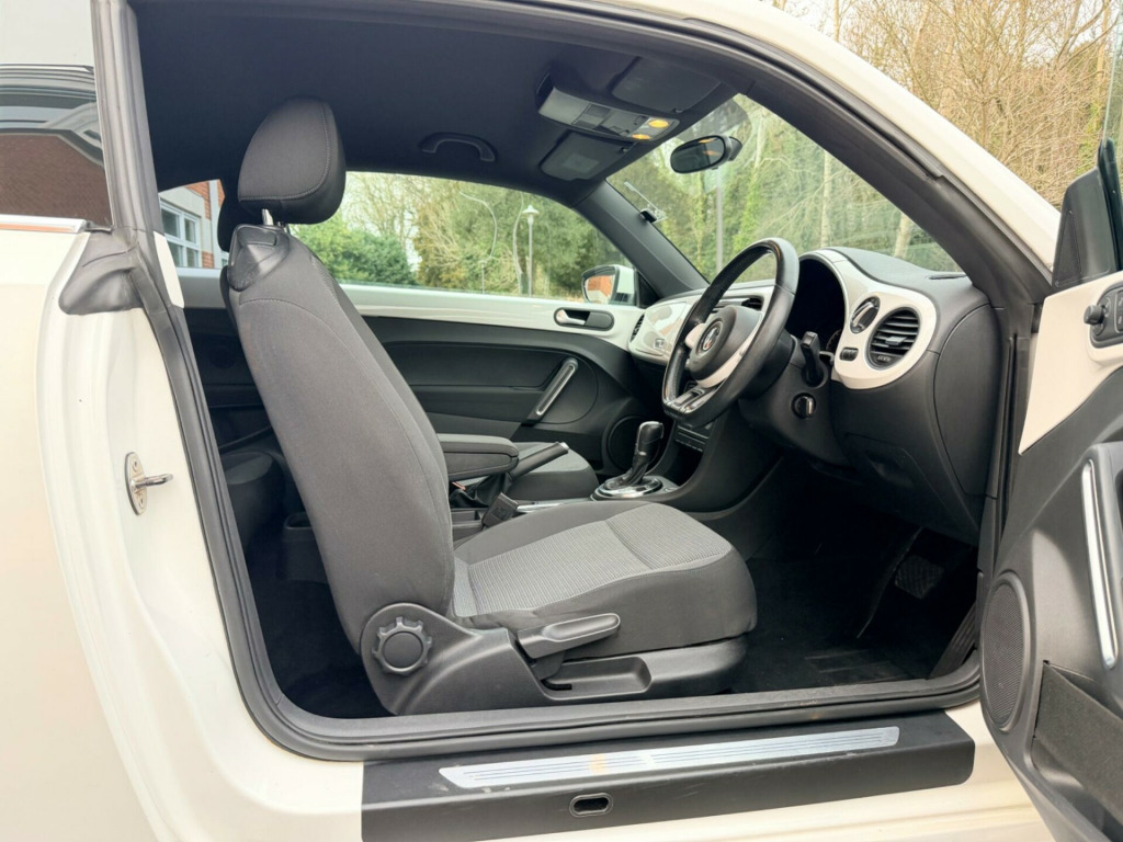 This 2015 Volkswagen Beetle 1.2 TSI BlueMotion Tech Design DSG Euro 6 (s/s) 3dr Hatchback is currently available for £8,995 with Petrol engine and Automatic gearbox. For more information or to arrange a viewing, click here to send us an email using form below.